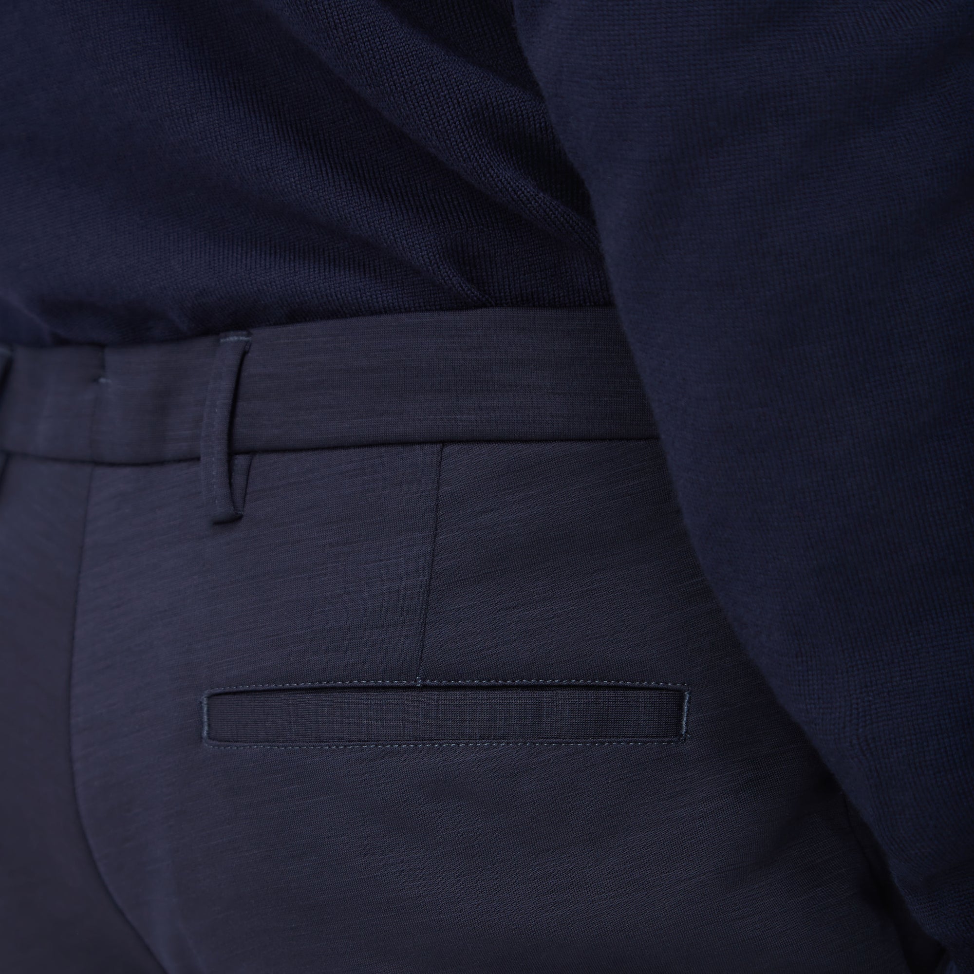 Experience comfort, durability and style with our performance knit dress pants in stretch textured knit fabric with a soft touch interior. Featuring a straight leg, slim silhouette, flat front, tailored looped waistband, slanted side pockets, a coin pocket and two back pockets, they are perfect for travel and transition seamlessly throughout the day.