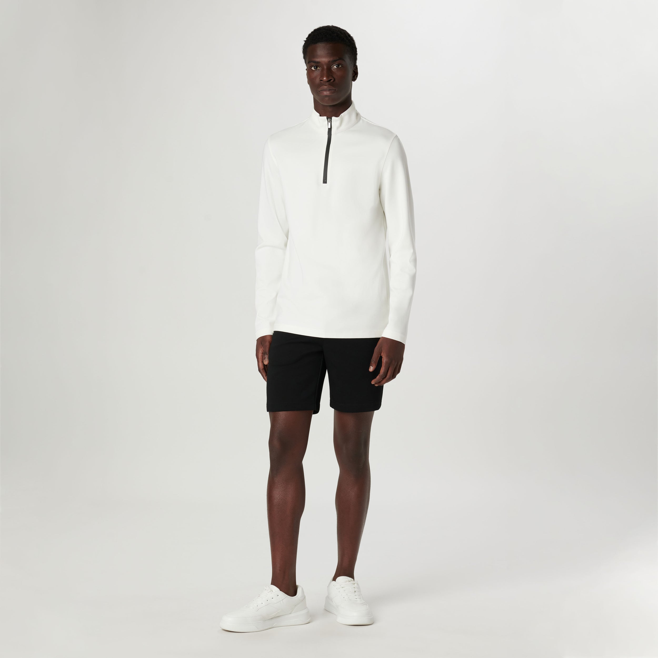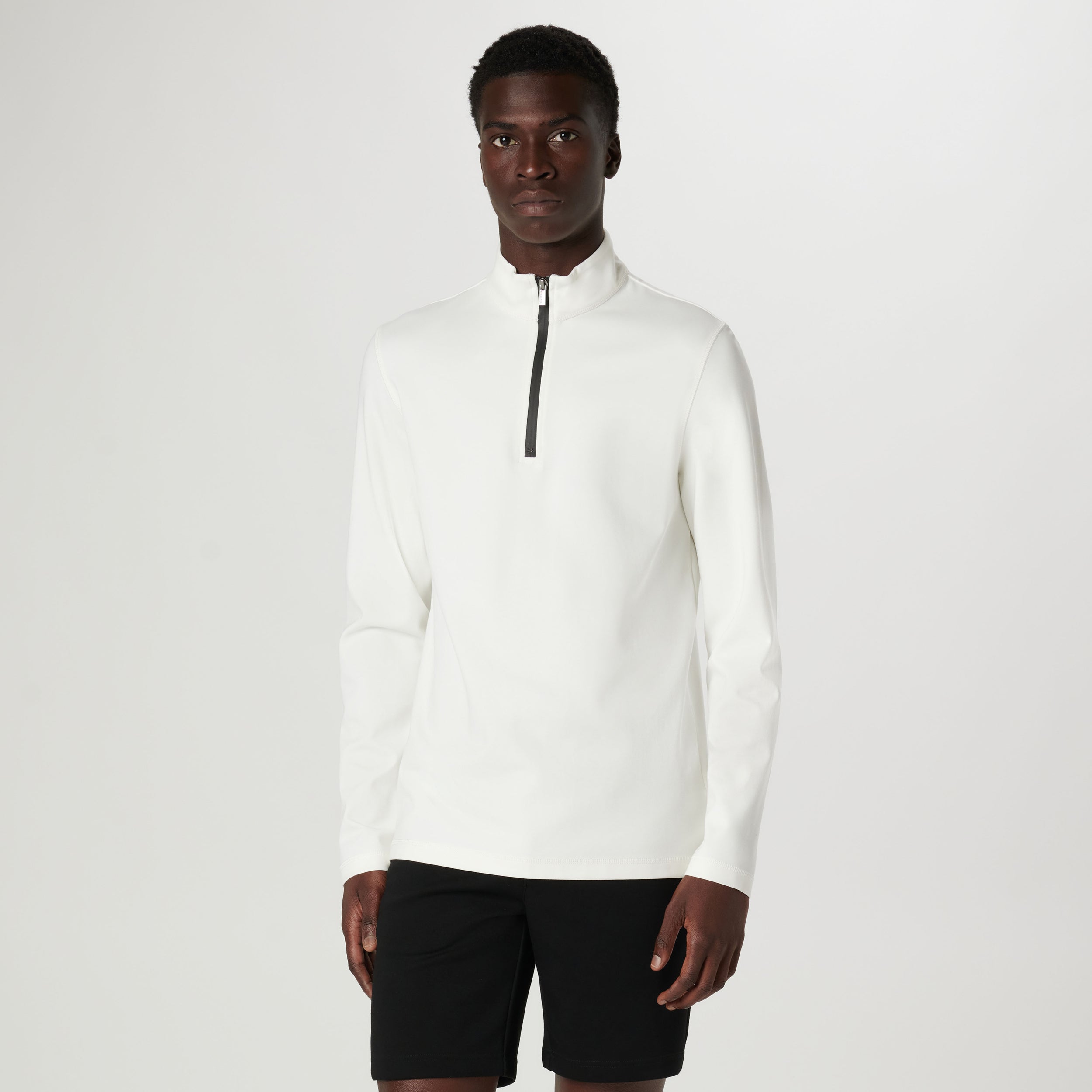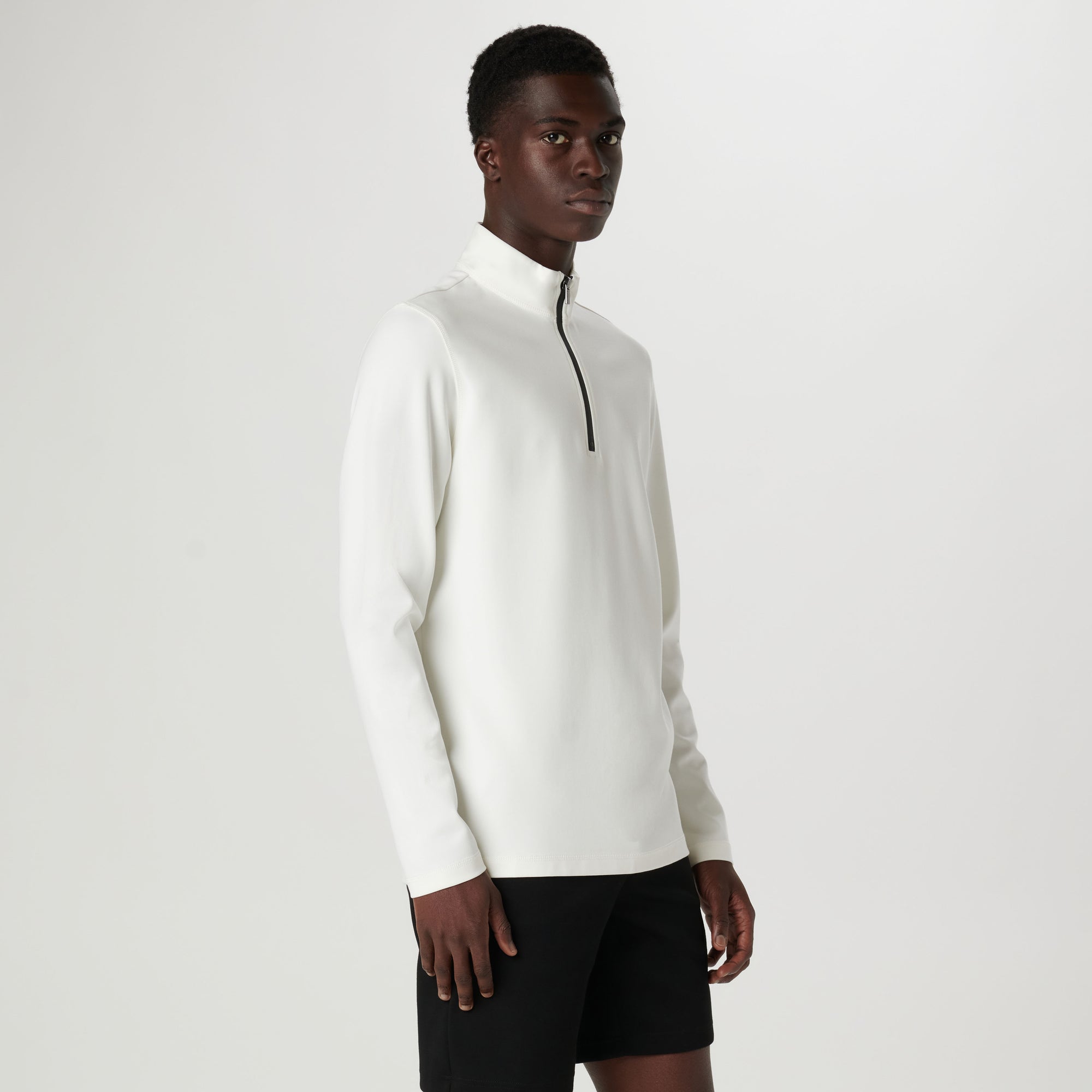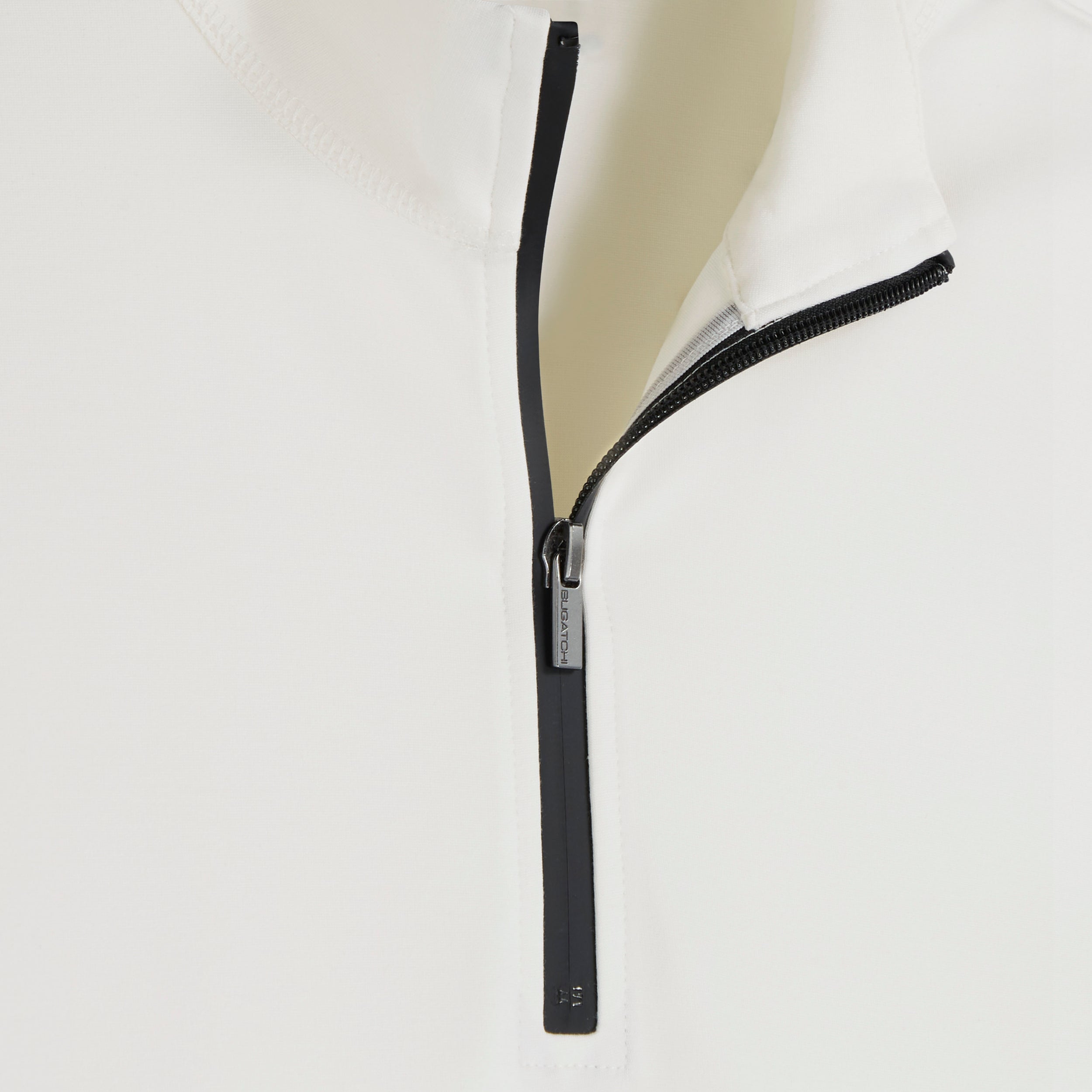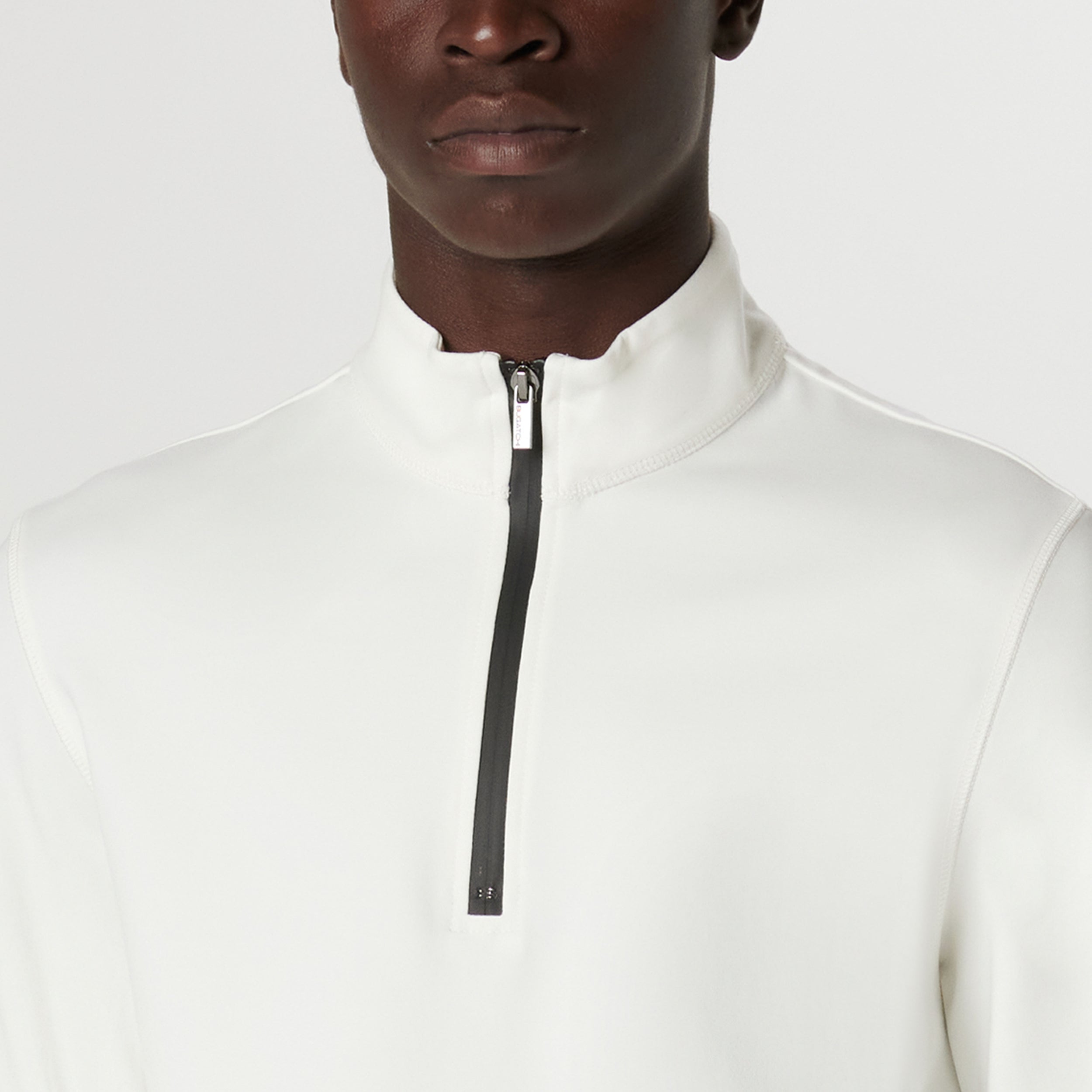 This versatile quarter zip pullover features a mock neck, subtle contrast detail, and a zippered rear pocket. Crafted for both active and casual elegance, this pullover combines style, comfort, and functionality.