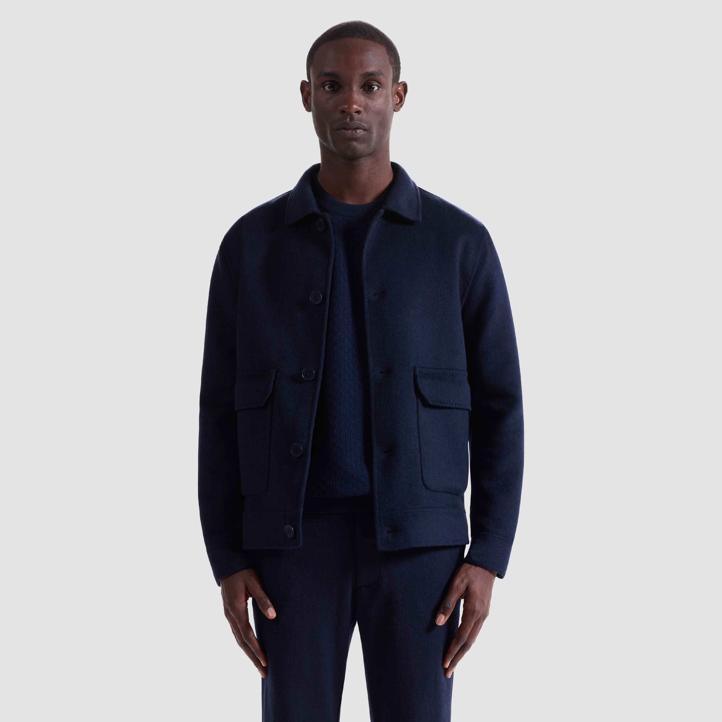 Crafted from a brushed wool blend for a soft, refined feel, this jacket features a classic point collar and eco-friendly corozo buttons. Designed with two patch pockets with flaps and accented with subtle pick stitching, it combines a timeless silhouette with elevated detailing.