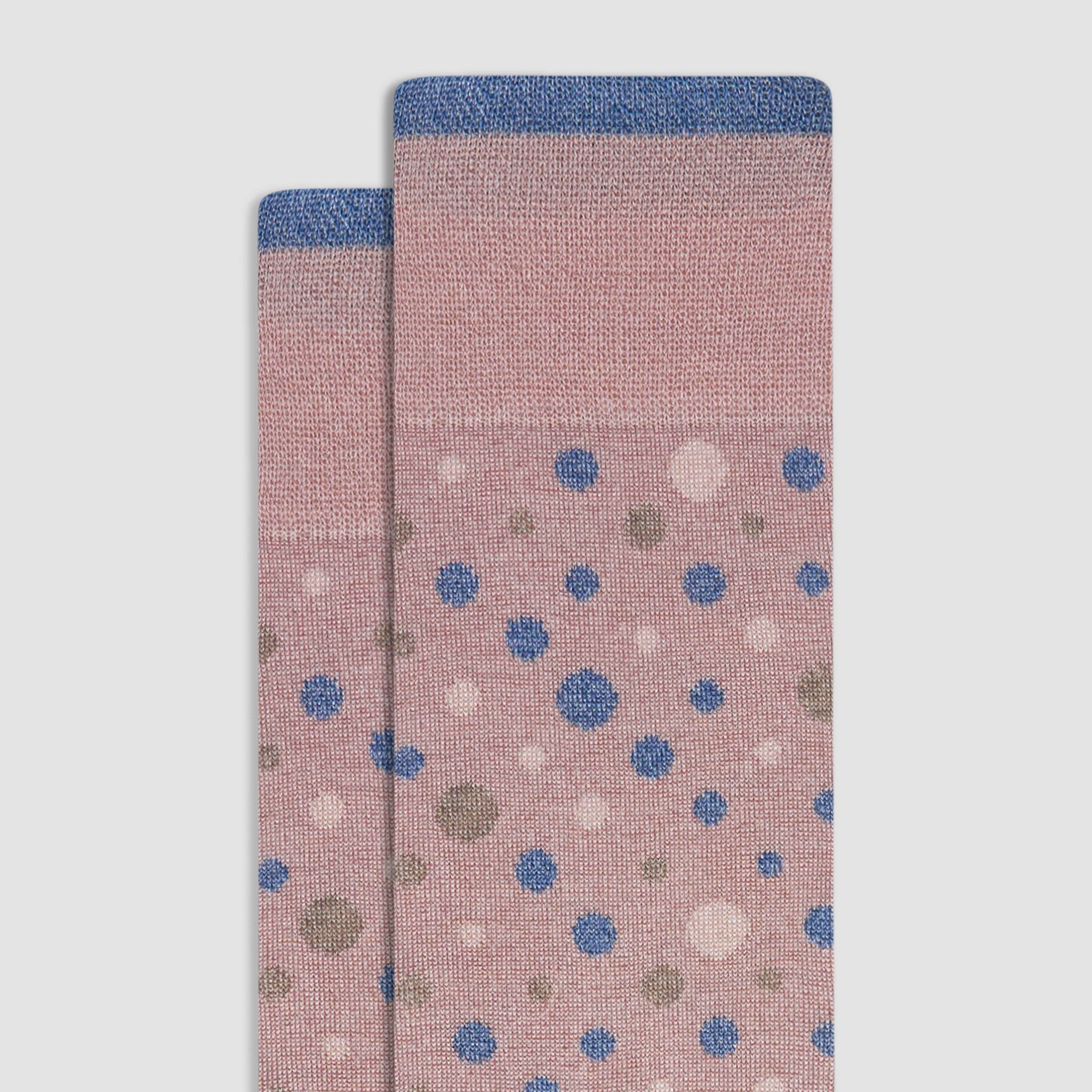 Discover premium comfort with these polka dot mid-calf socks, made in Italy from luxurious mercerized cotton with a ribbed cuff for a snug fit, a hand-linked toe for smoothness, and reinforced heel seams for added durability. Soft, breathable, and designed with care, they bring a touch of Italian flair to casual and formal wear.