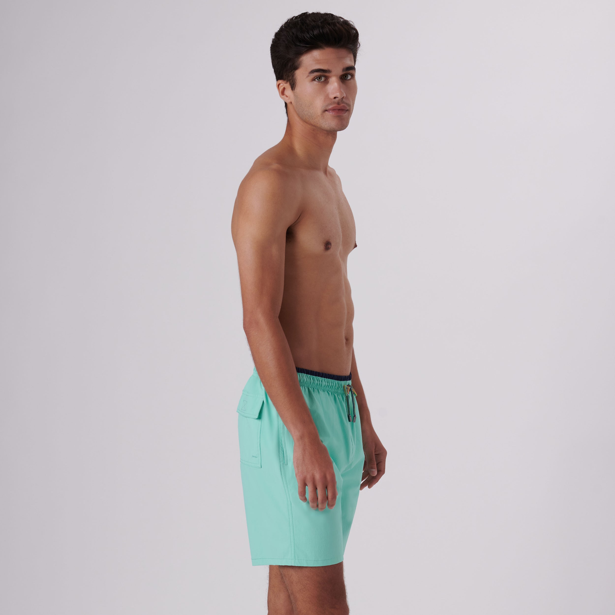 Max solid swim trunks in lightweight, easy care, quick-dry, comfort stretch nylon spandex blend with resistance to UV rays, chlorine, salt and sunscreen feature an elasticized waistband, drawstring closure, breathable stretch mesh lining, drainage grommets, side pockets and back flap pocket.