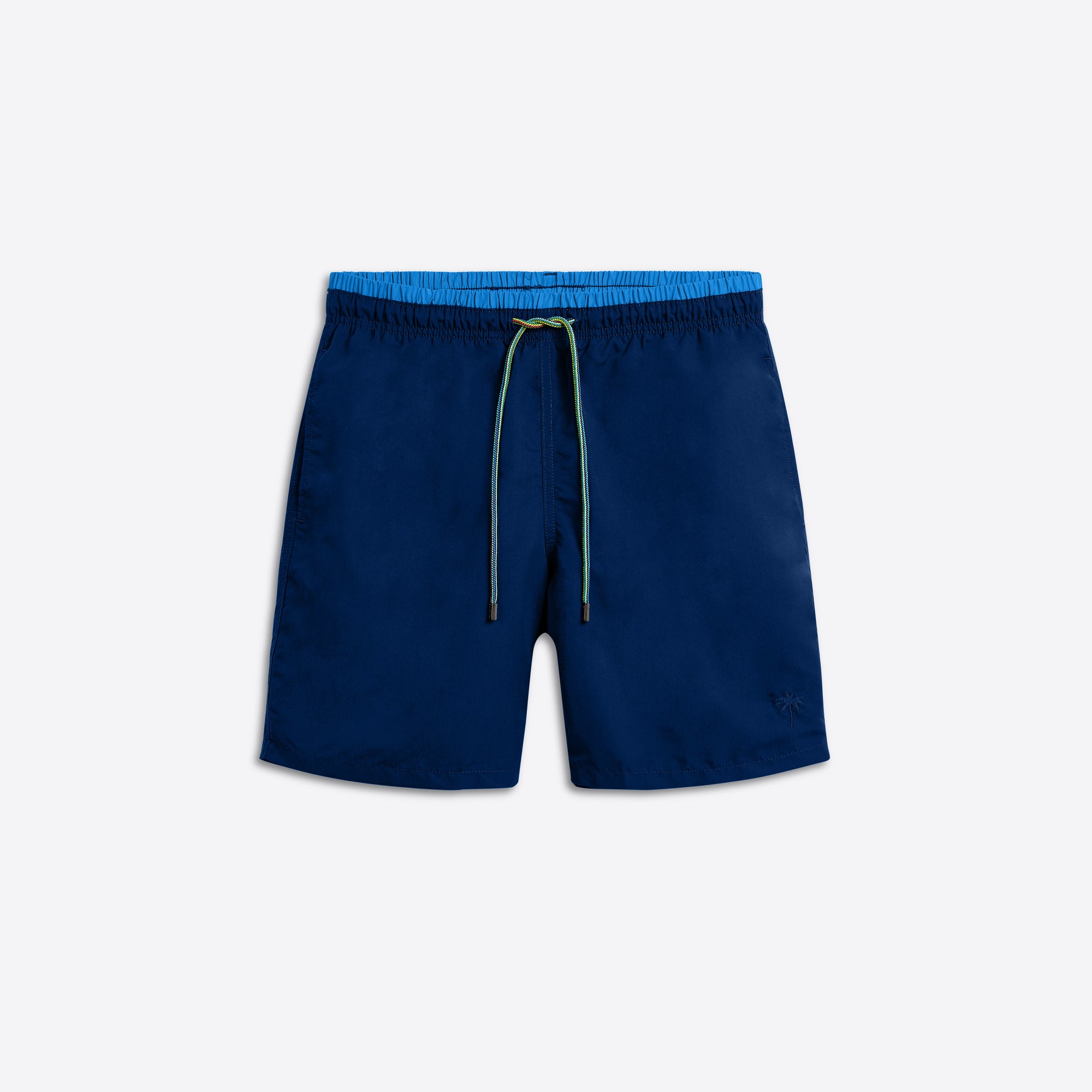 QUINN solid swim trunks in lightweight, quick dry fabric with drawstring elasticized waistband, breathable mesh lining and back flap pocket.