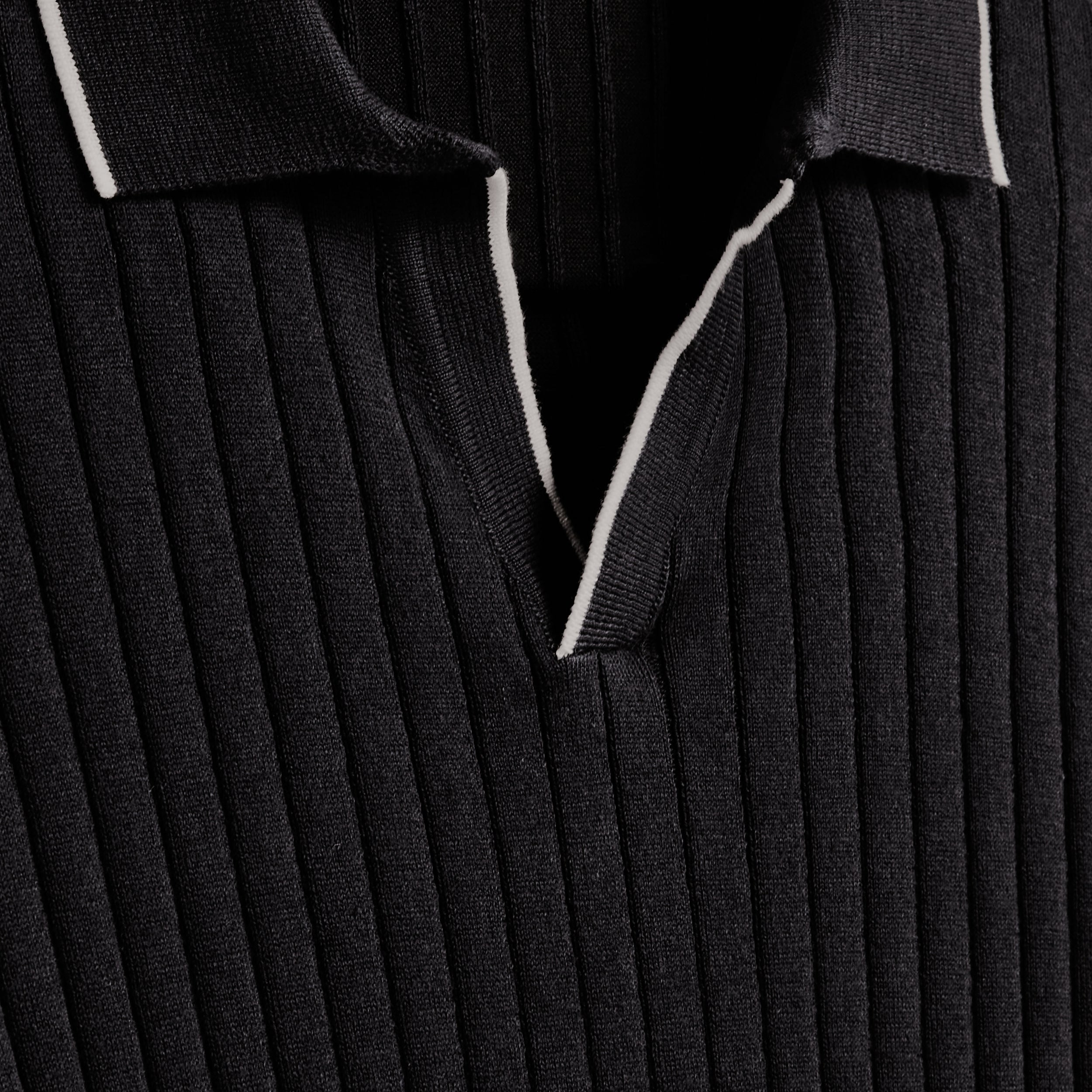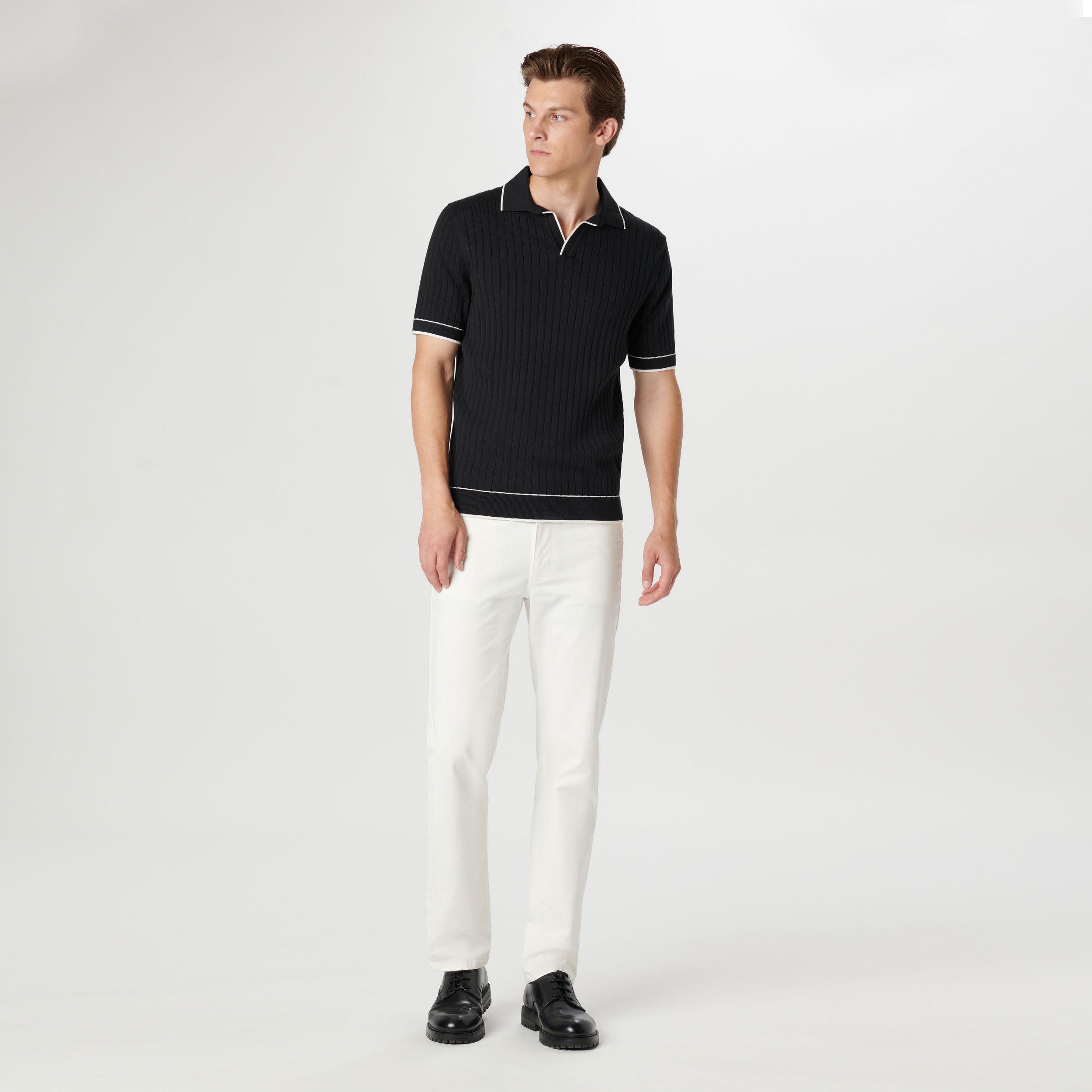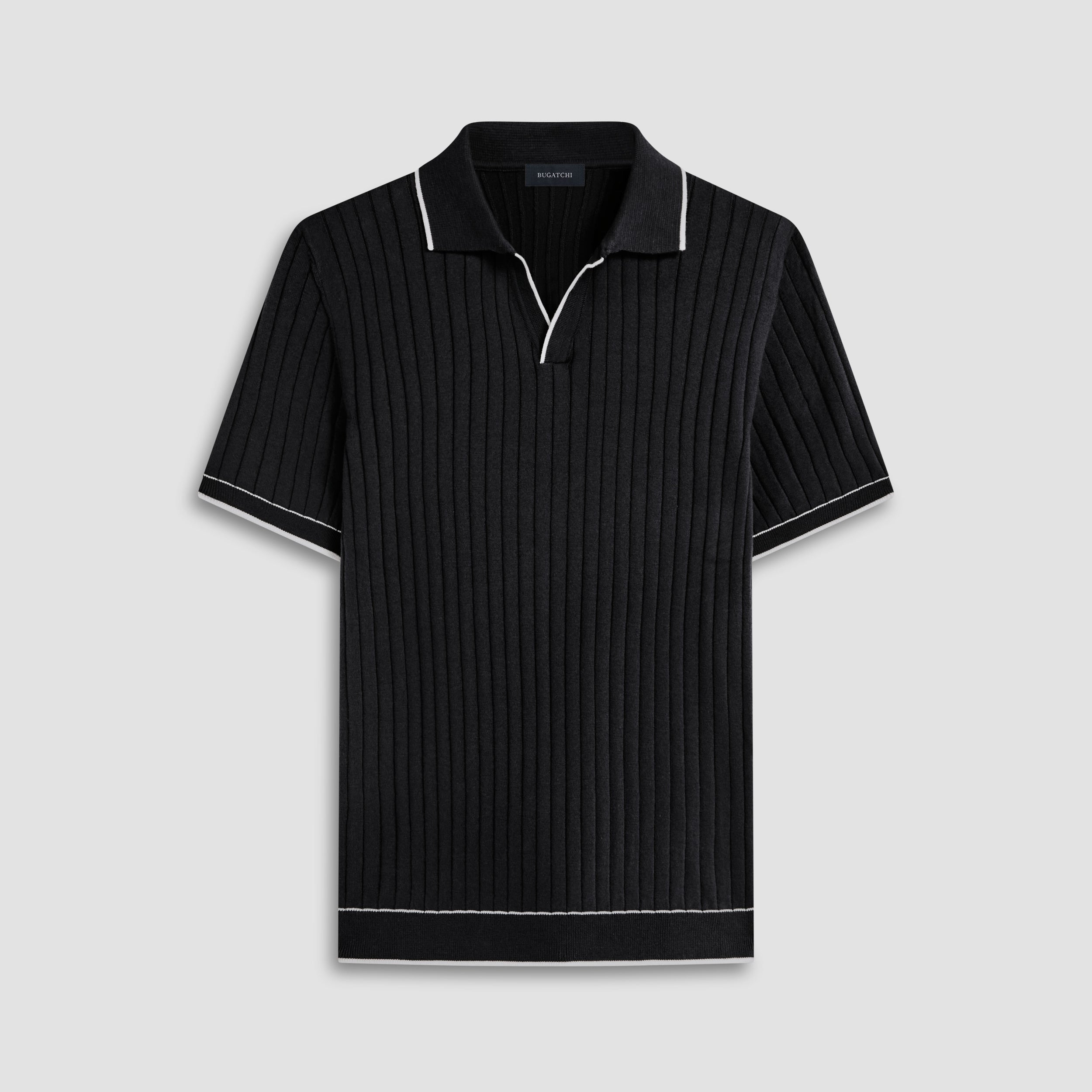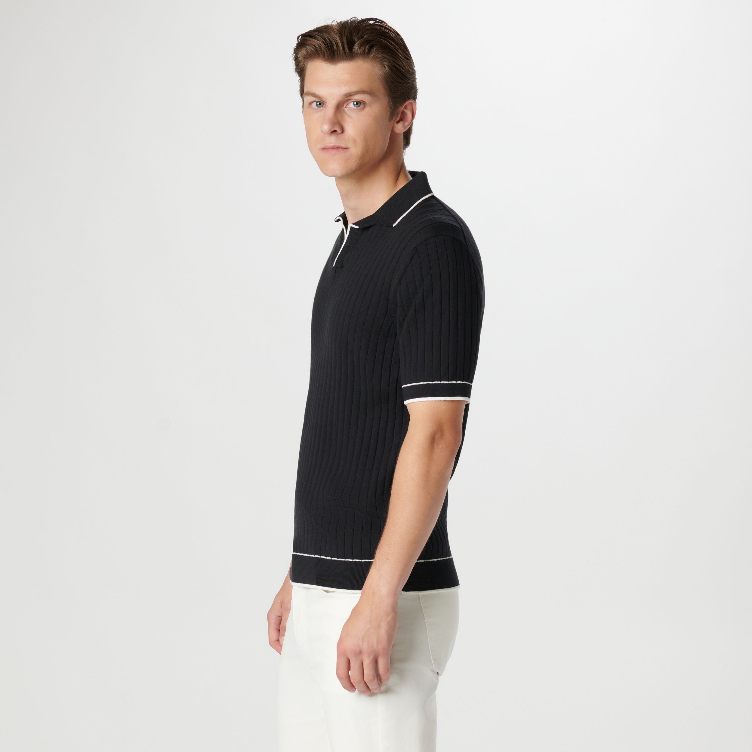 Crafted in a durable blend of cotton and polyester, this rib-stitch short-sleeved polo sweater showcases a solid flat knit Johnny collar, armbands, and waist. Soft against the skin with comfort stretch and added strength for lasting wear, it strikes the perfect balance between comfort and durability.