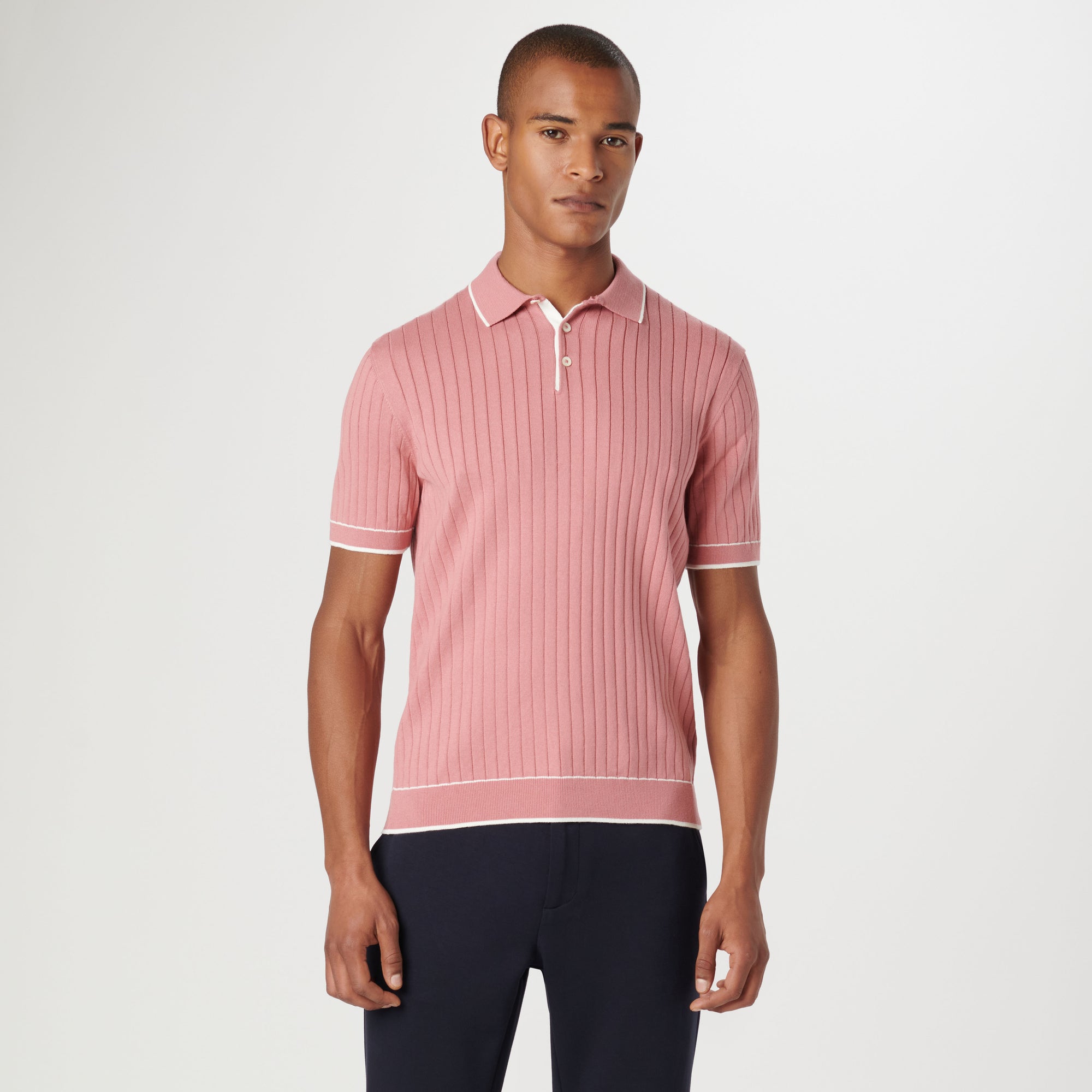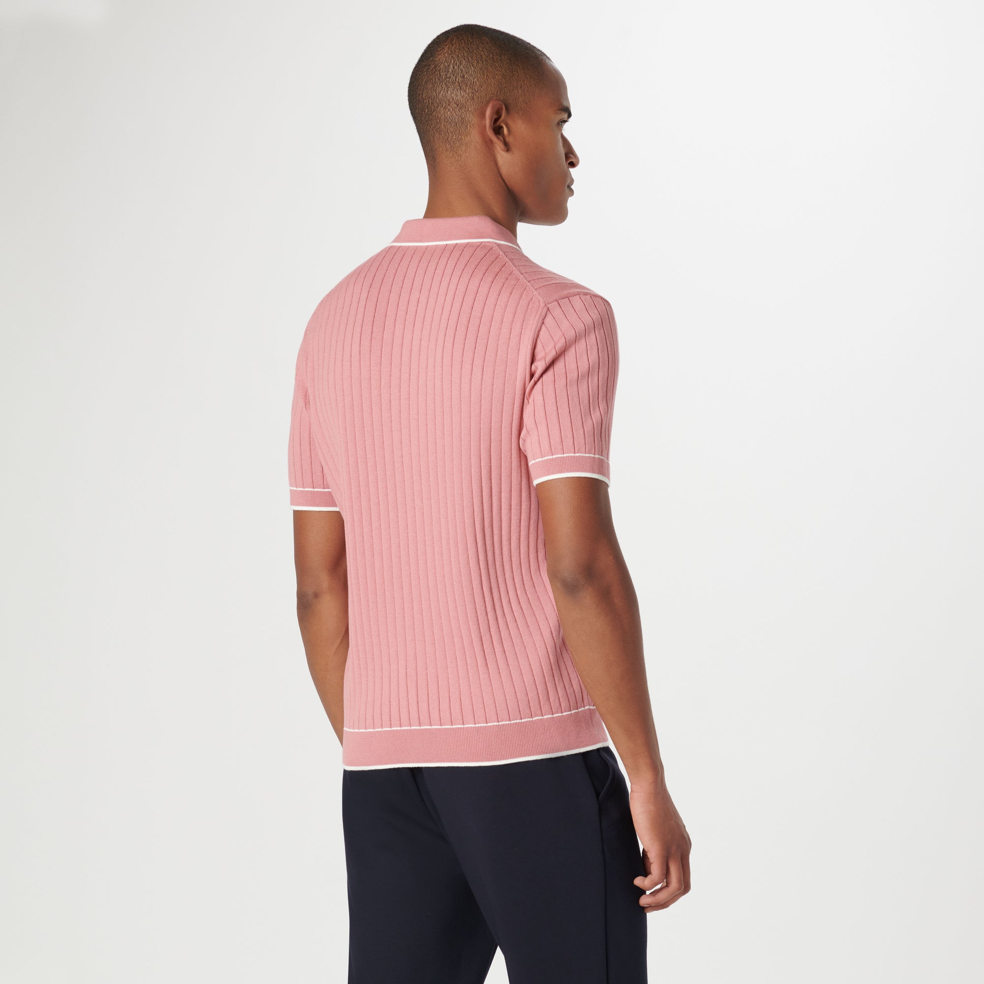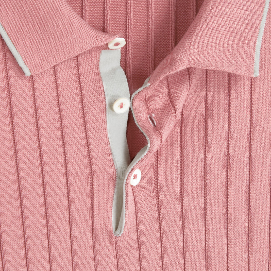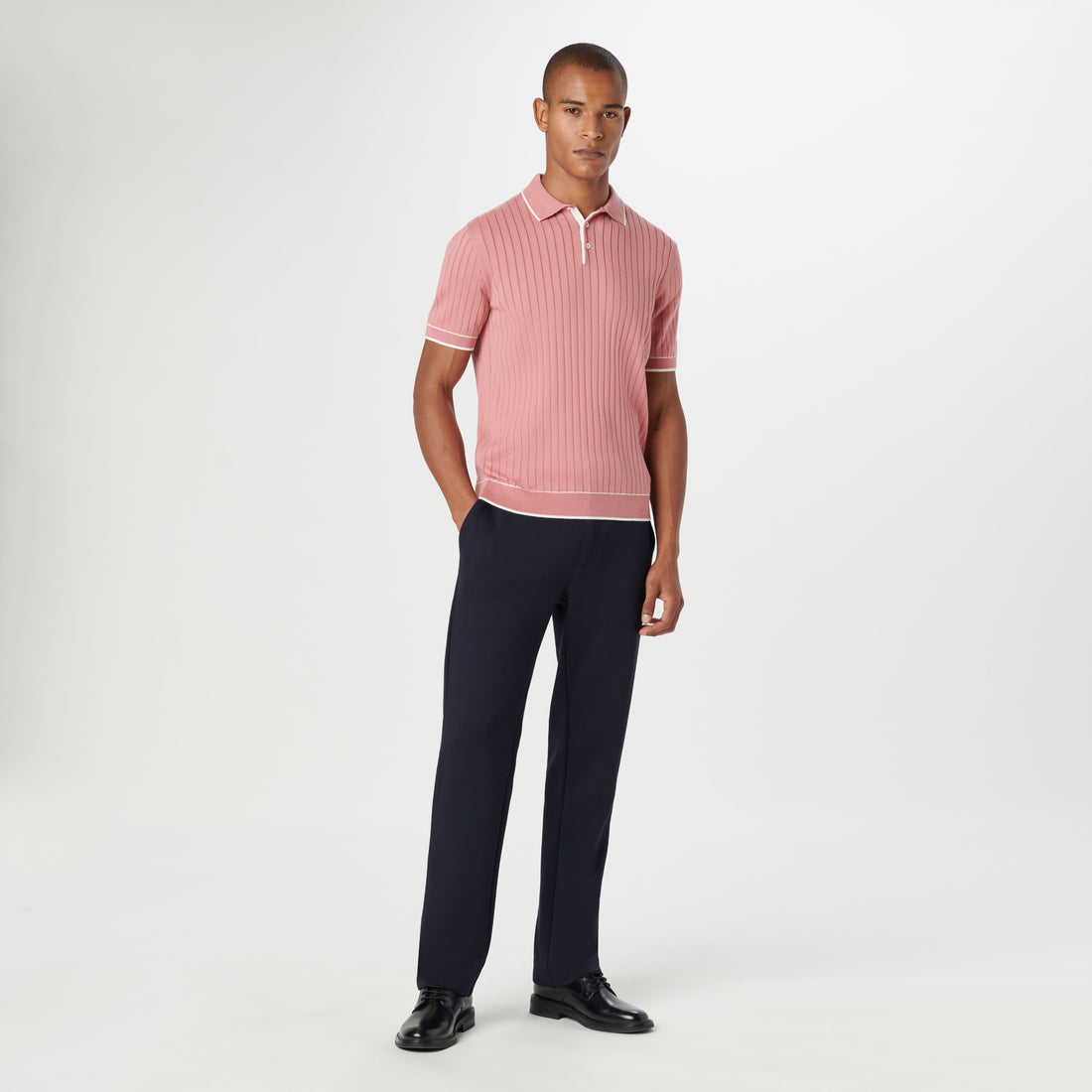 Crafted in a durable blend of cotton and polyester, this rib-stitch short-sleeved polo sweater features a three-button contrast placket, and solid flat knit collar, armbands, and waist. Soft against the skin with comfort stretch and added strength for lasting wear, it strikes the perfect balance between comfort and durability.