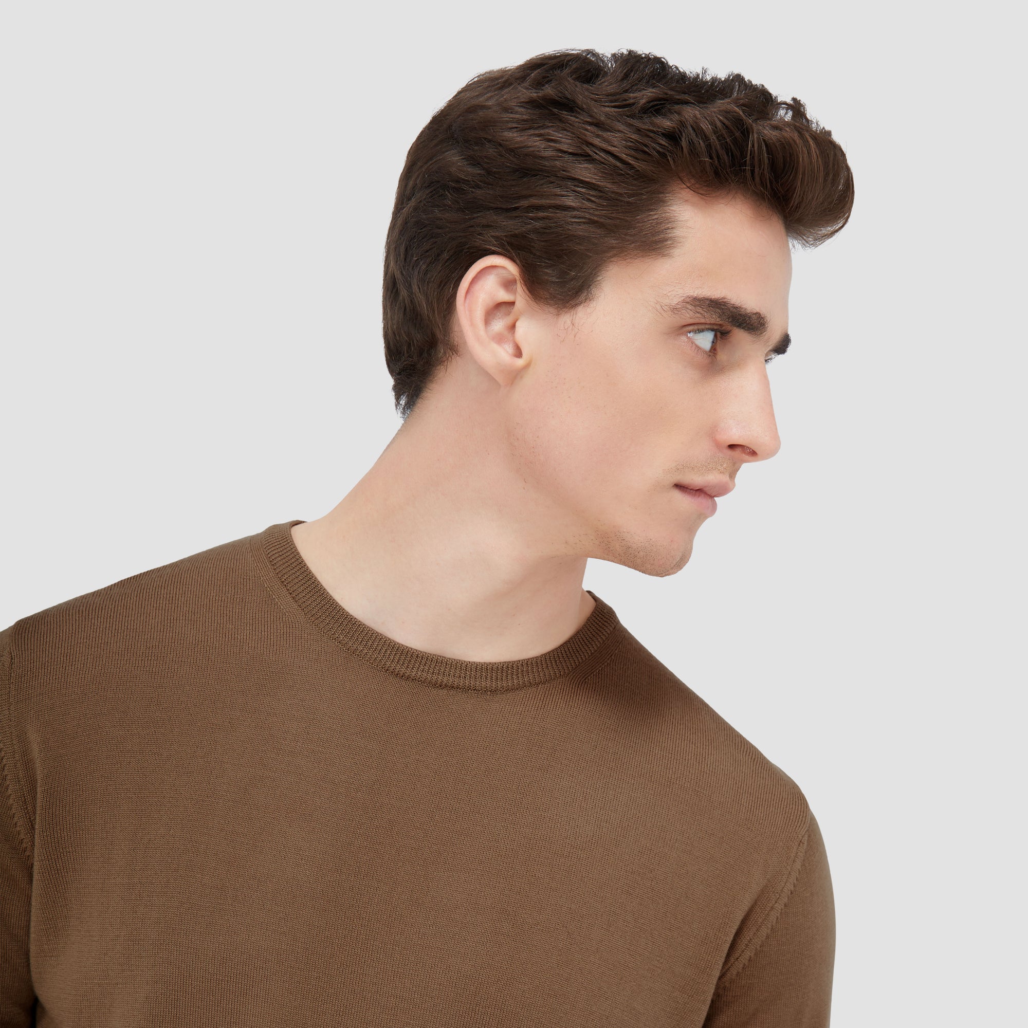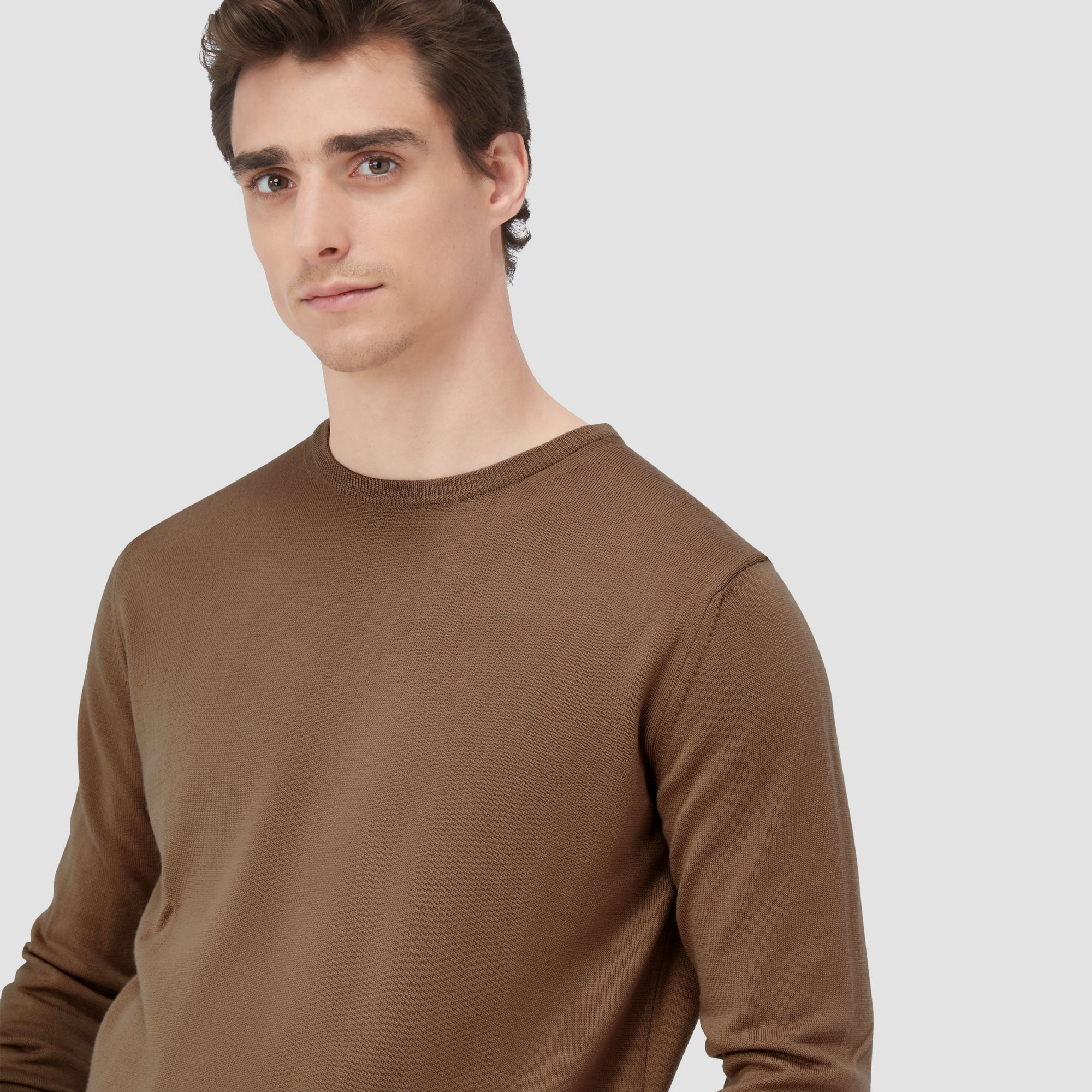The Scott crew neck sweater in 100% Super Merino wool with Harmony 4.0 special finish is made in Italy and features a ribbed neckline, sleeve cuffs and waistband. Super Merino wool is a high grade, extra fine, exceptionally soft wool that is breathable, moisture-wicking, water repellent, machine-washable, and crease-proof for long lasting performance wash after wash.