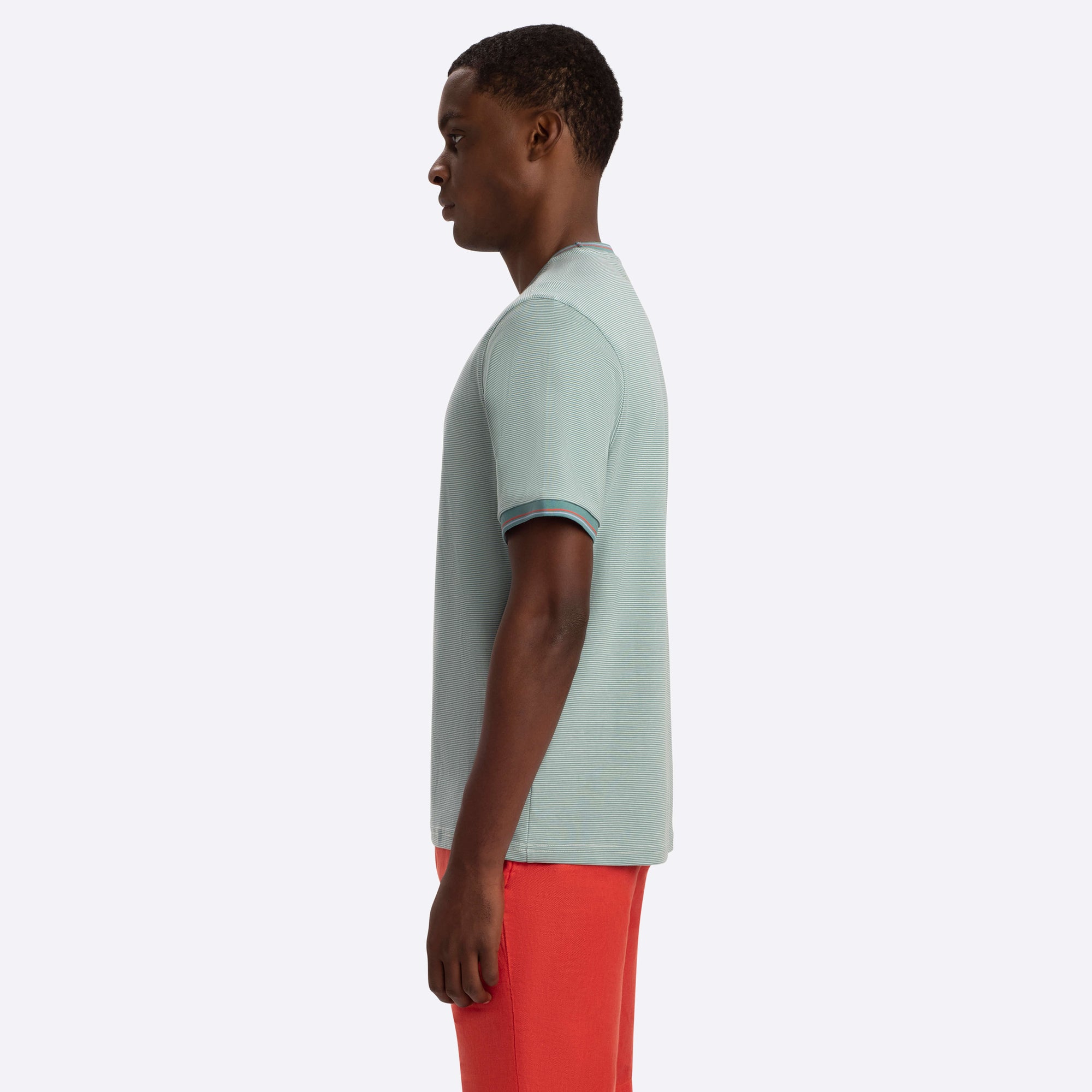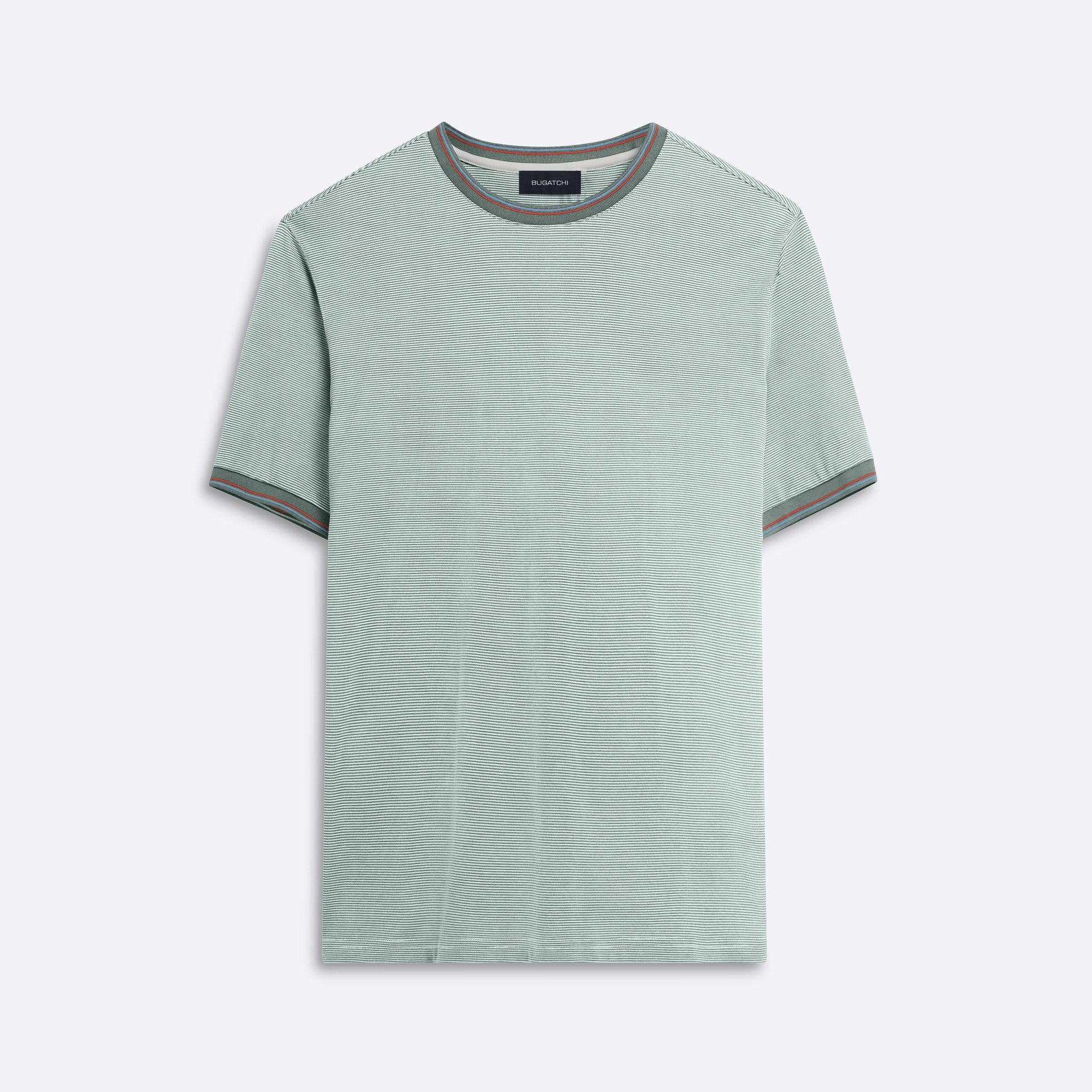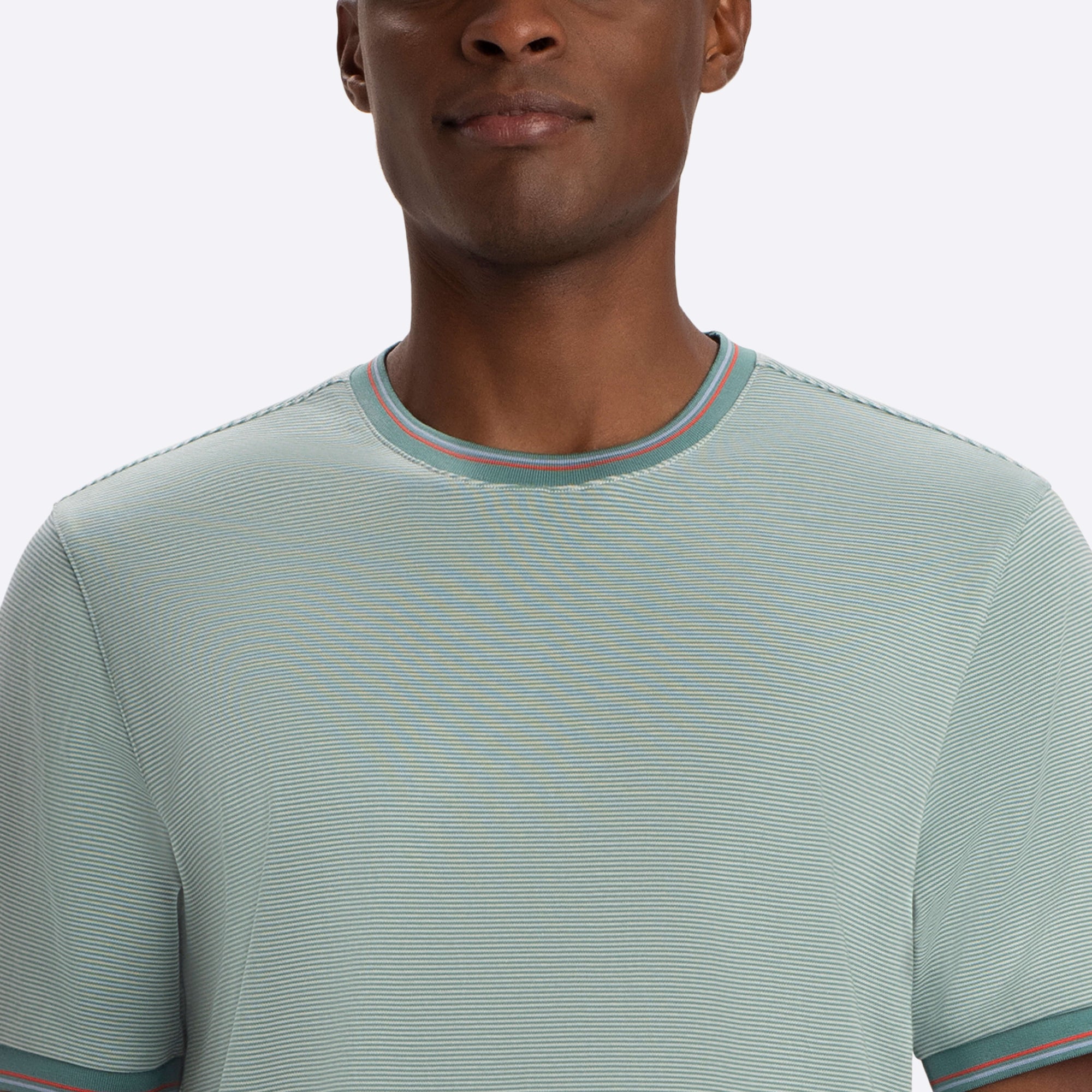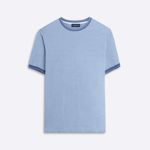 Short sleeve crew neck T-shirt in striped 100% Pima cotton with contrast double striped rib detail.