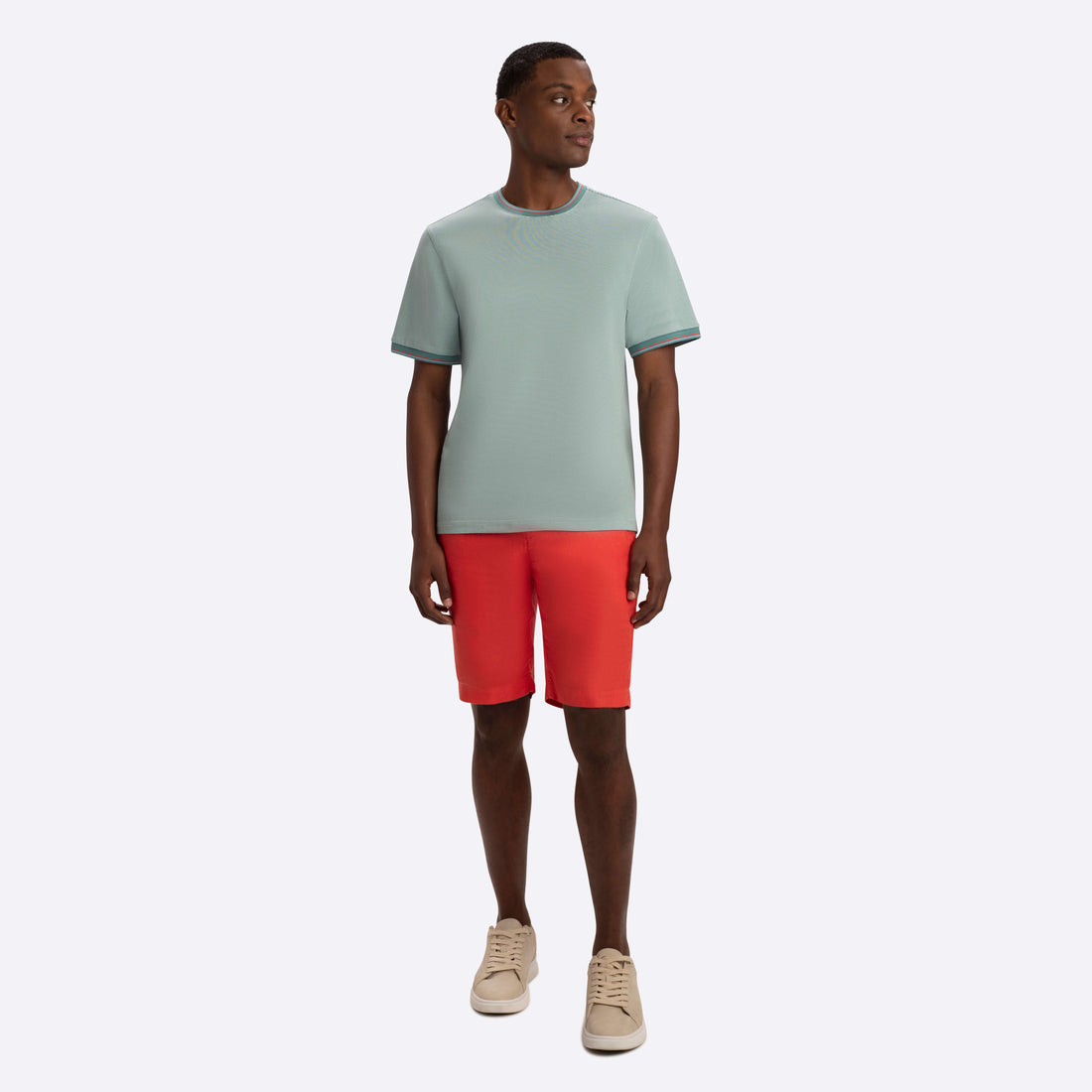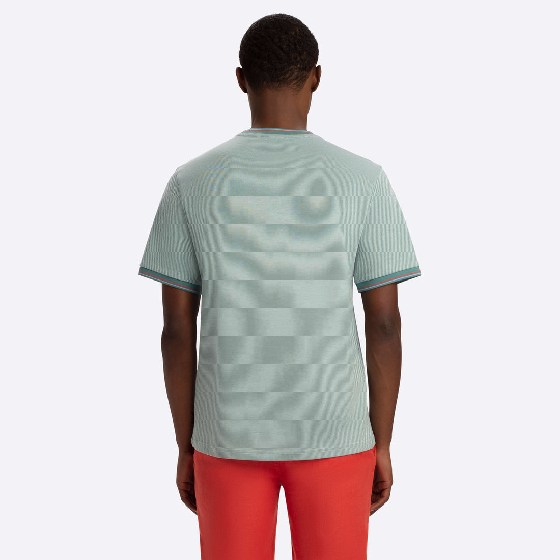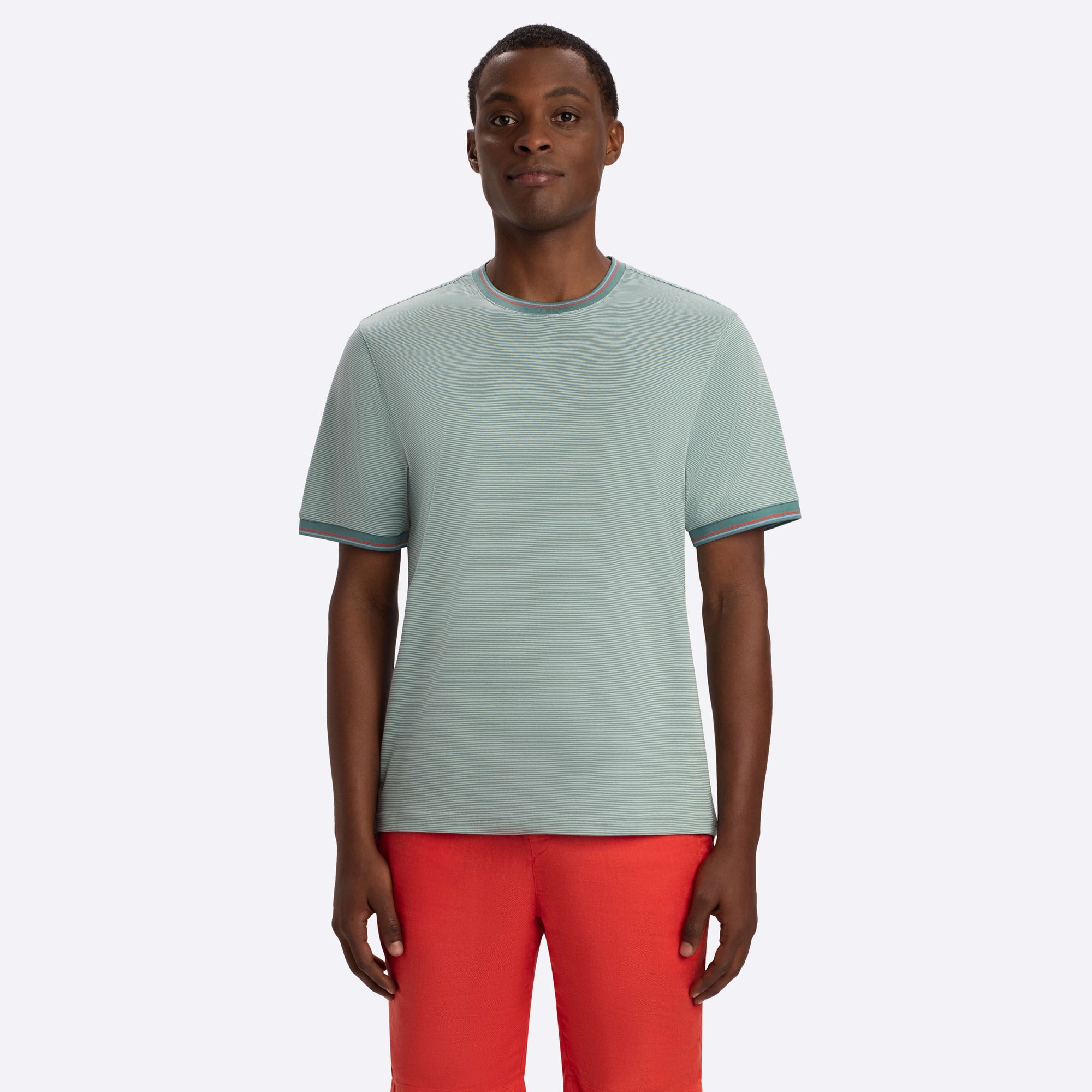 Short sleeve crew neck T-shirt in striped 100% Pima cotton with contrast double striped rib detail.