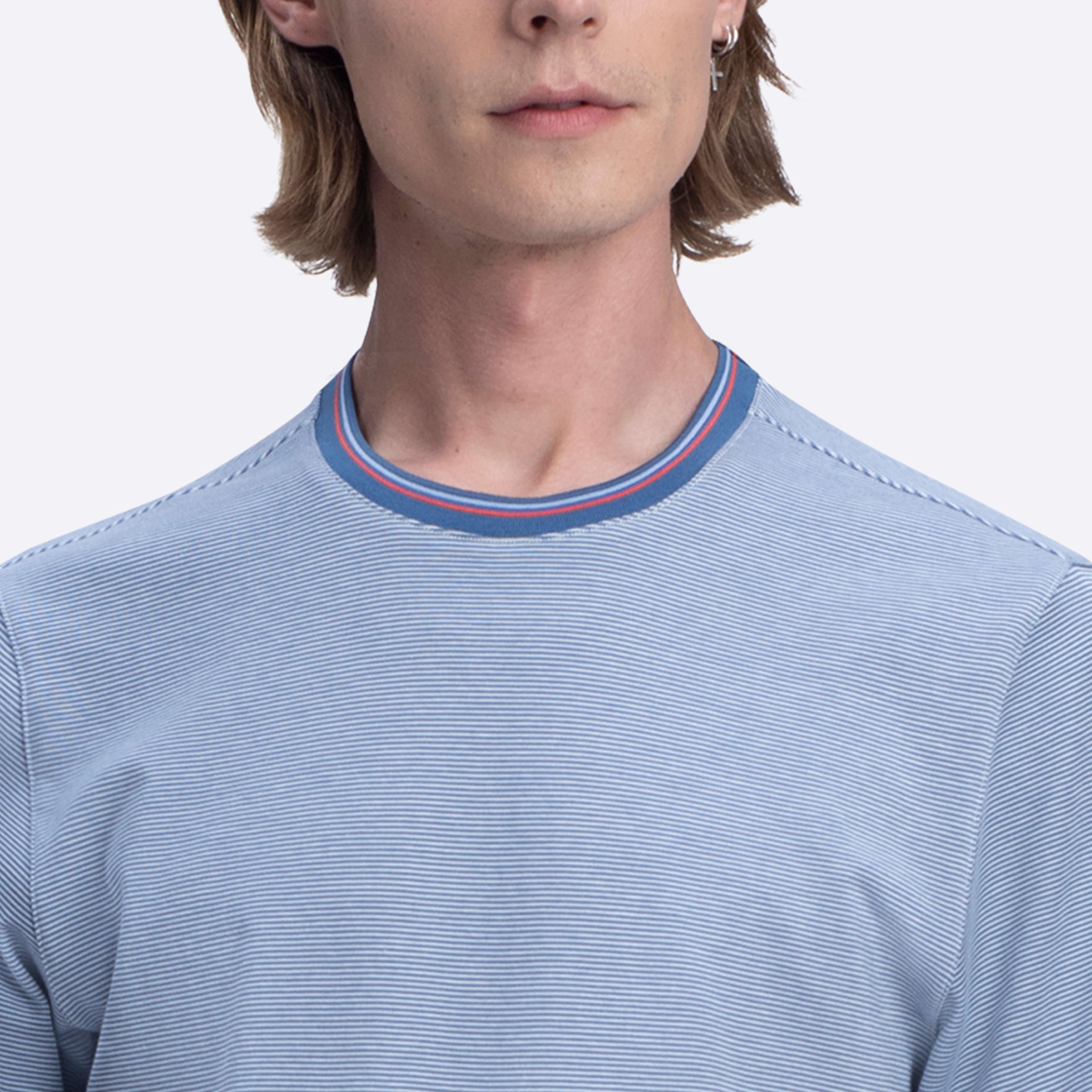 Short sleeve crew neck T-shirt in striped 100% Pima cotton with contrast double striped rib detail.