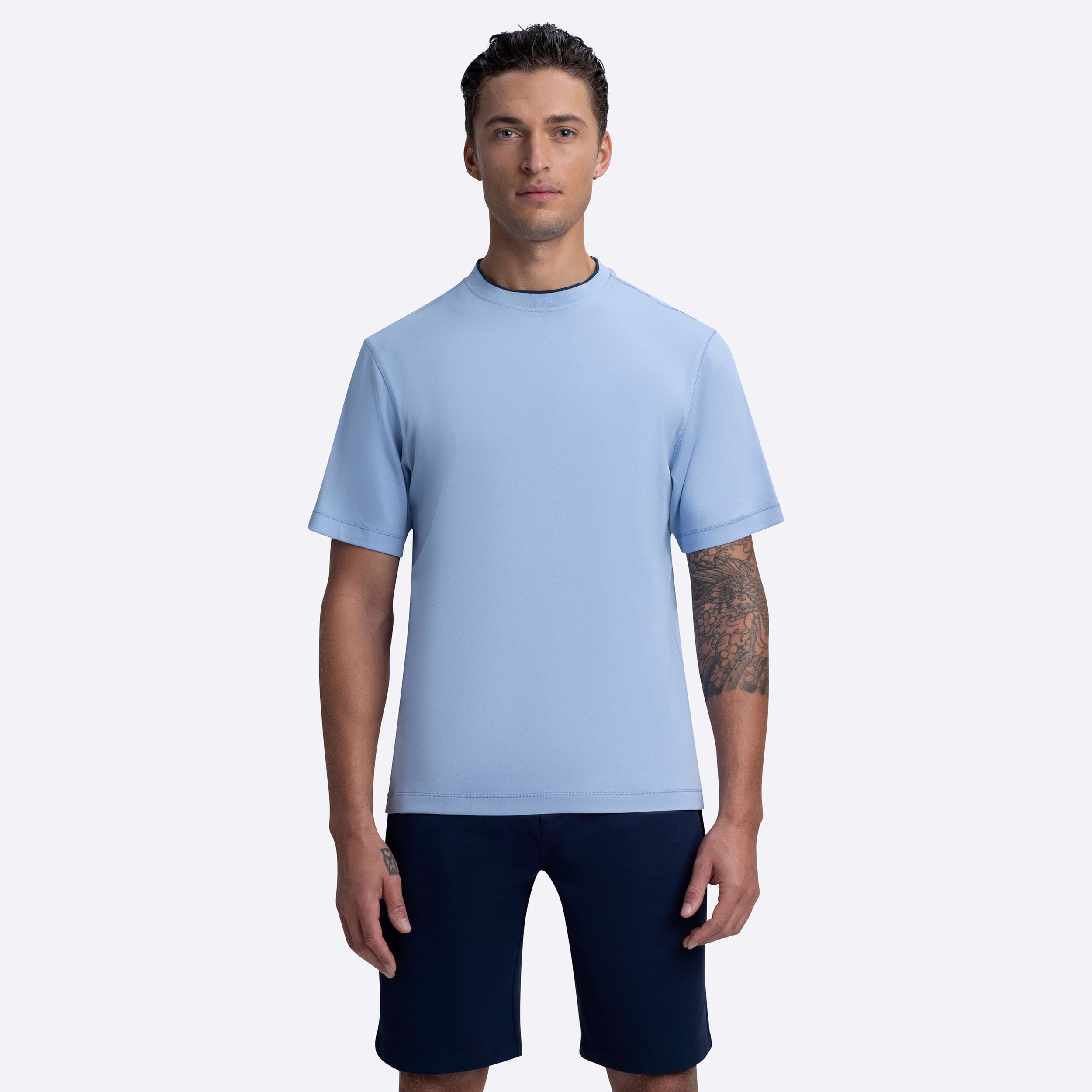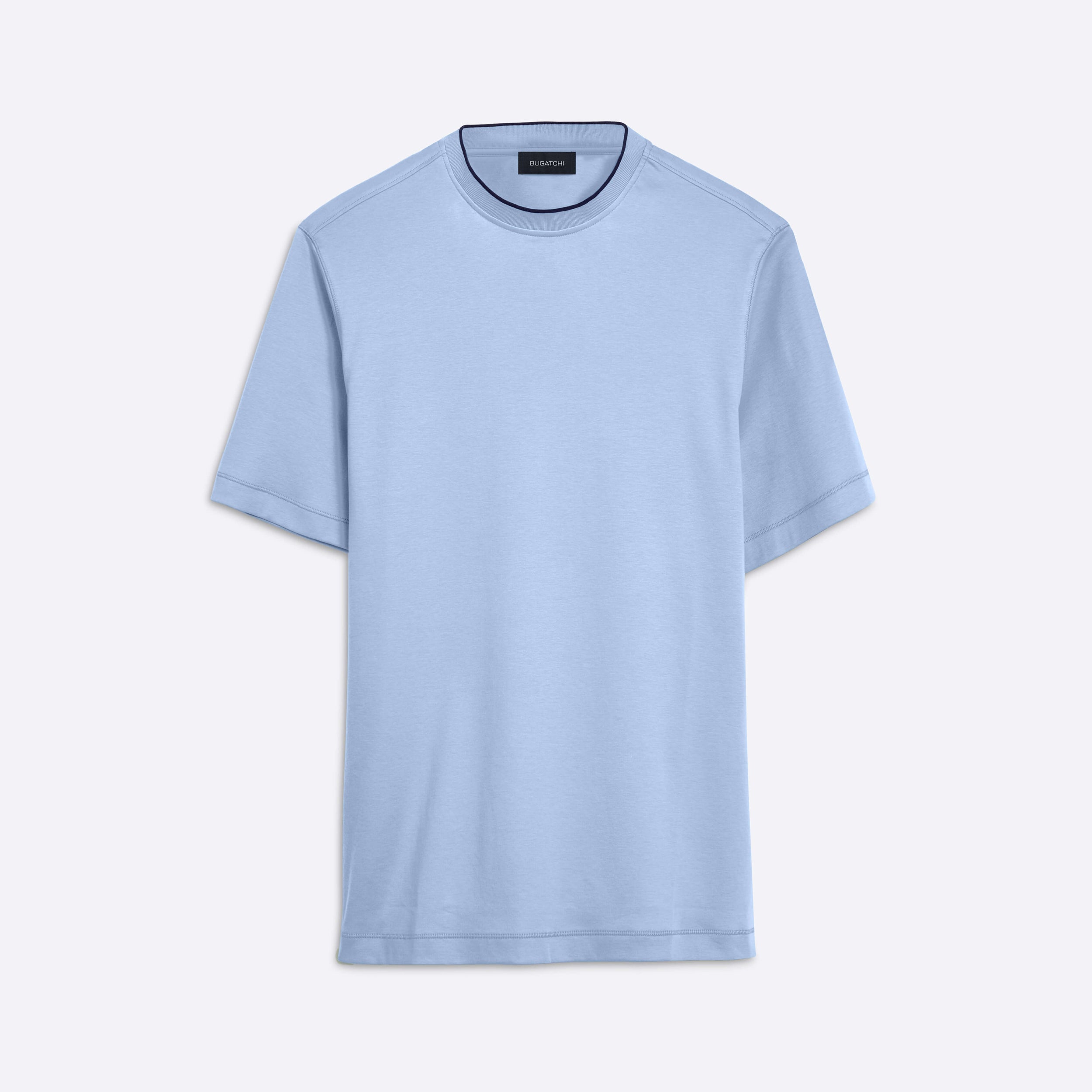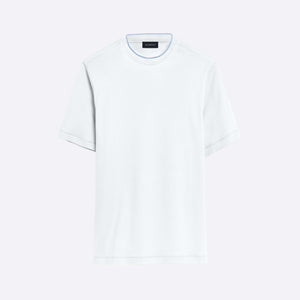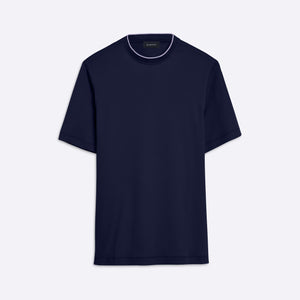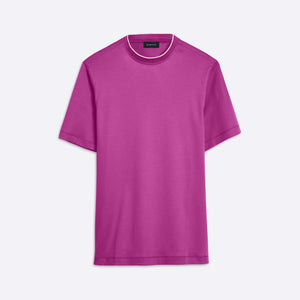 Short sleeve crew neck T-shirt in 100% Pima cotton with contrast tipped rib collar band.