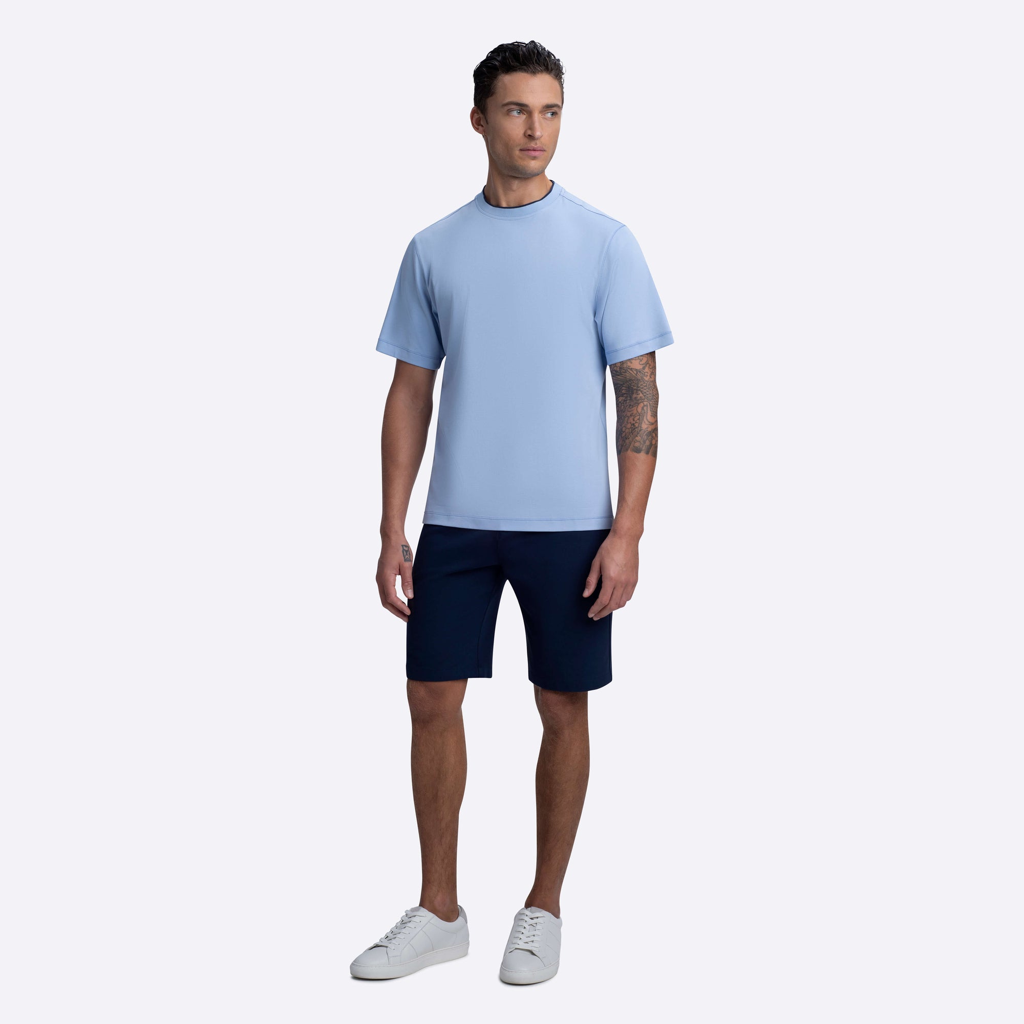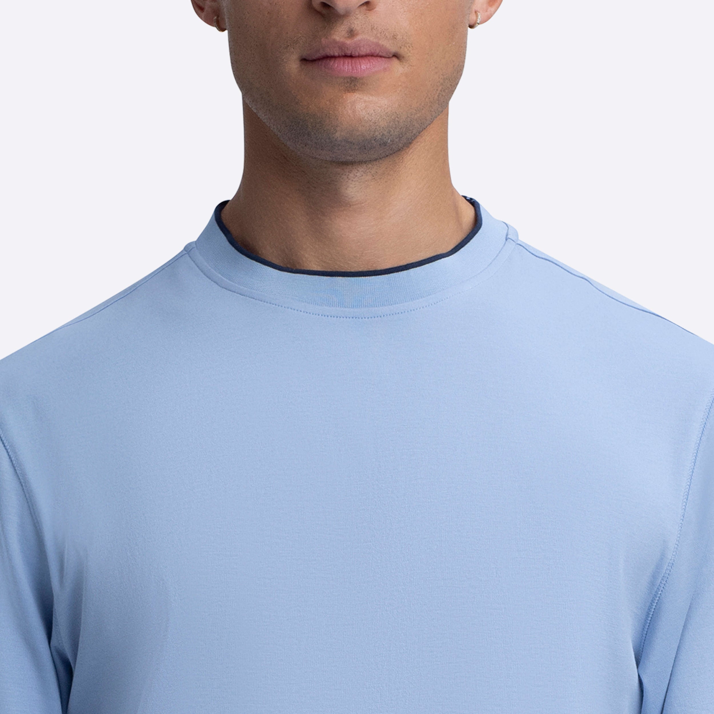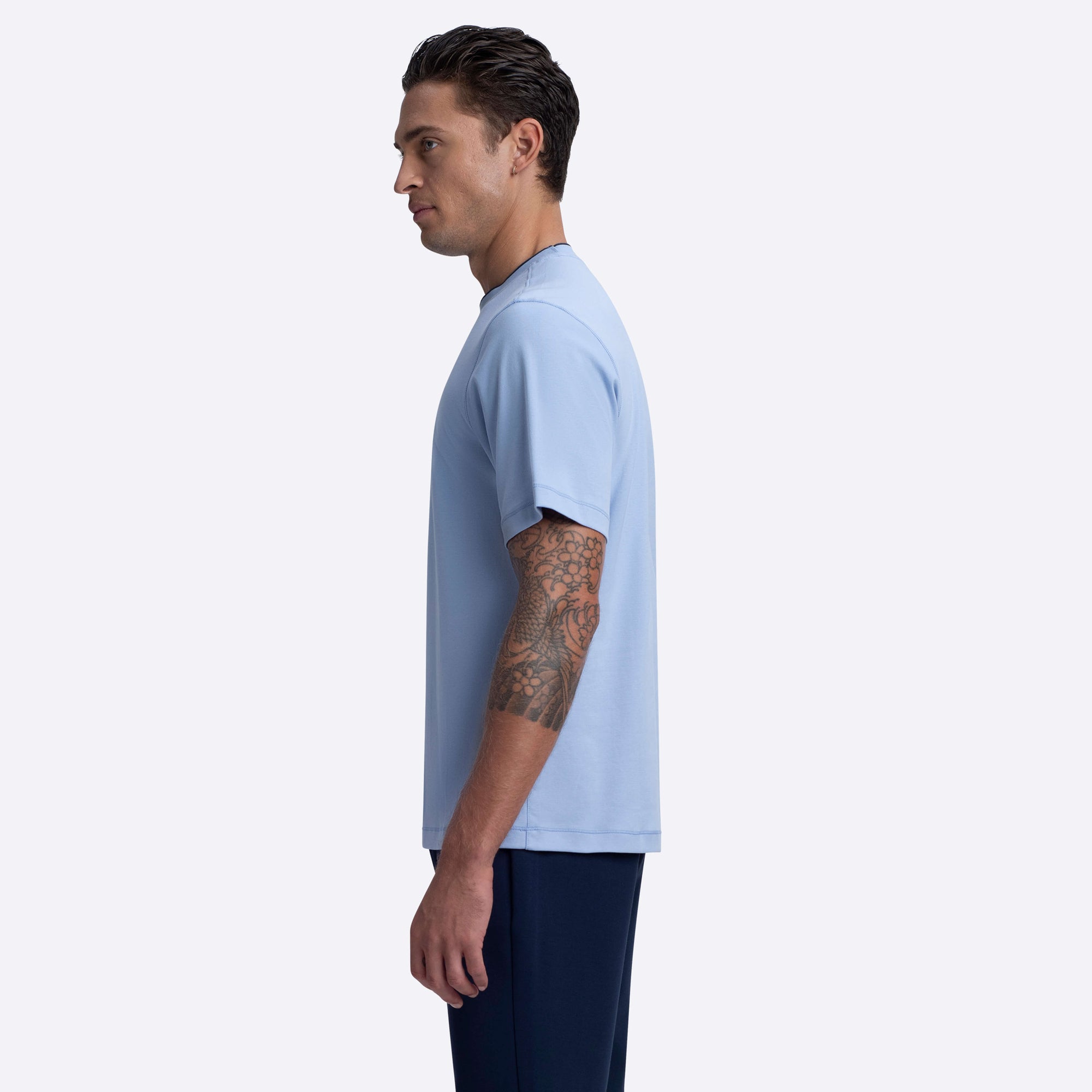 Short sleeve crew neck T-shirt in 100% Pima cotton with contrast tipped rib collar band.