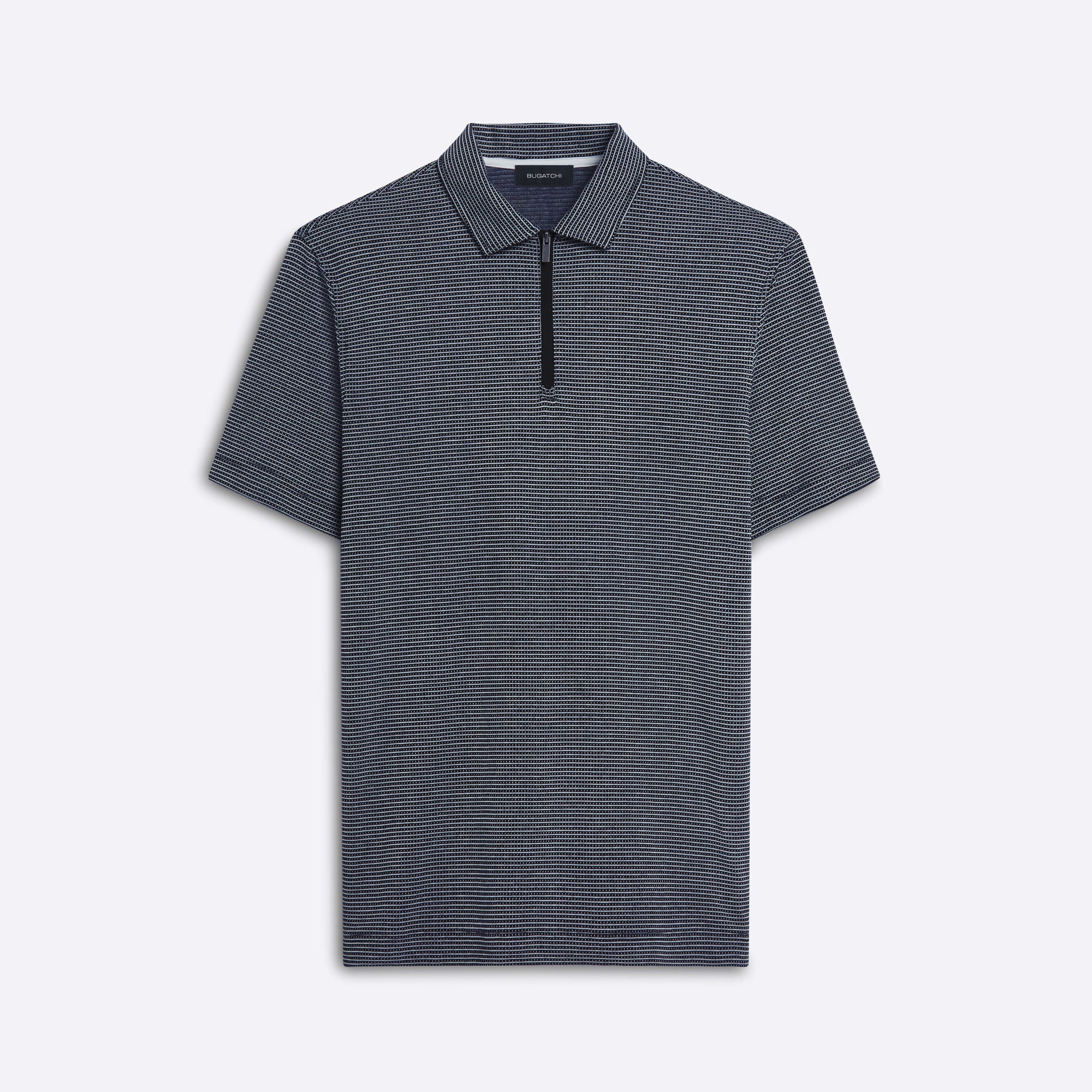 Short sleeve quarter zip polo in bird's eye 100% cotton with self collar.