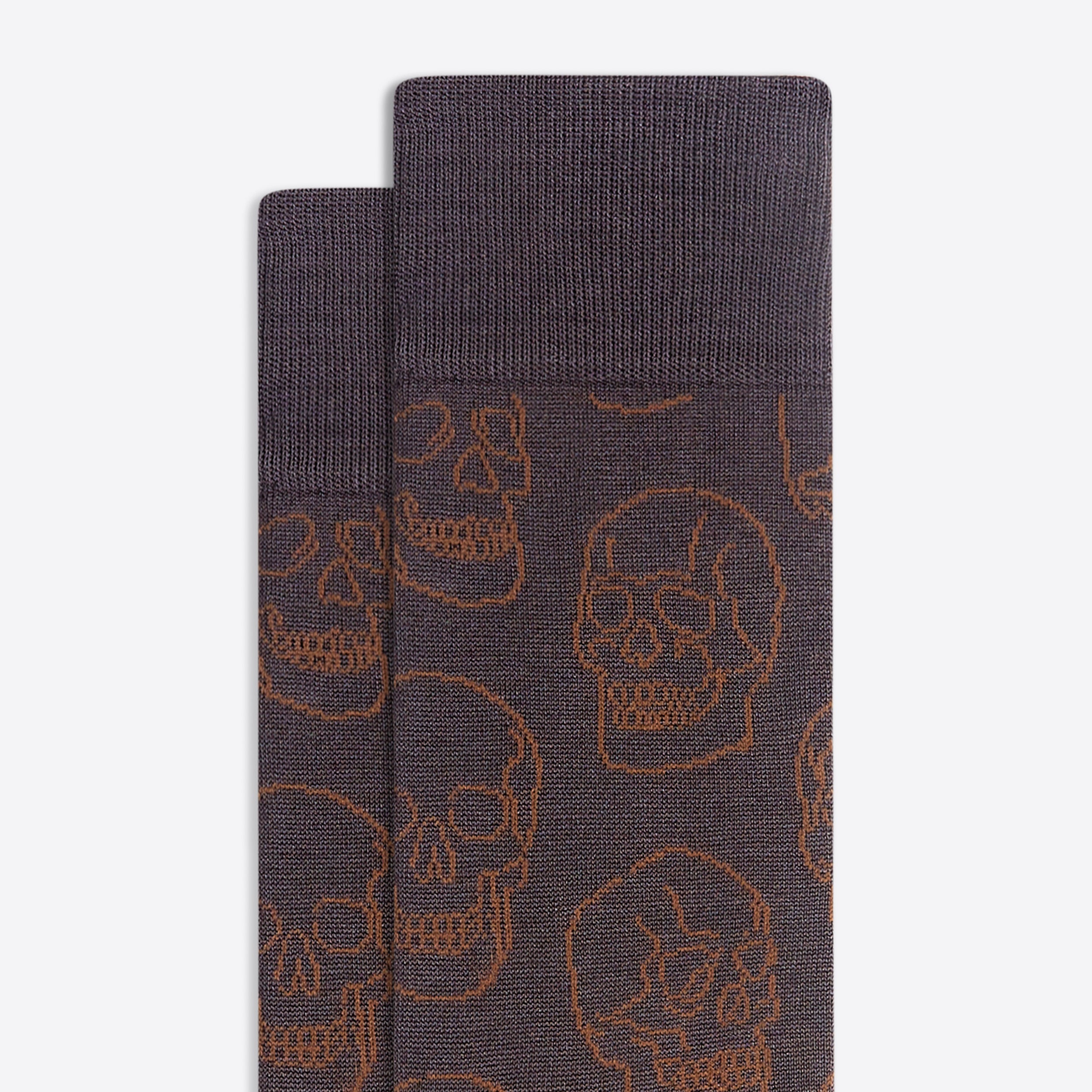 Skulls mid-calf socks in fine gauge mercerized cotton blend with rib knit cuff band, hand linked toe and reinforced heel seams. Made in Italy.