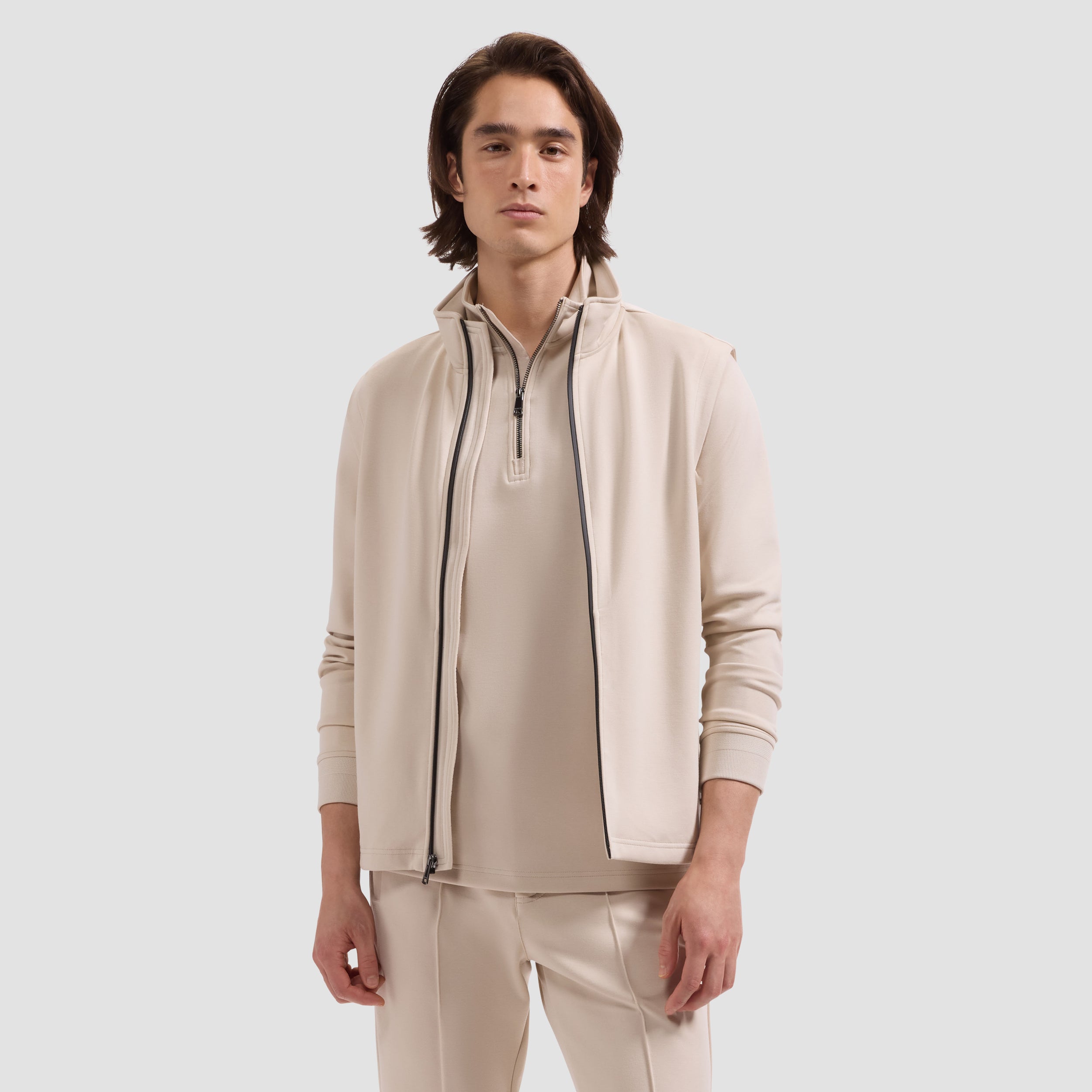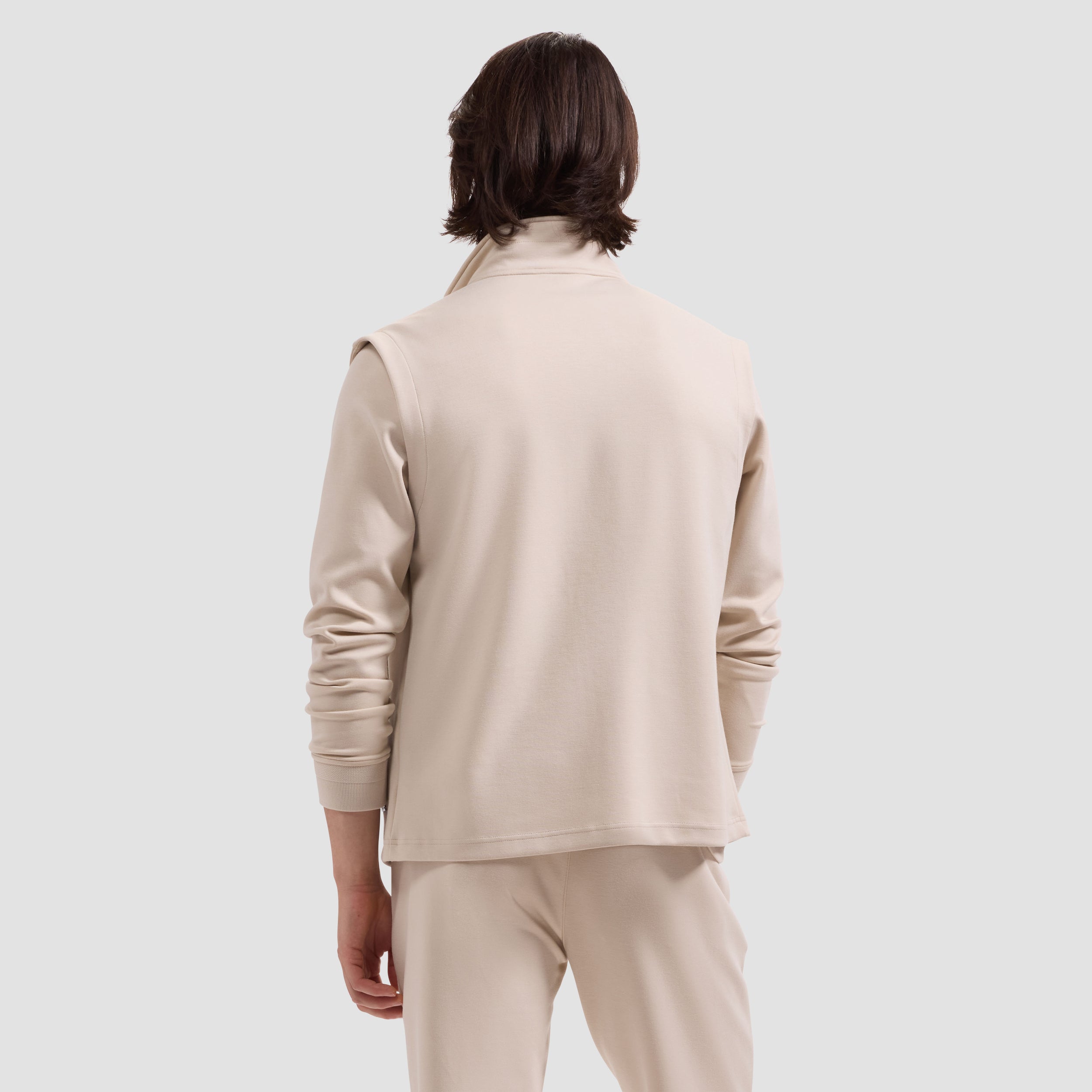 Add a refined layer to your look with this sleek vest crafted in Soft Touch performance fabric. Designed with a full-zip front and a high-standing collar, it features nylon trim detailing throughout for a modern finish. Zippered pockets offer functional storage, while a reflective tape tab below the back collar adds a subtle technical touch.