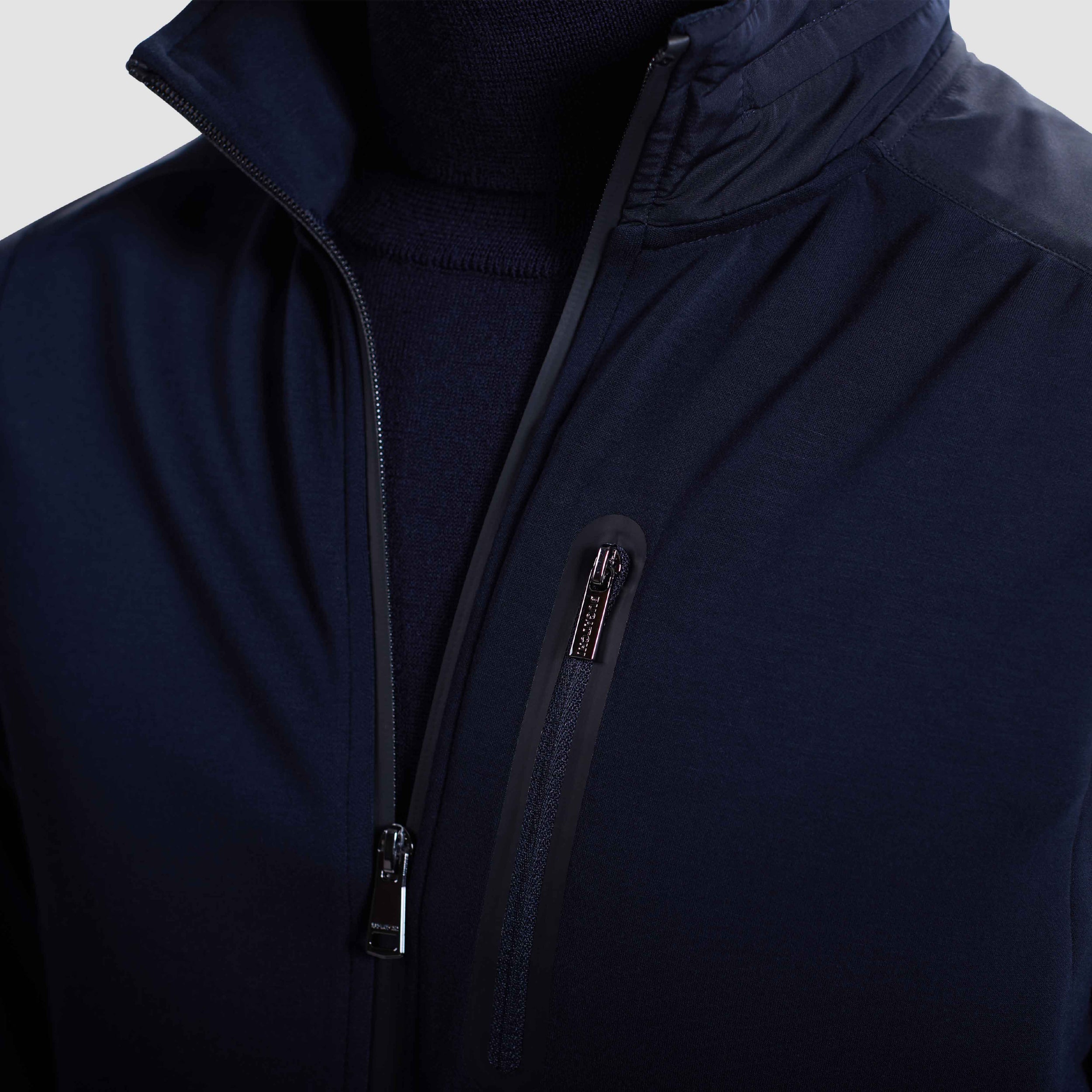 This practical vest in Soft Touch performance fabric features a nylon collar with a stowable nylon hood that tucks neatly into a zippered pocket, adjustable toggles, and nylon shoulder trim. The full zipper closure and three vertical zip pockets are accented with rubber bonding for a sleek, versatile finish. Ideal for transitional weather and effortless layering.
