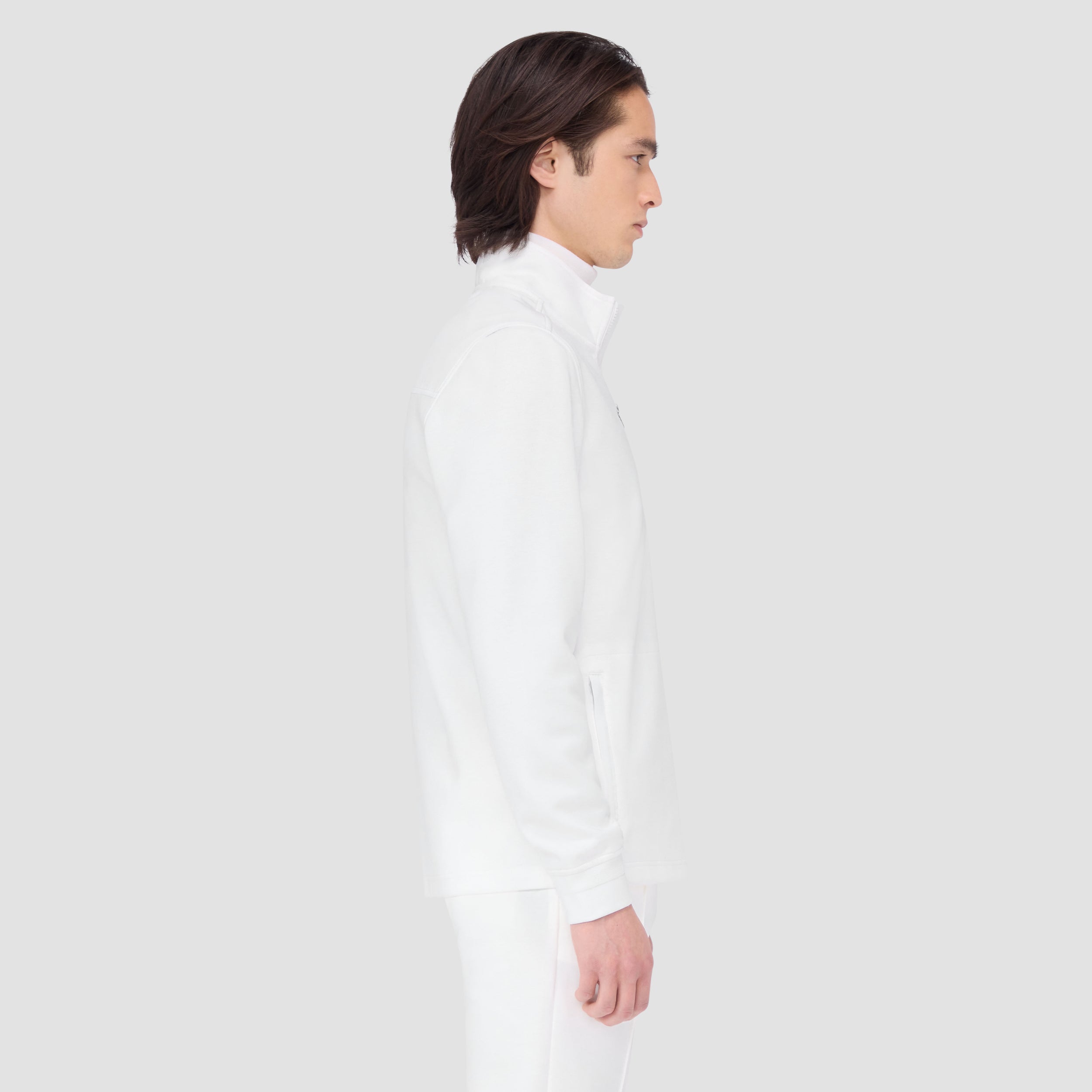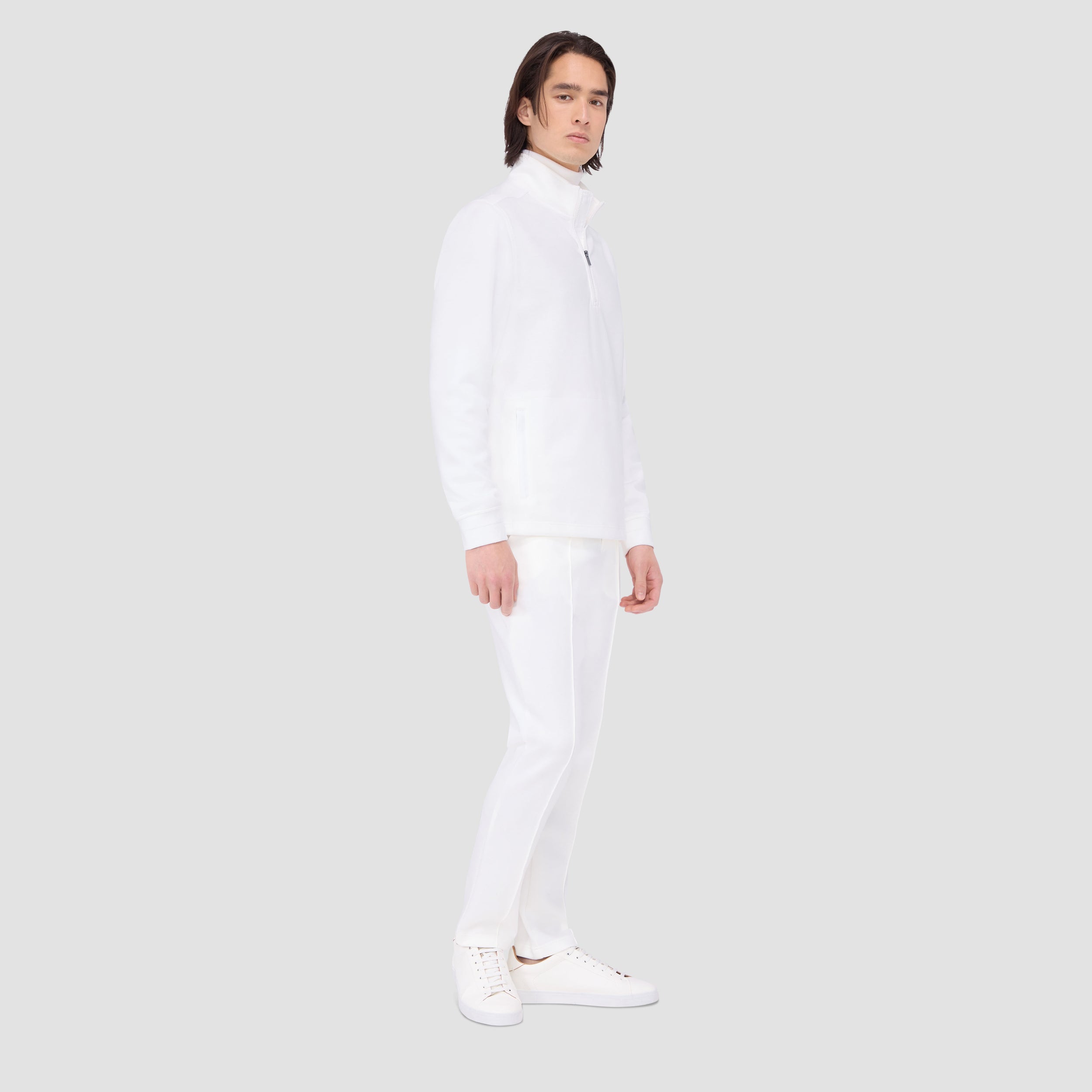 Made from a luxurious soft-touch knit fabric, this performance quarter-zip pullover offers exceptional comfort and style. It features a mock neck, rib-knit cuffs, zippered side pockets and sleek nylon trimming. Combining comfort and versatility, this pullover is a great choice for both casual and activewear.