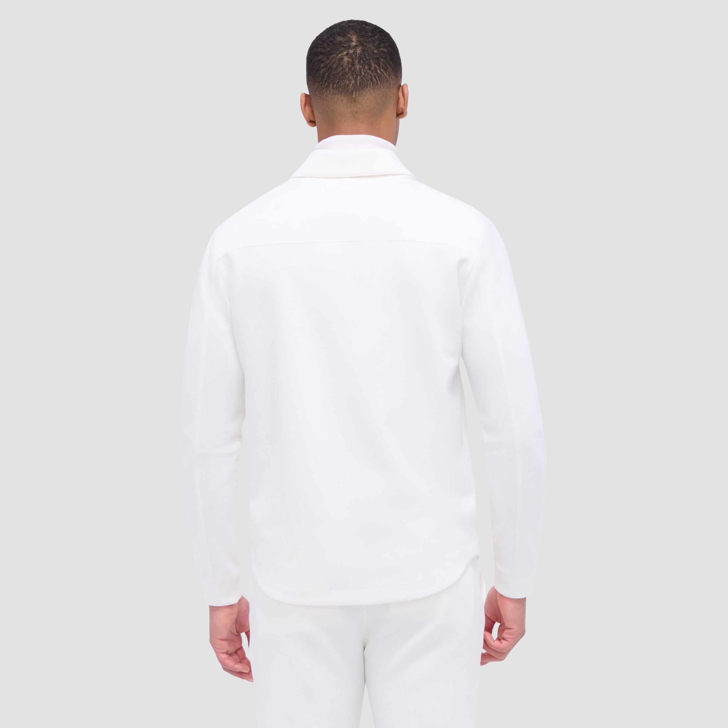 Made from a luxurious soft-touch knit fabric, this performance shirt jacket offers exceptional comfort and style. It features a point collar, full snap closure, ribbed cuffs, zippered side pockets, and sleek nylon trimming. Combining practicality with modern sophistication, this shirt jacket is a great choice for both casual and activewear.