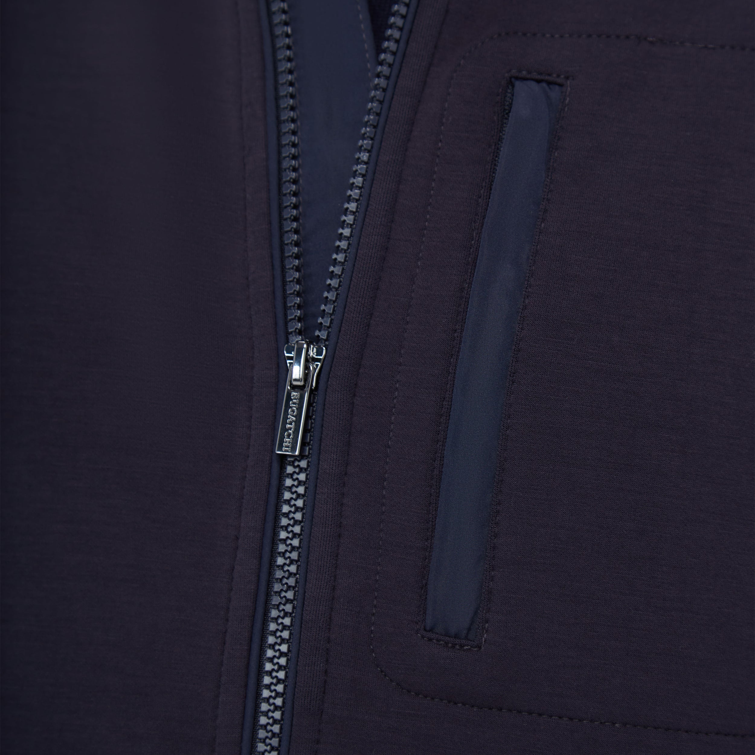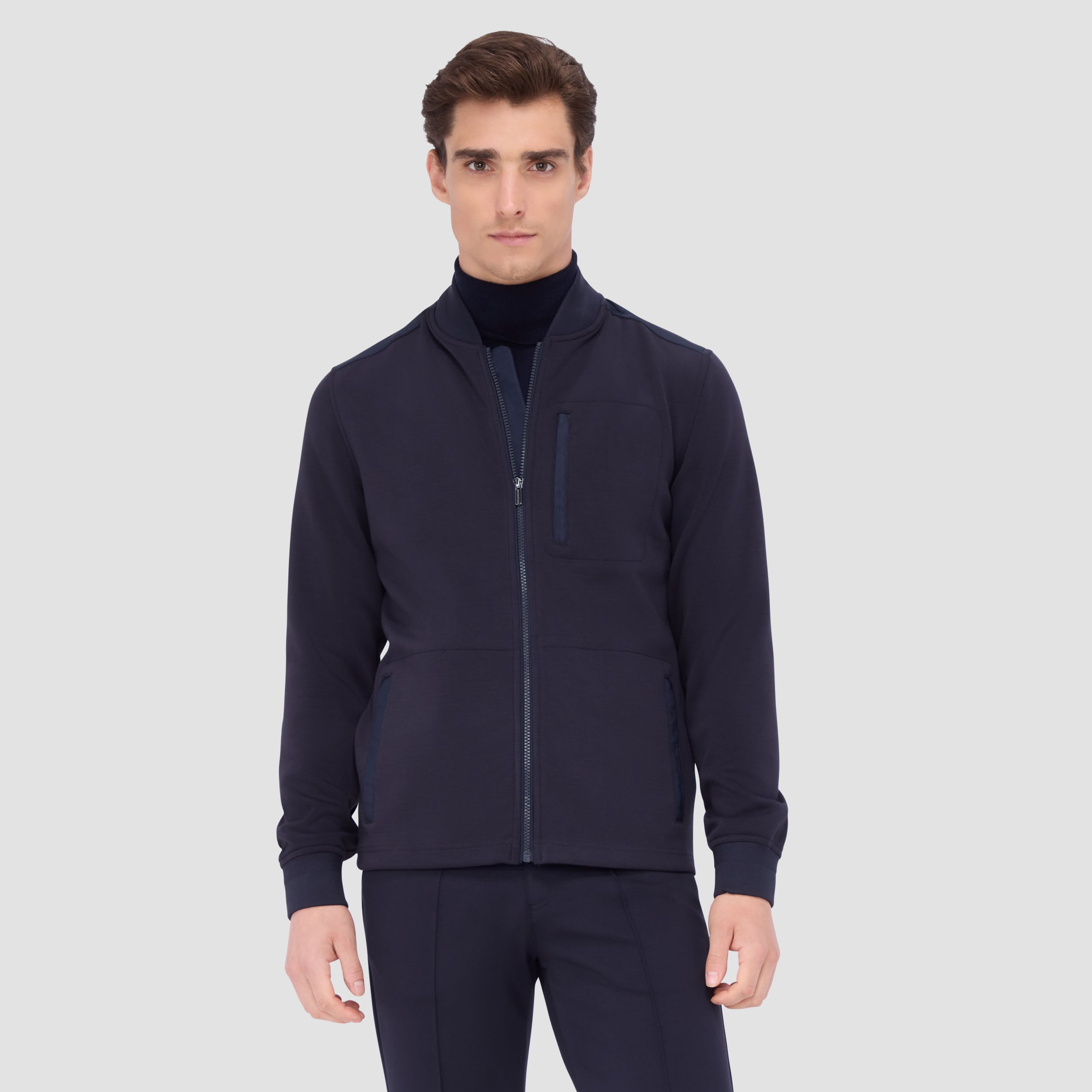 Made from a luxurious soft-touch knit fabric, this zip-up performance jacket offers exceptional comfort and style. It features rib-knit cuffs, a baseball collar, zippered side pockets, a vertical chest pocket and sleek nylon trimming. Combining practicality with modern sophistication, this versatile jacket is a great choice for both casual and activewear.