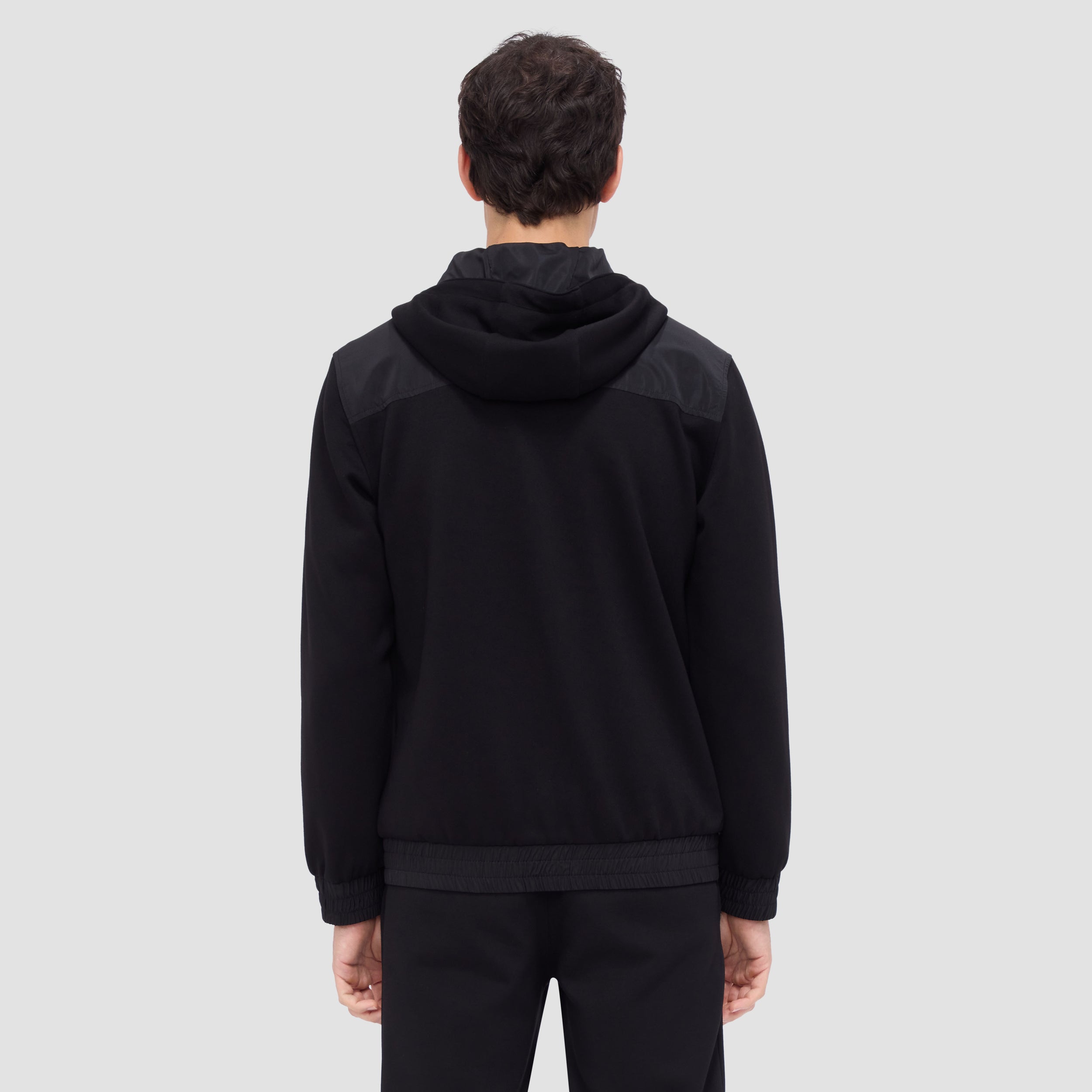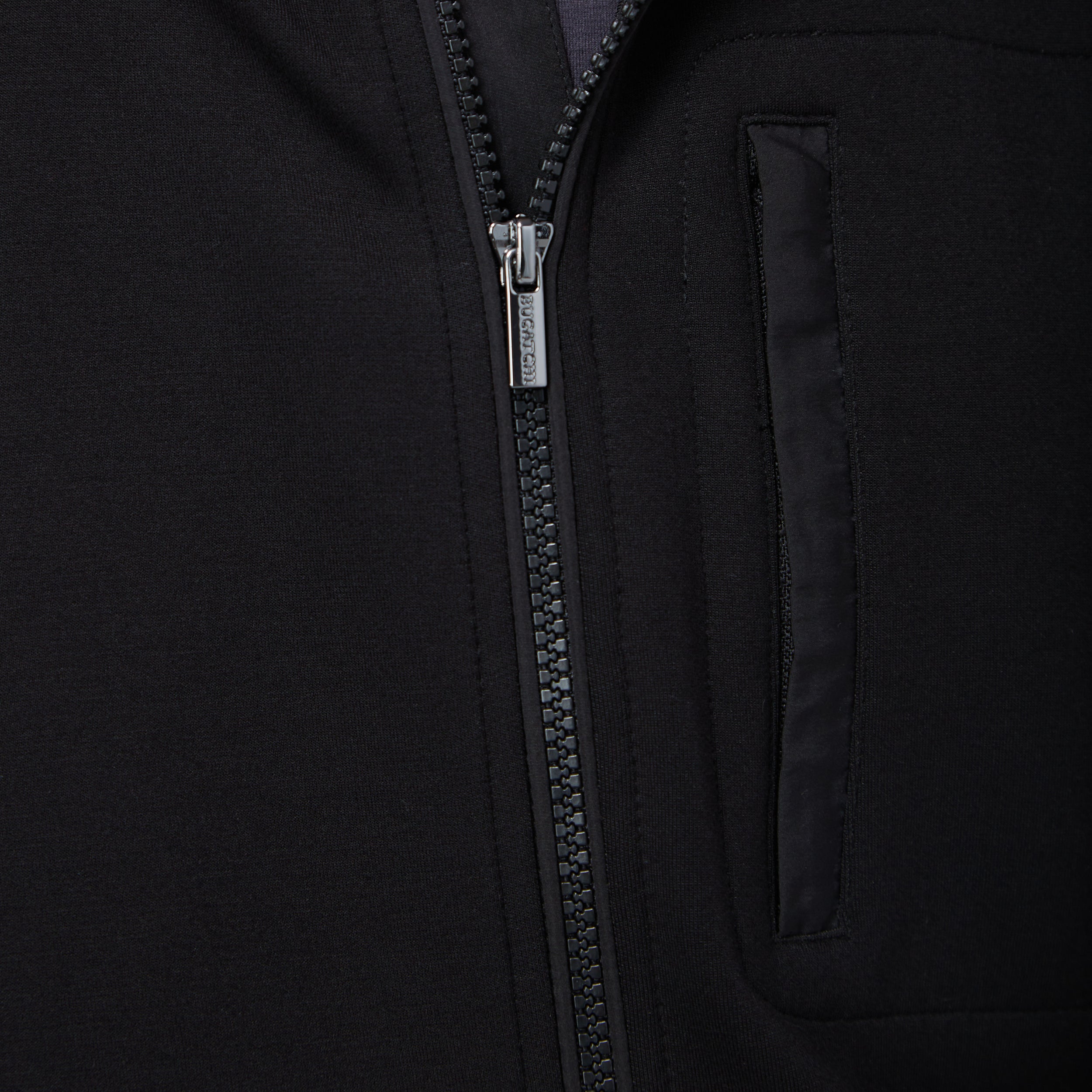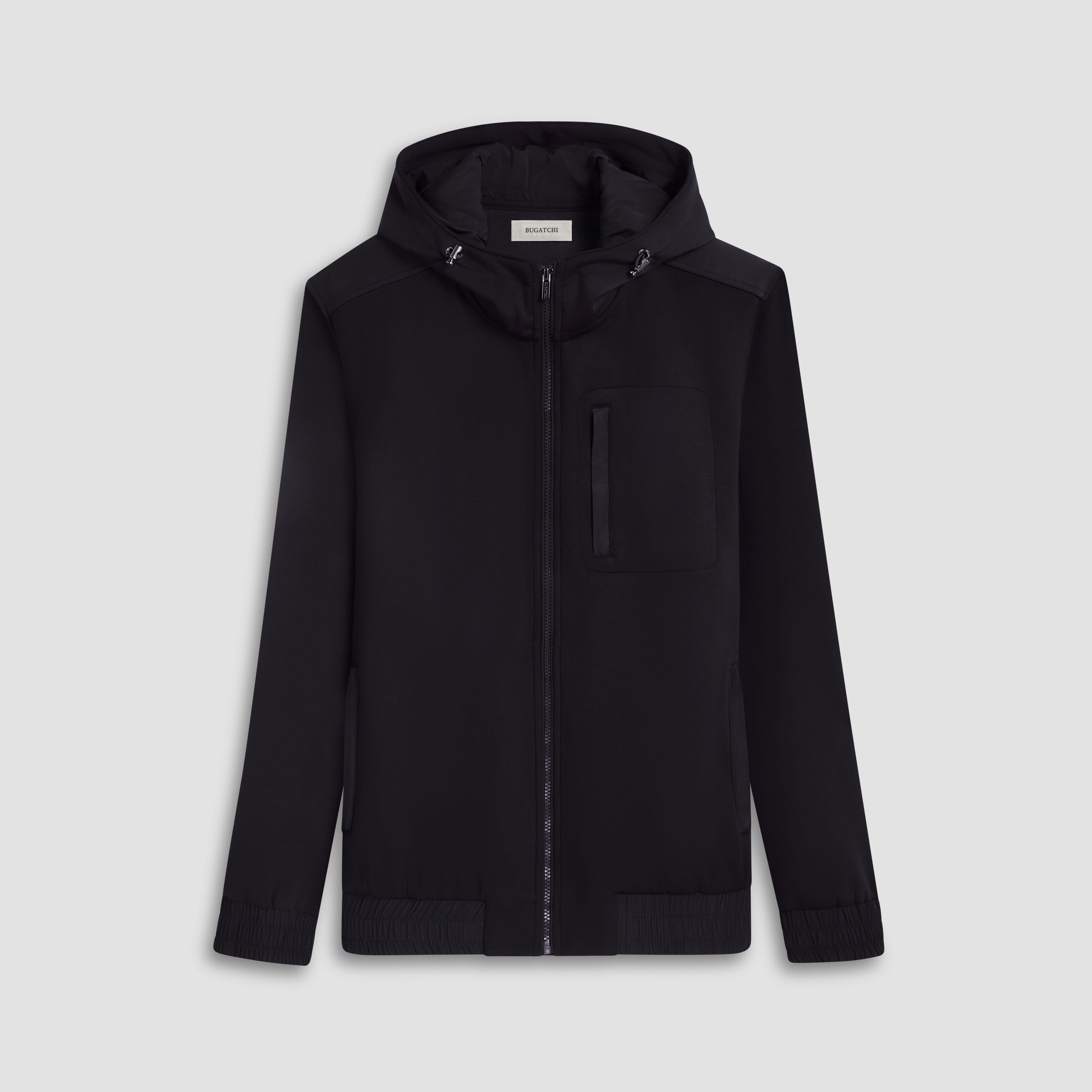 Made from a luxurious soft-touch knit fabric, this zip-up performance jacket offers exceptional comfort and style. It features a funnel neck with adjustable hood, elasticized cuffs and waist, zippered side pockets, a vertical chest pocket and sleek nylon trimming. Combining practicality with modern sophistication, this versatile jacket is a great choice for both casual and activewear.