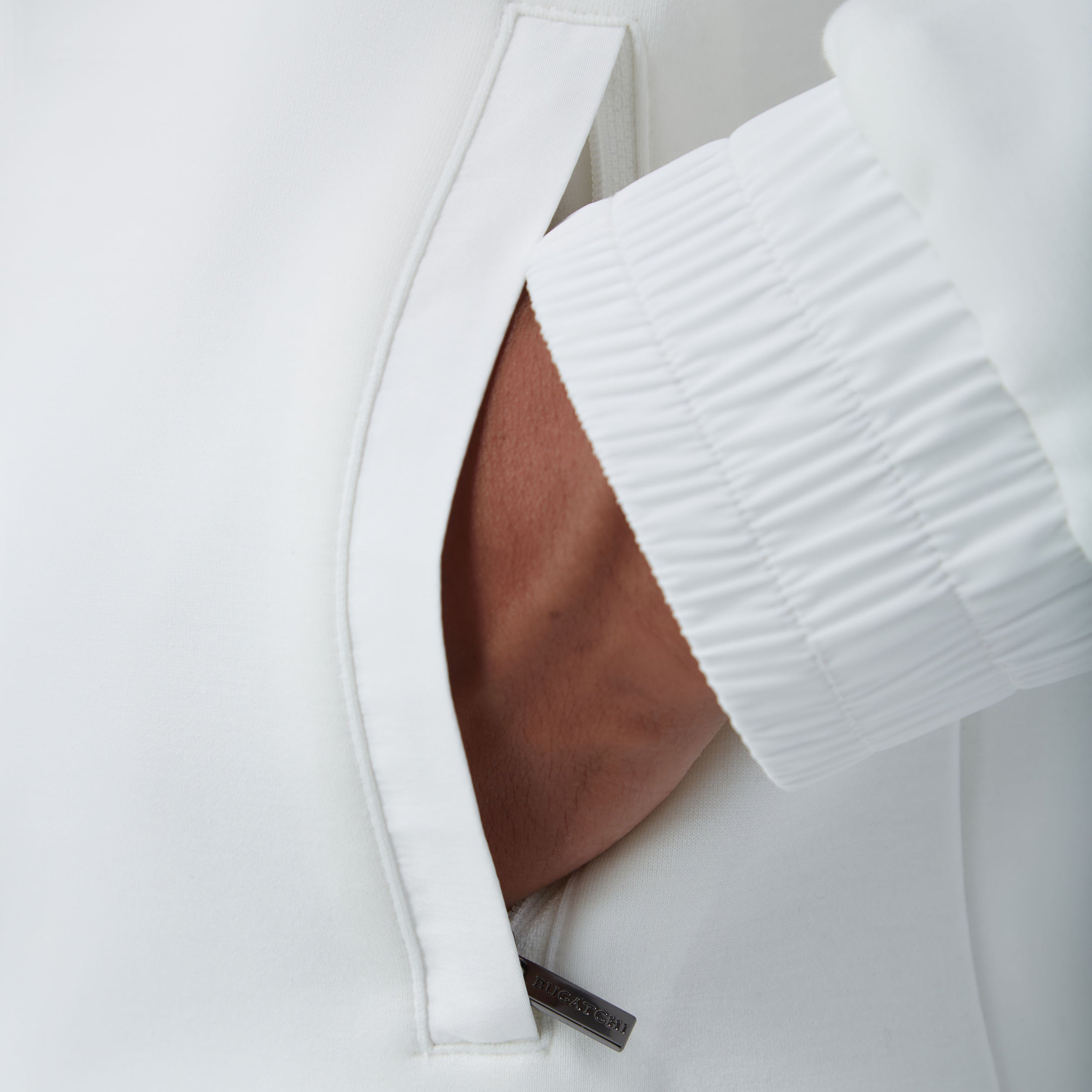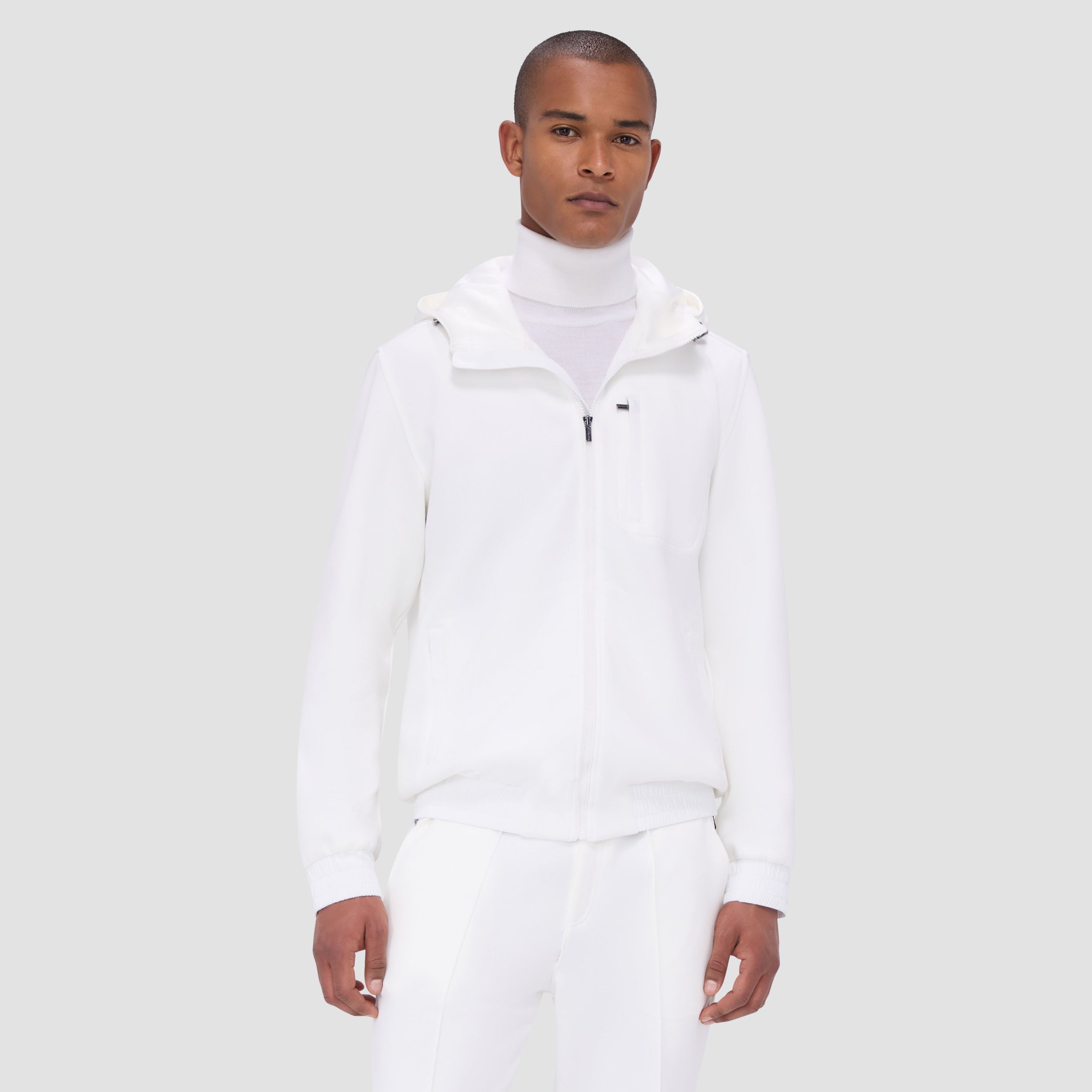Made from a luxurious soft-touch knit fabric, this zip-up performance jacket offers exceptional comfort and style. It features a funnel neck with adjustable hood, elasticized cuffs and waist, zippered side pockets, a vertical chest pocket and sleek nylon trimming. Combining practicality with modern sophistication, this versatile jacket is a great choice for both casual and activewear.