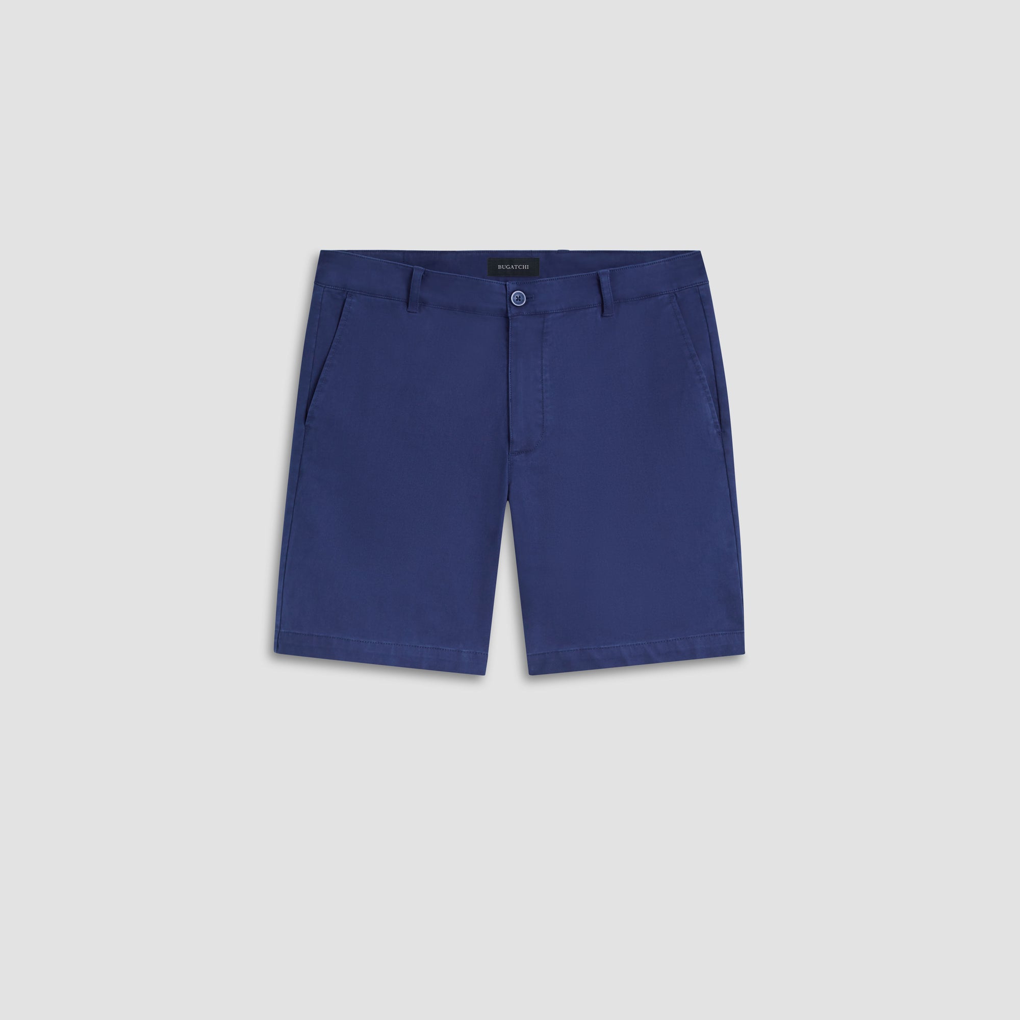 Solid Bermuda shorts, crafted from soft cotton blend with added stretch feature a looped waistband, a zipper fly and button closure, side pockets and two rear pockets with buttons.