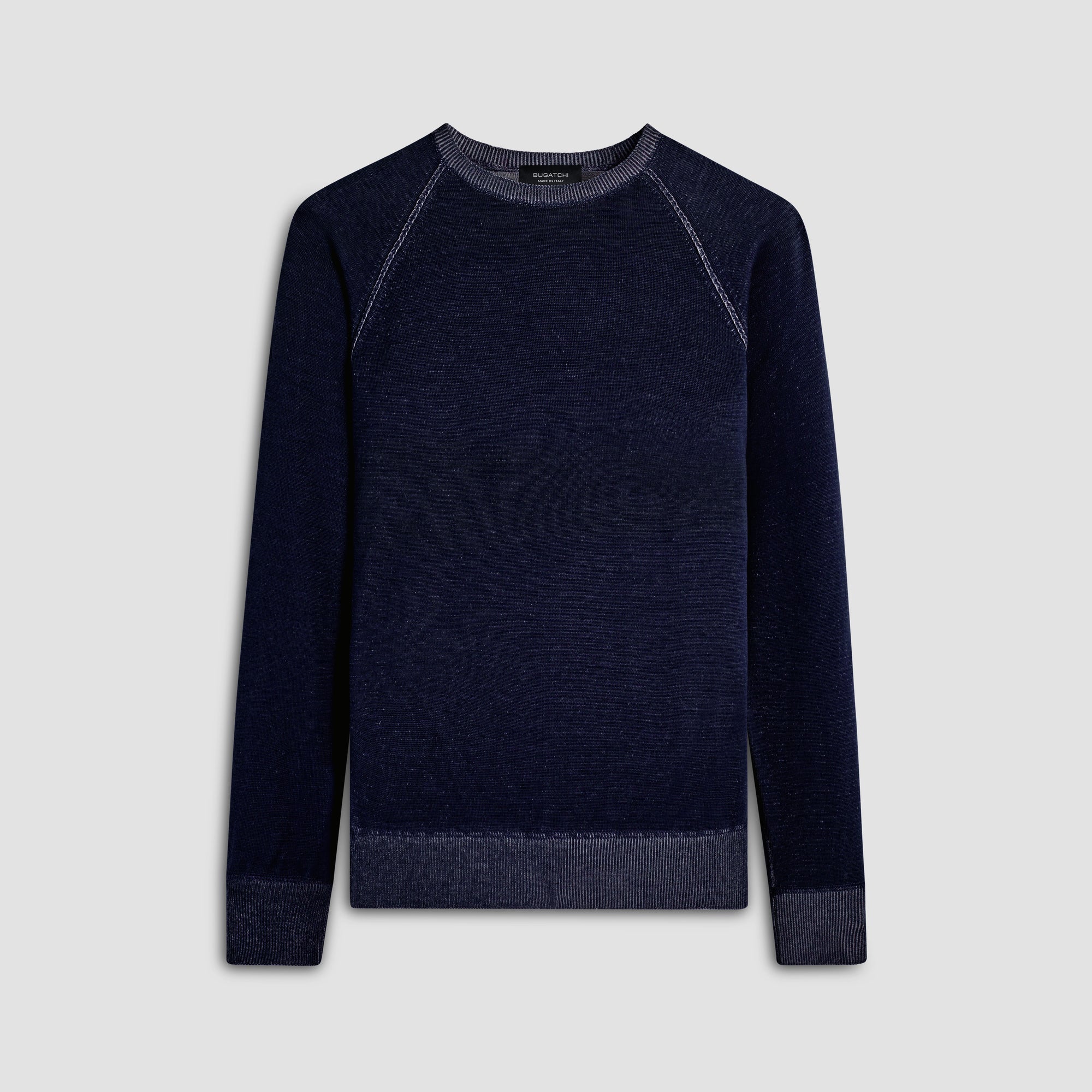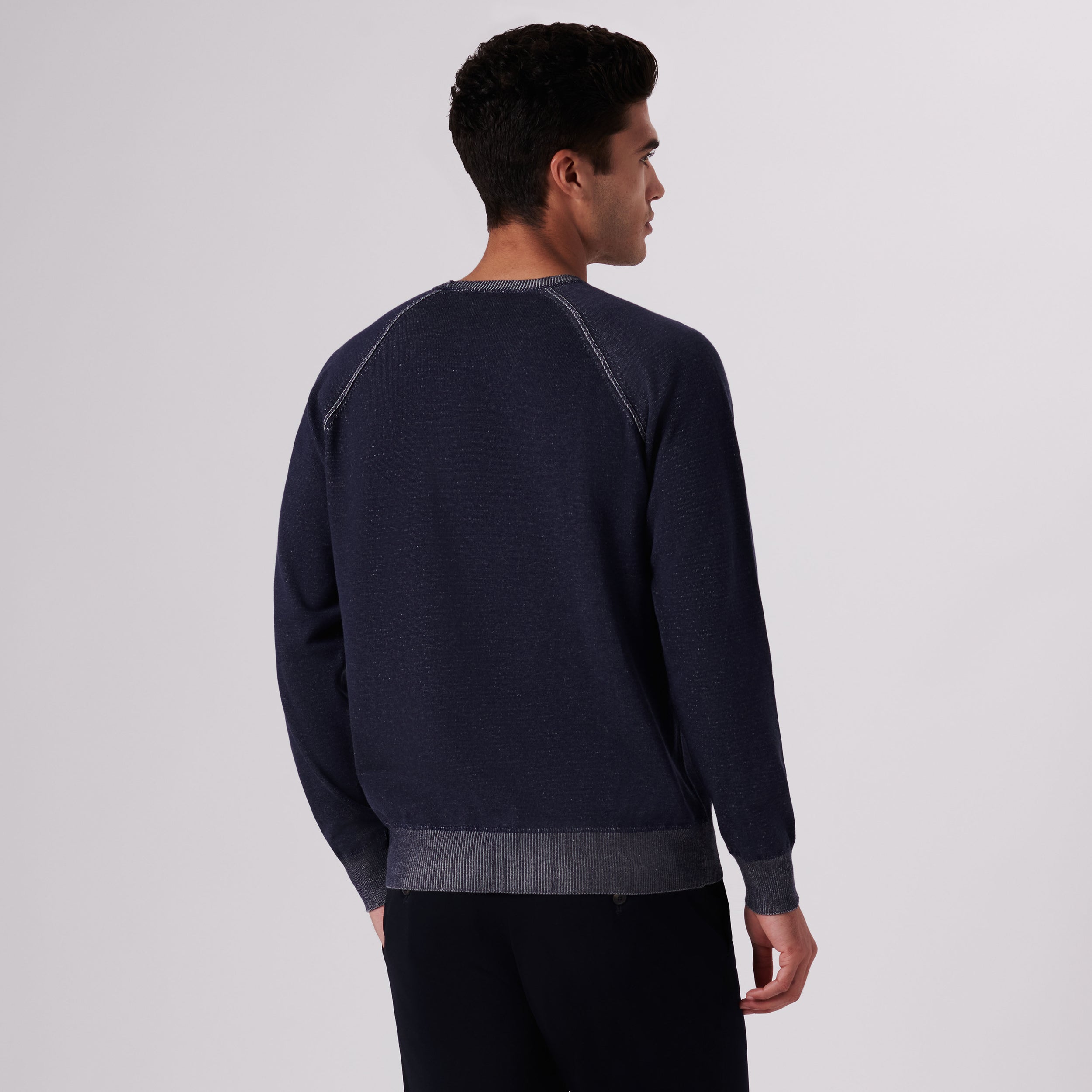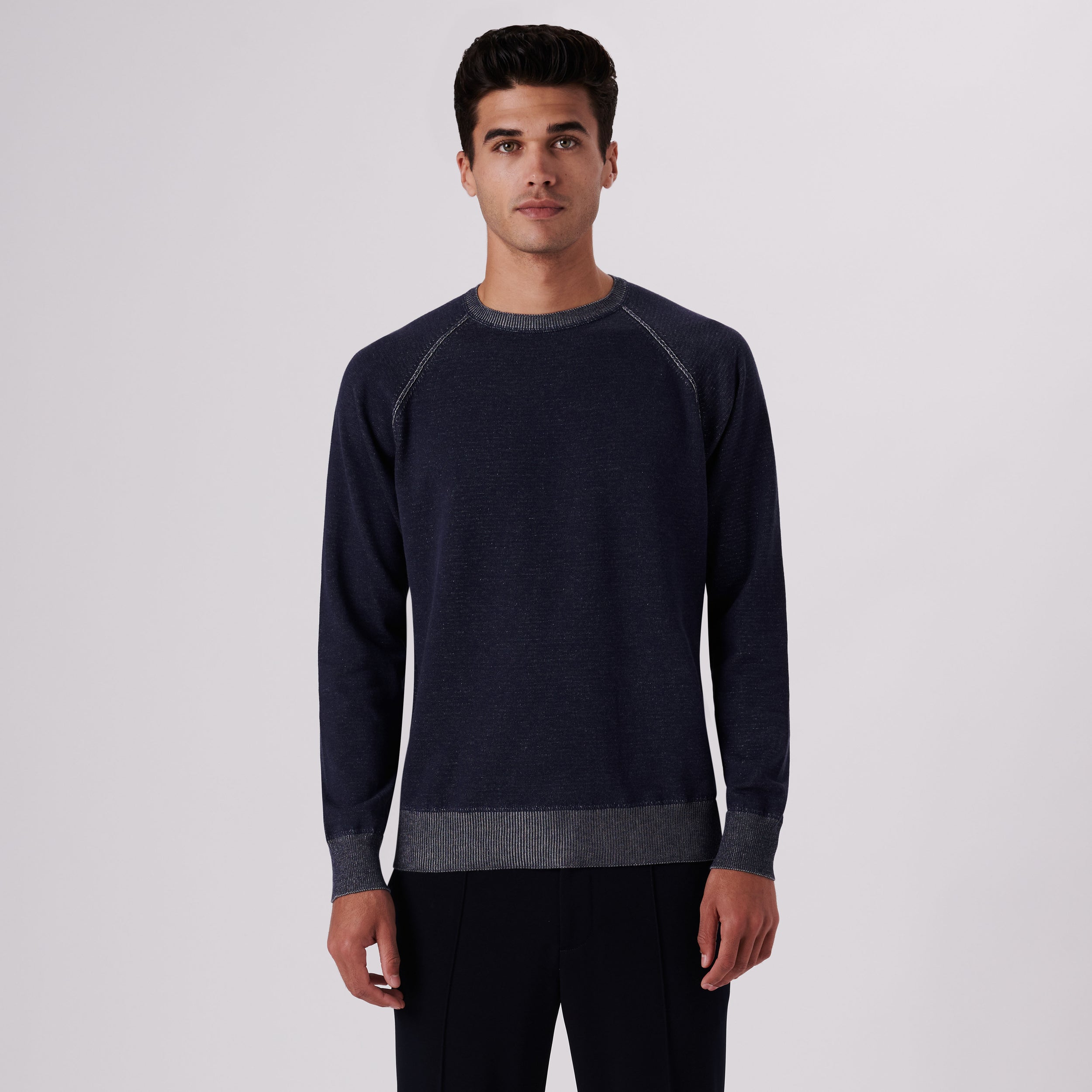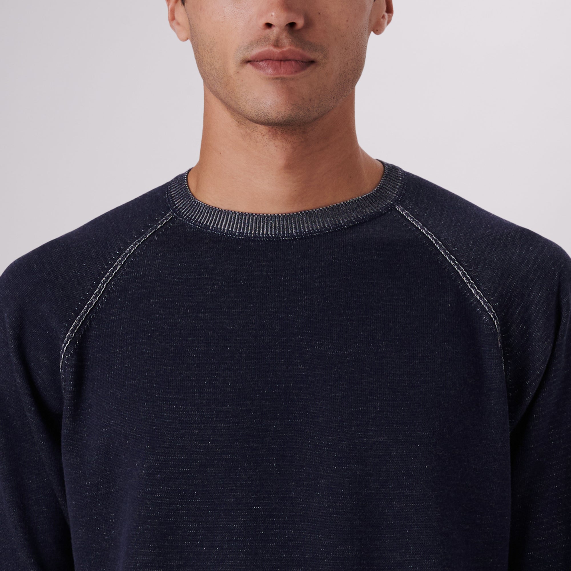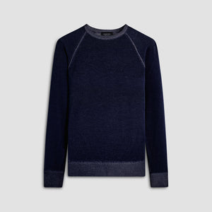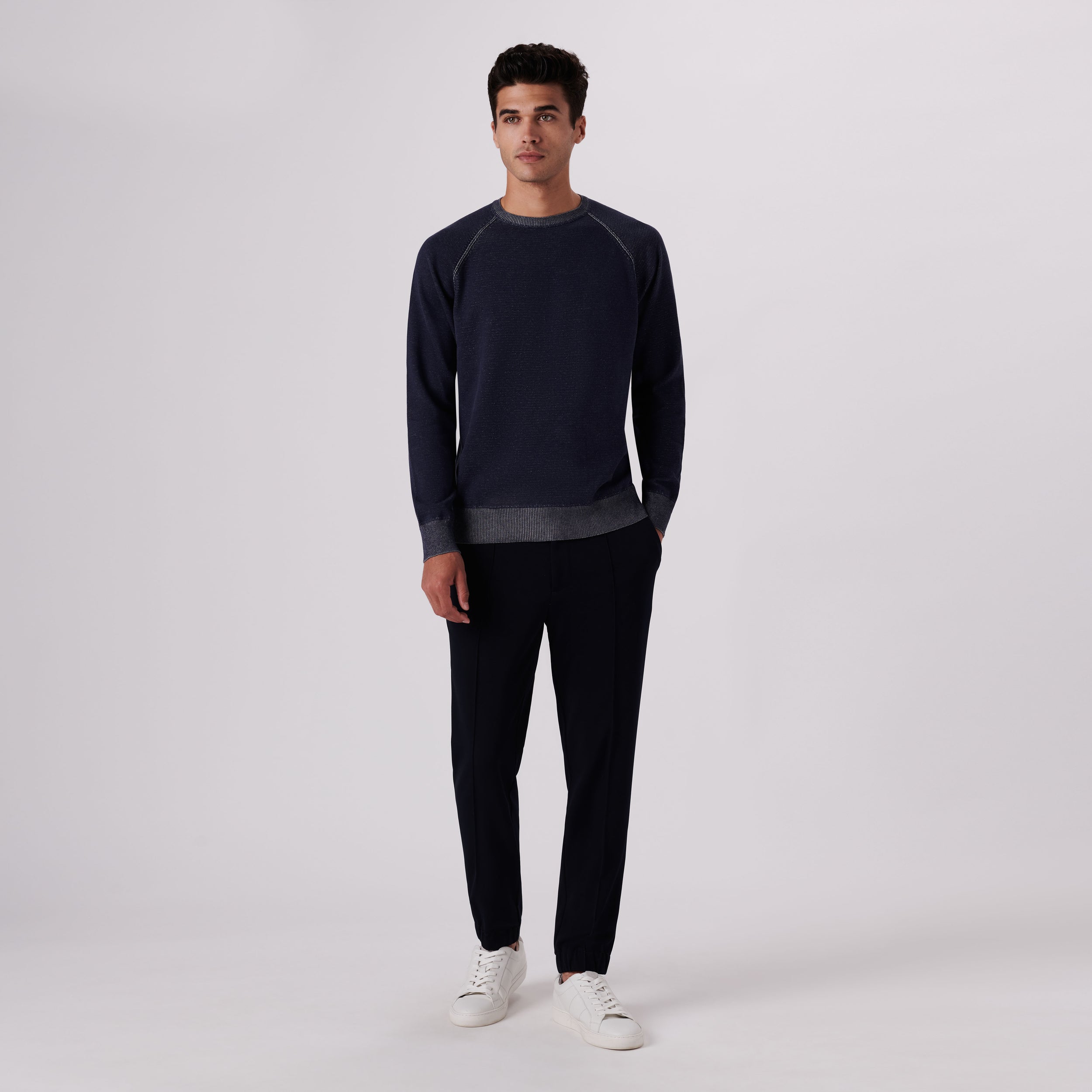 Solid long-sleeved crew neck sweater in 100% cotton with contrast rib knit collar, cuffs and waistband. Made in Italy.