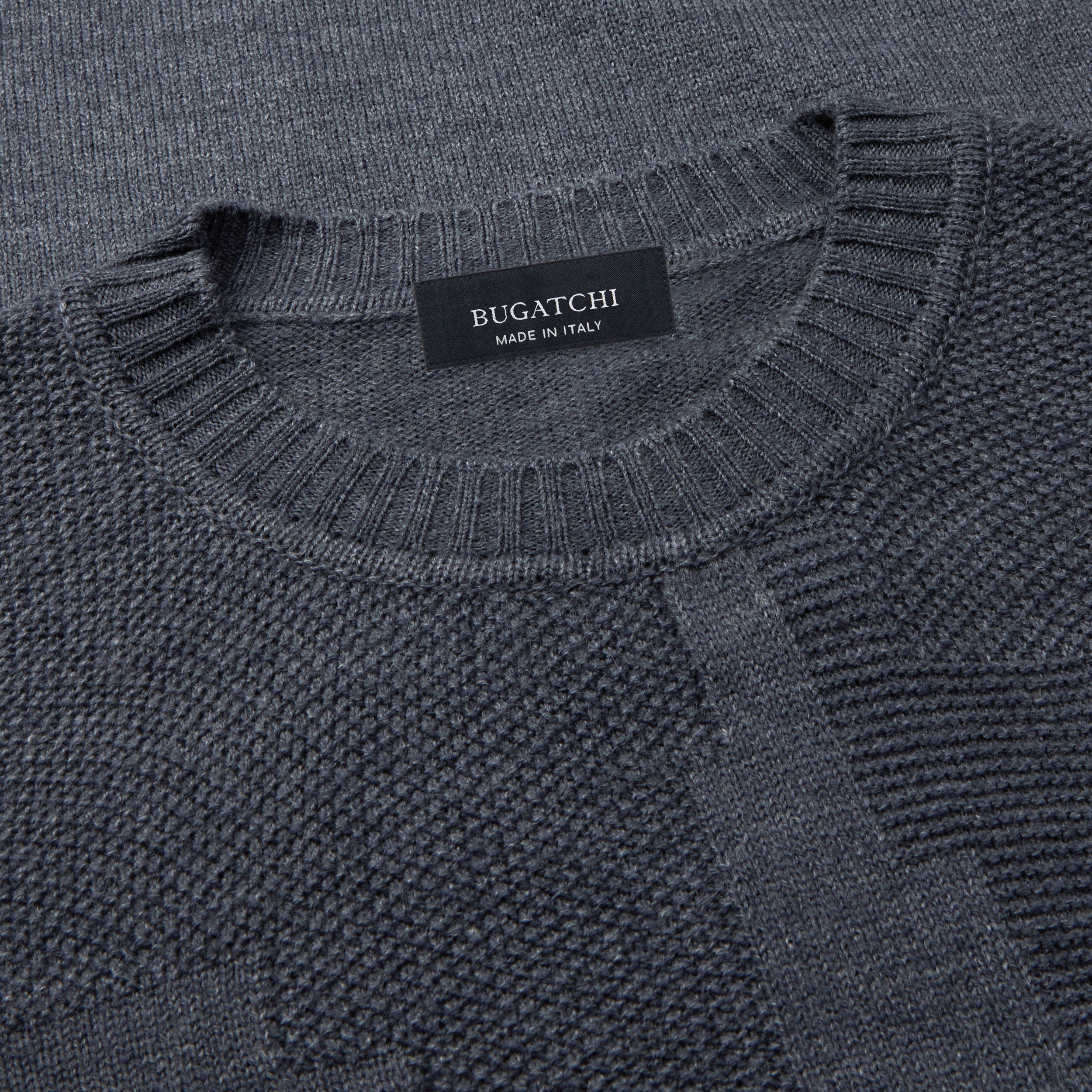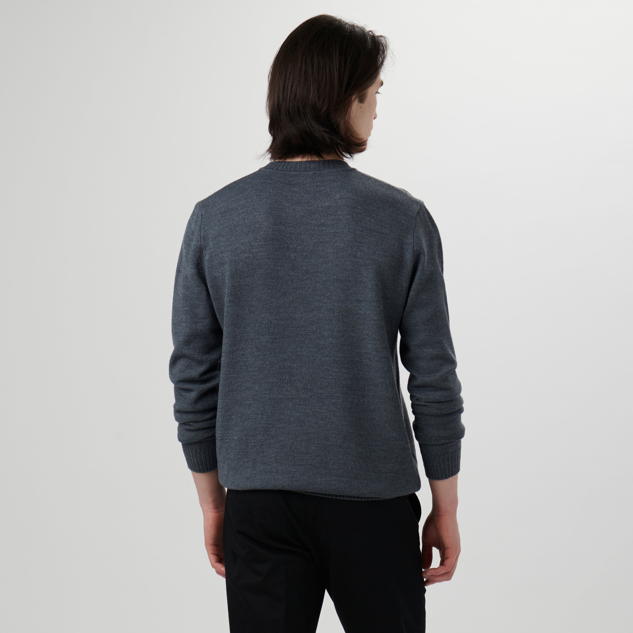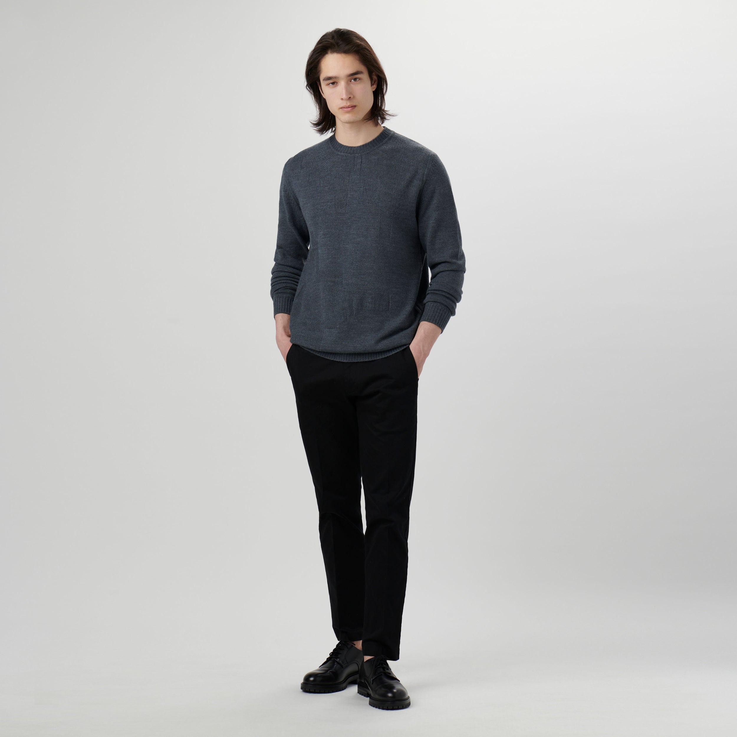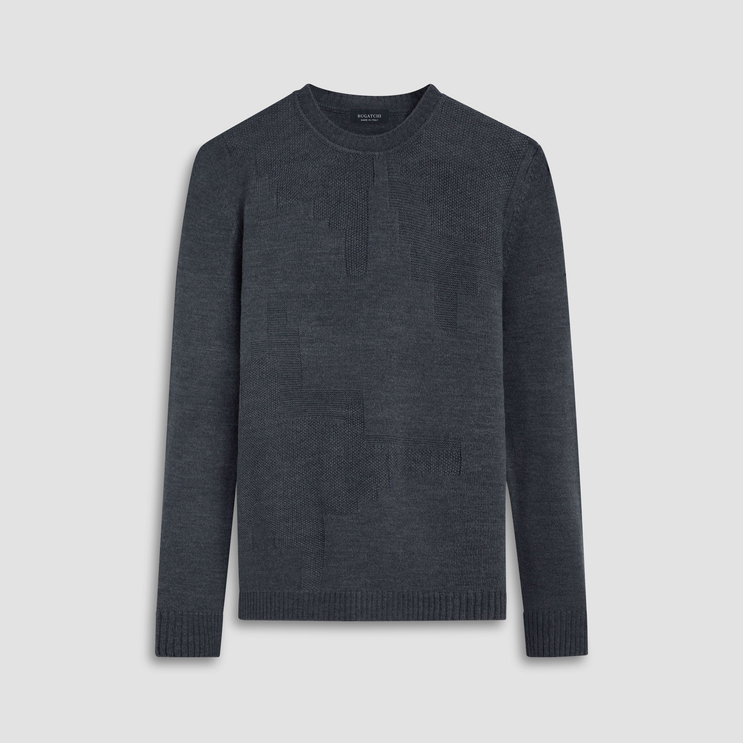 Solid jacquard crew neck sweater in wool blend with rib knit collar, sleeve cuffs and waistband. Made in Italy.