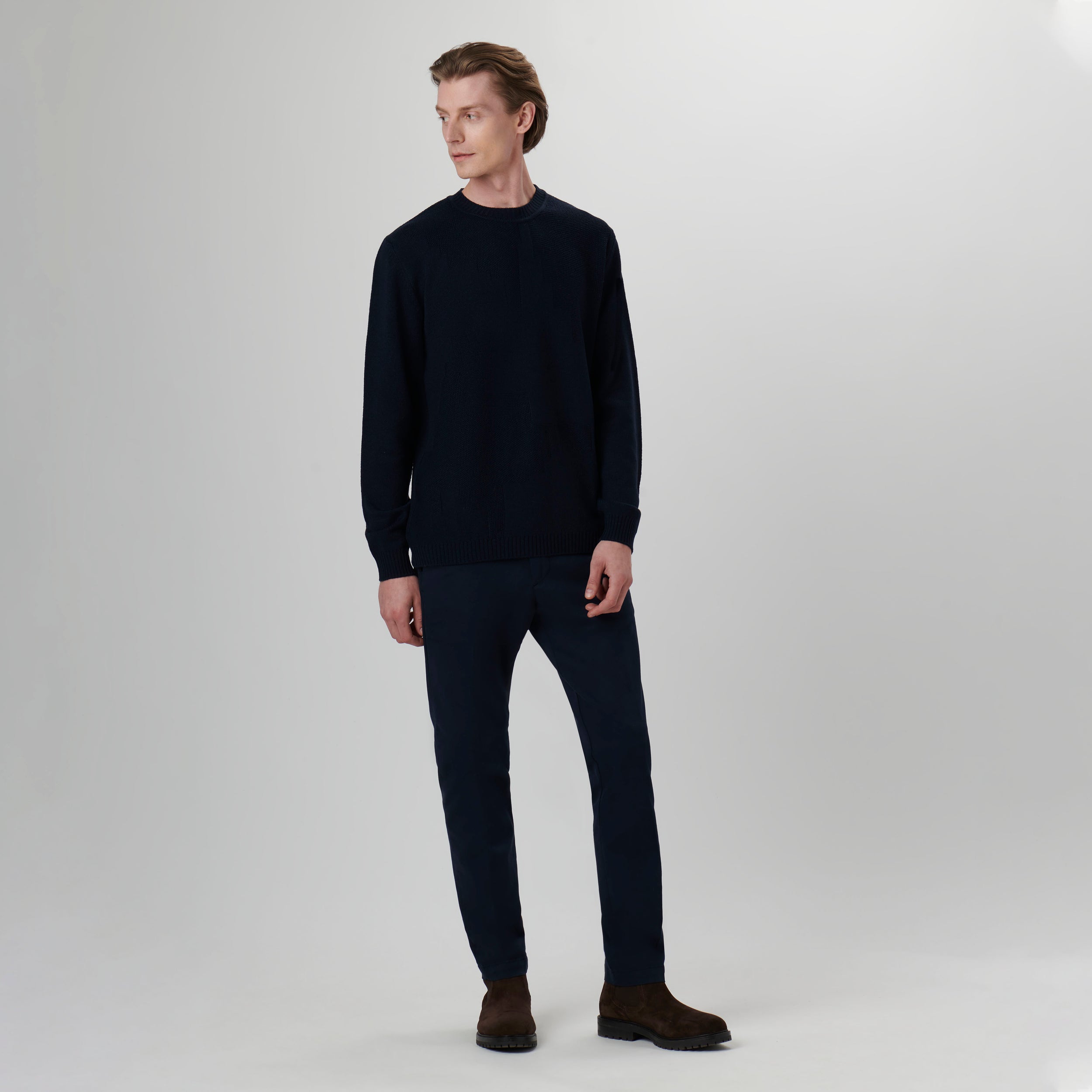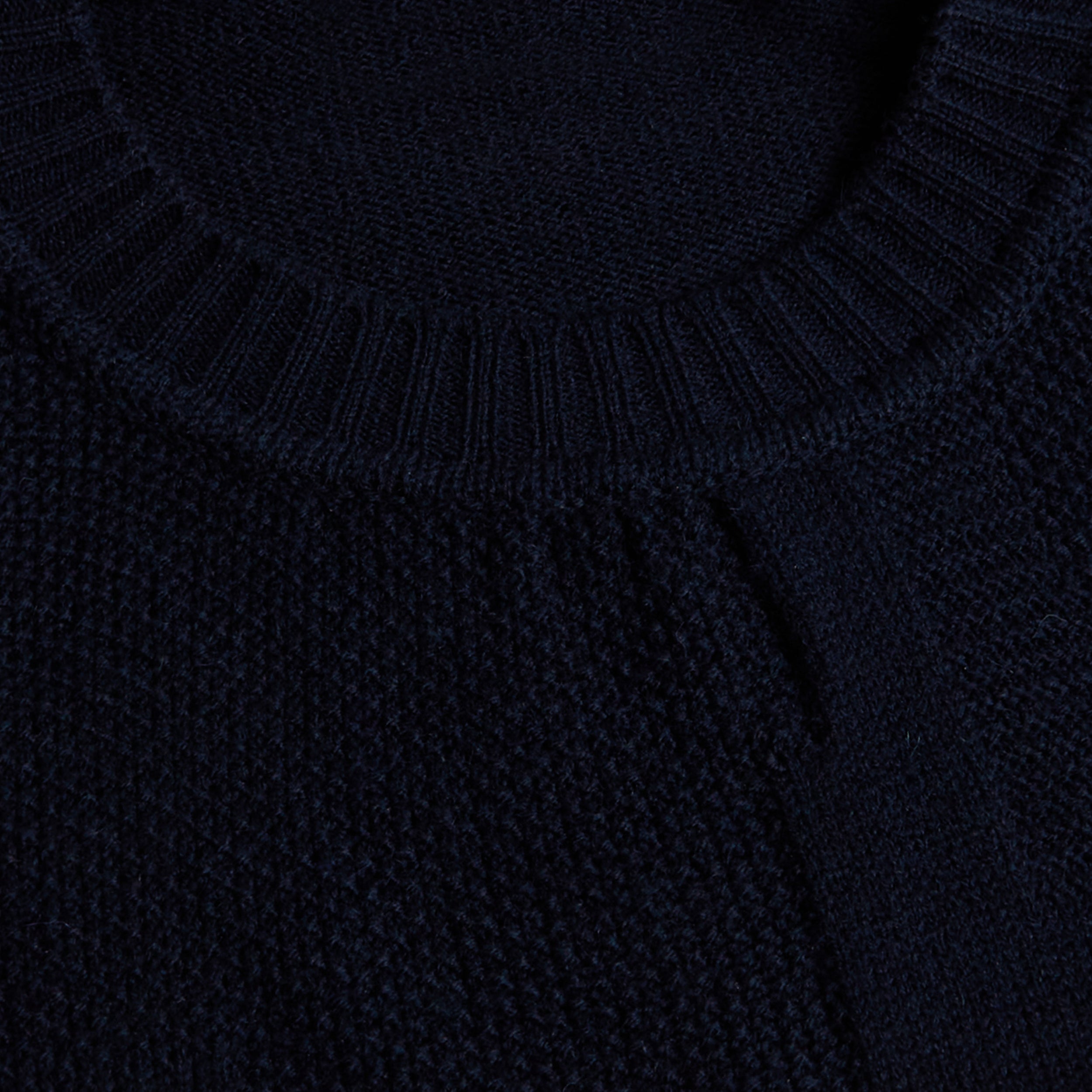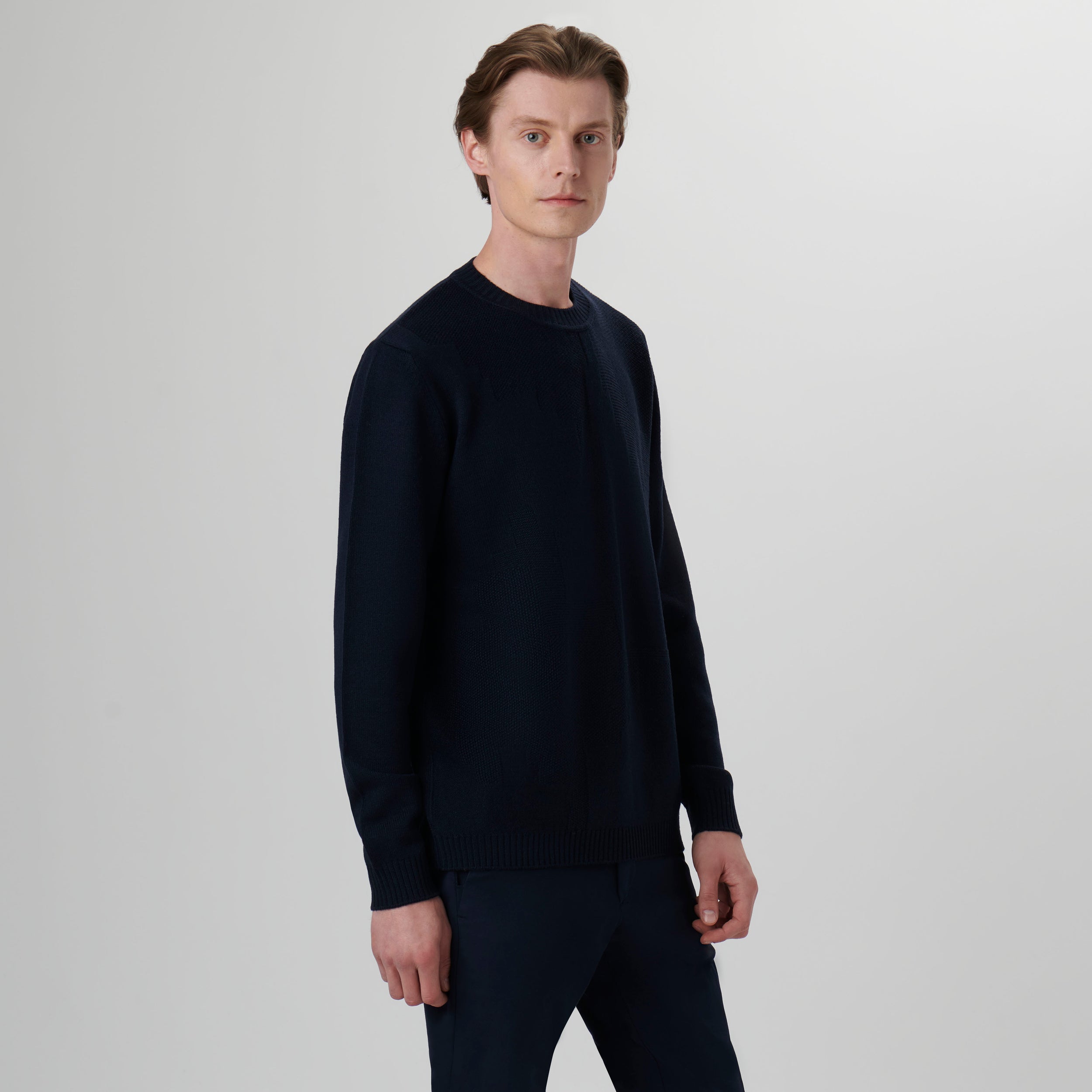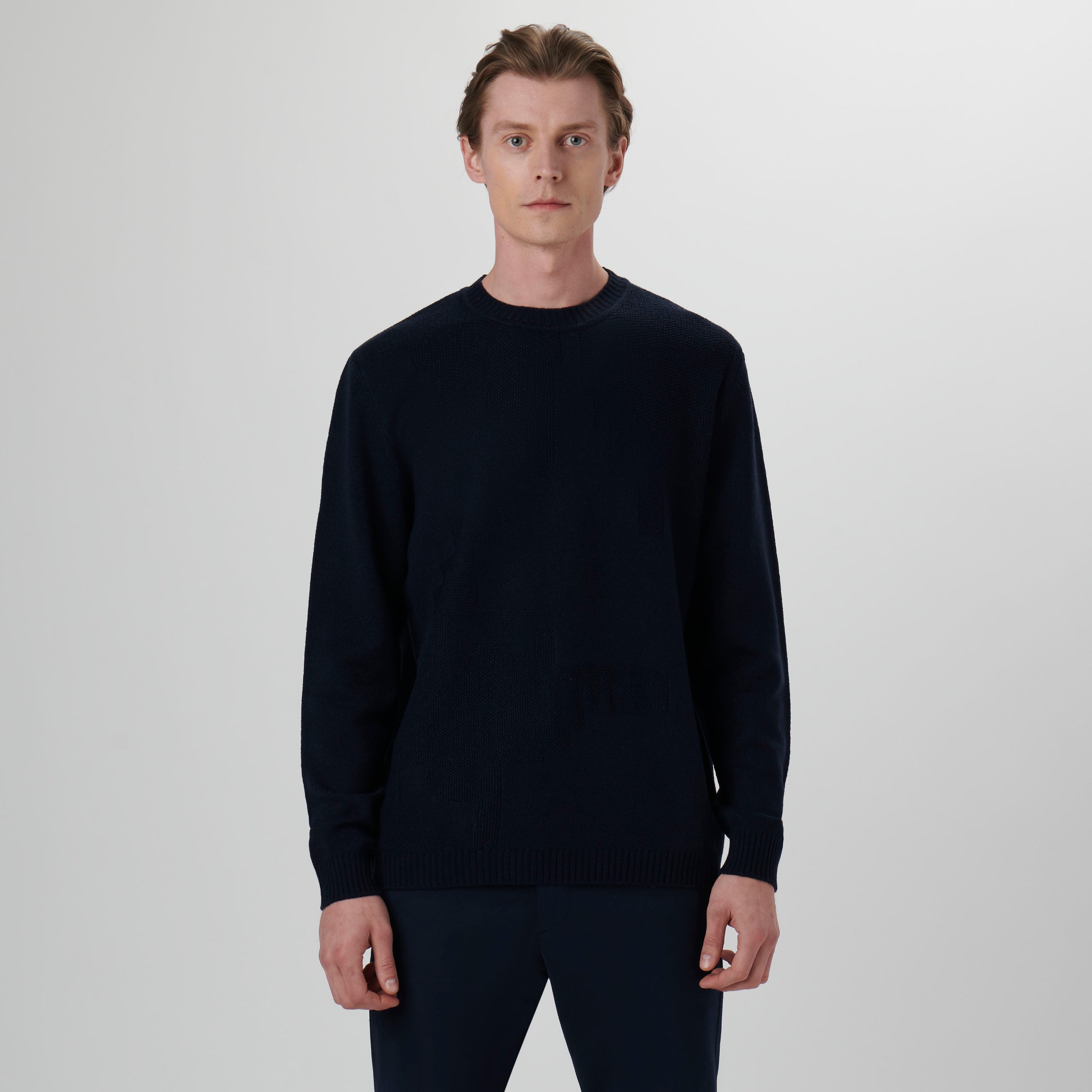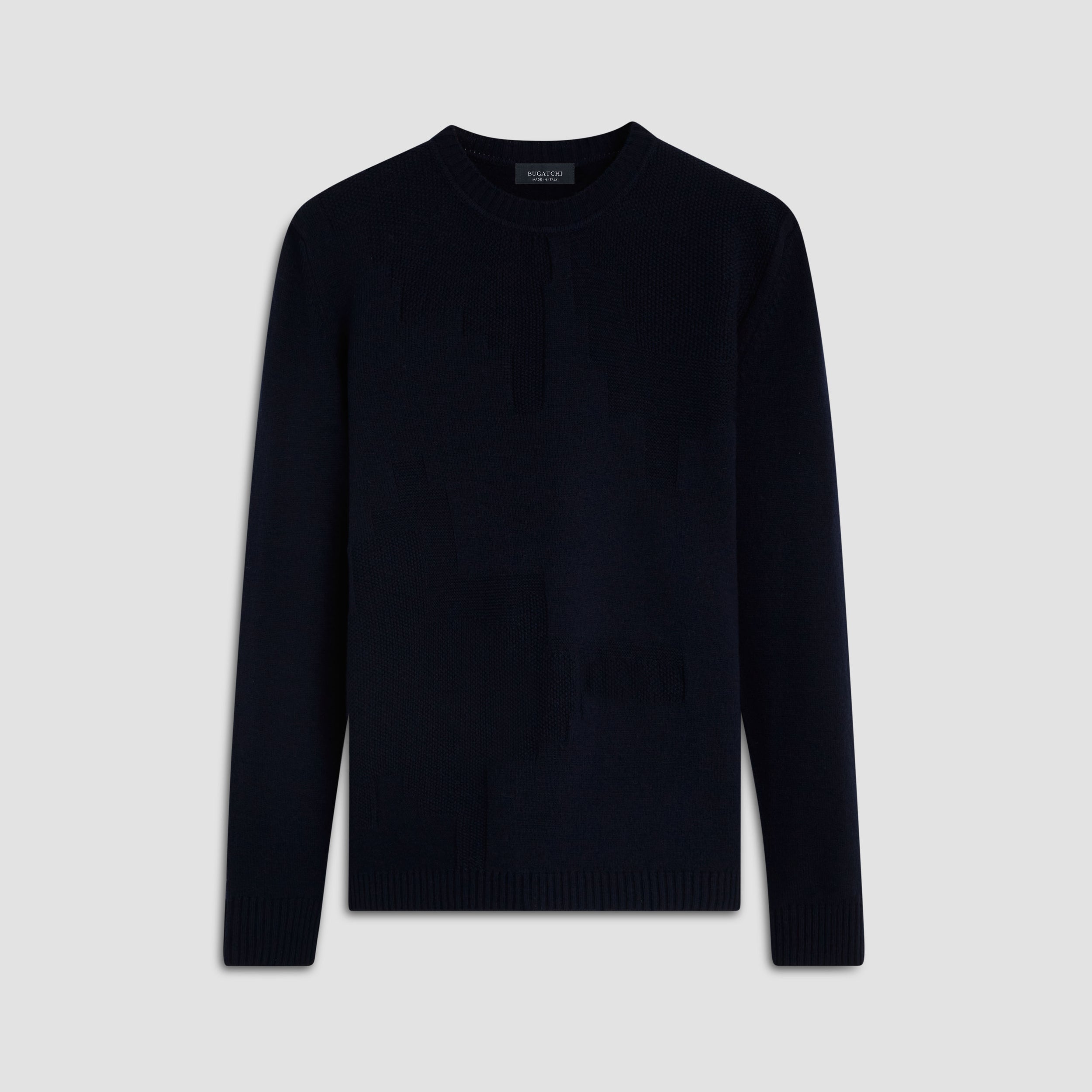 Solid jacquard crew neck sweater in wool blend with rib knit collar, sleeve cuffs and waistband. Made in Italy.