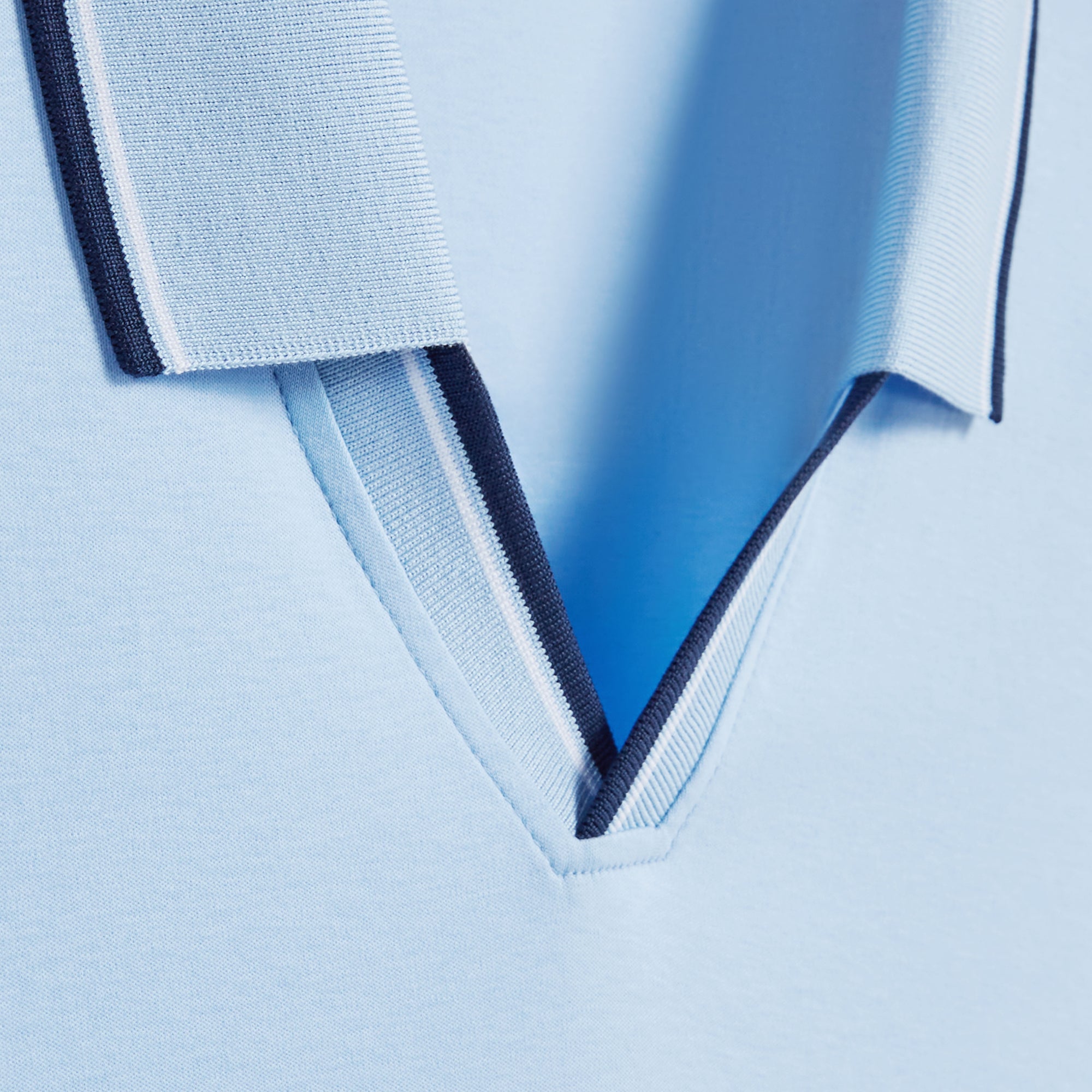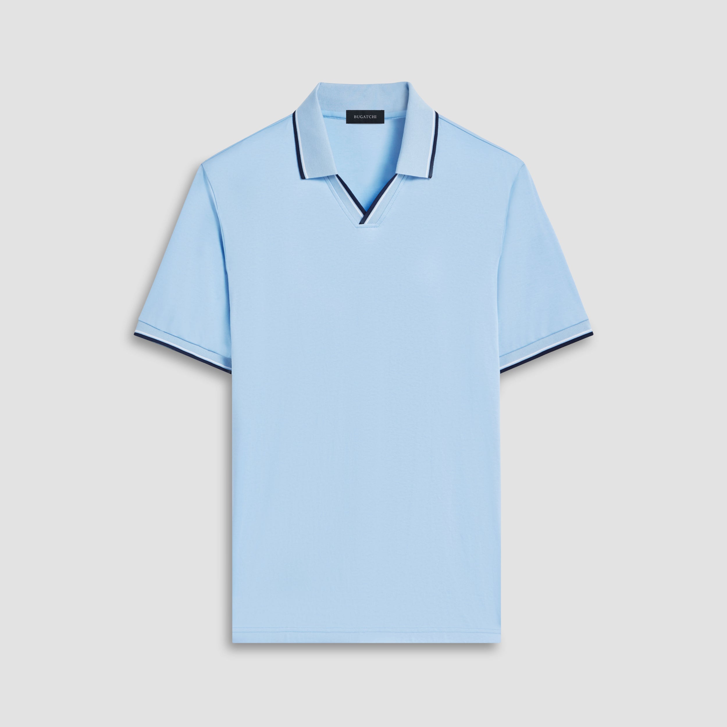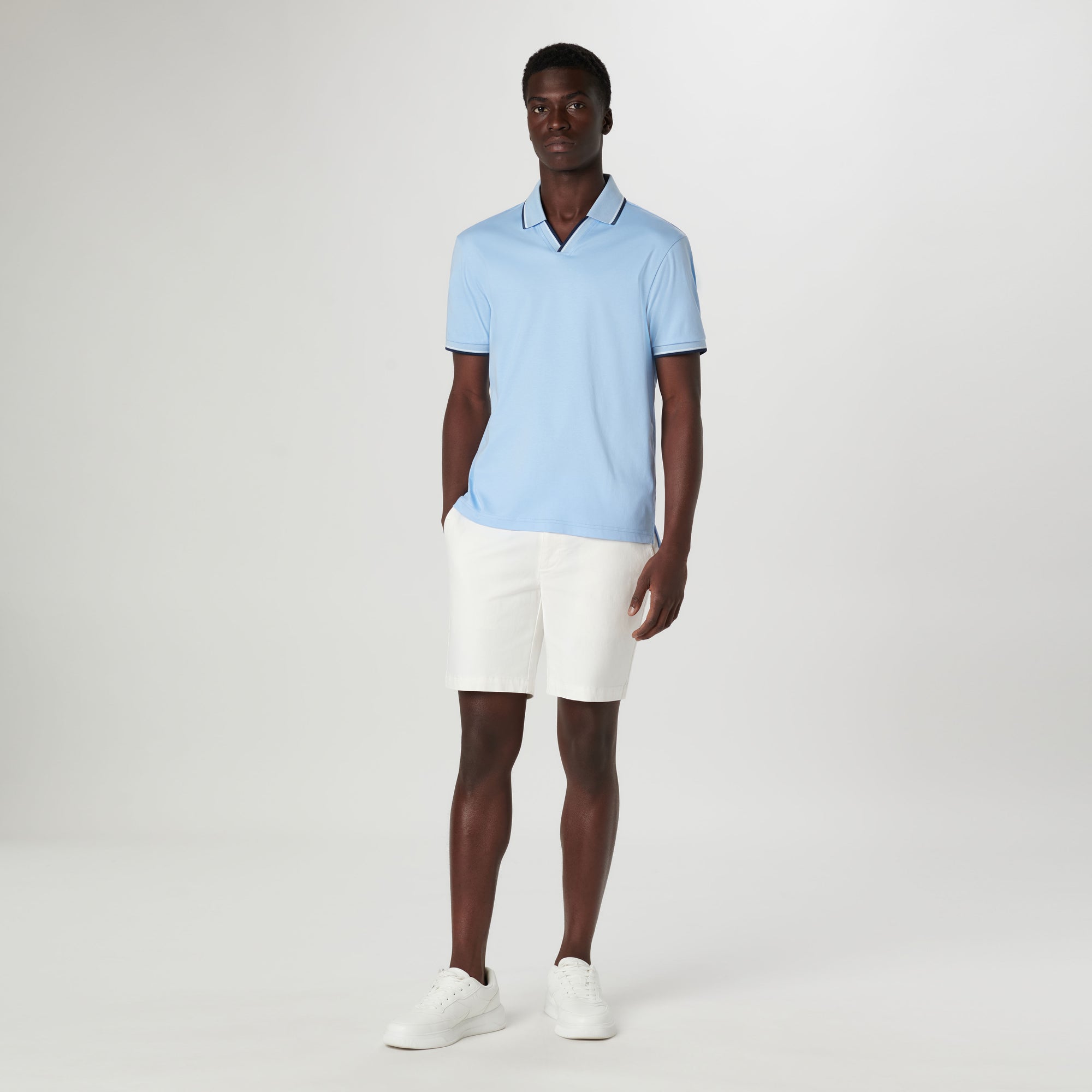 This short-sleeved polo shirt in 100% Pima cotton features rib knit Johnny collar and double contrast tipping detail. Pima cotton is known for its luxurious softness and durability and this shirt is the fusion of one the finest materials with thoughtful detailing.