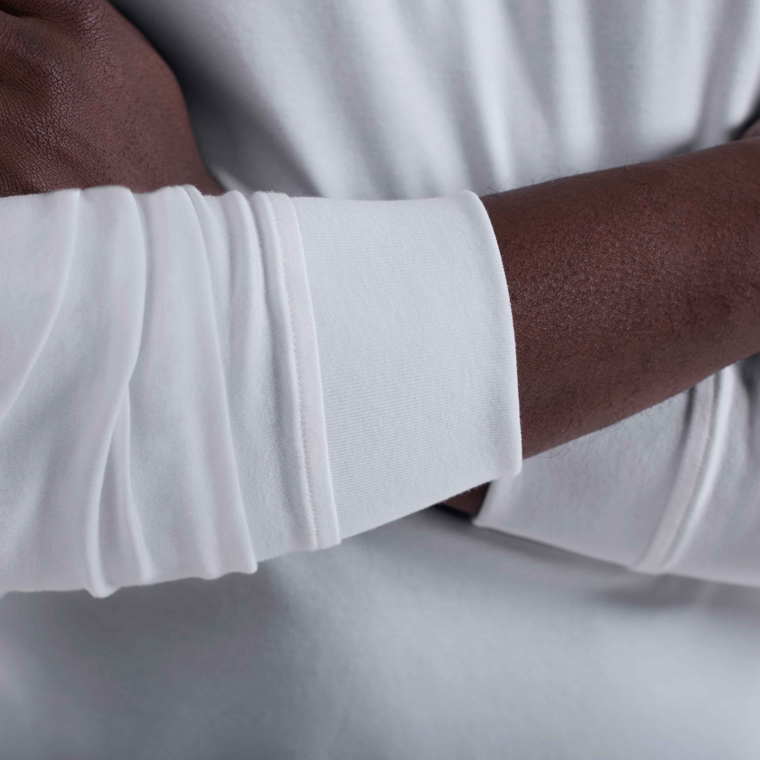 Crafted from 100% Pima cotton, this long sleeve tee features a ribbed mock neck and ribbed cuffs for subtle structure and a refined finish. The smooth, lightweight fabric offers exceptional softness, while side vents provide added ease and comfort. A versatile piece for elevated casual wear.