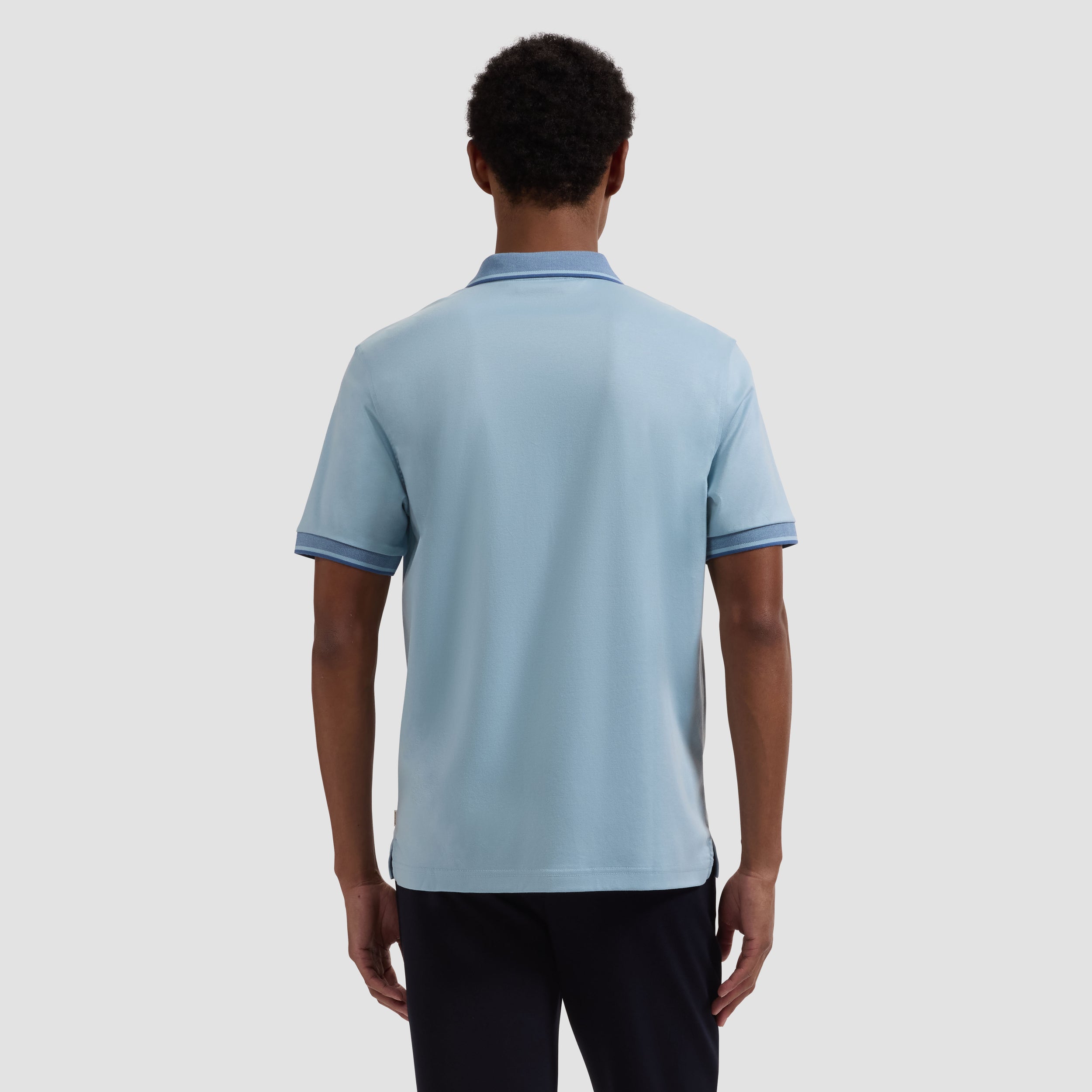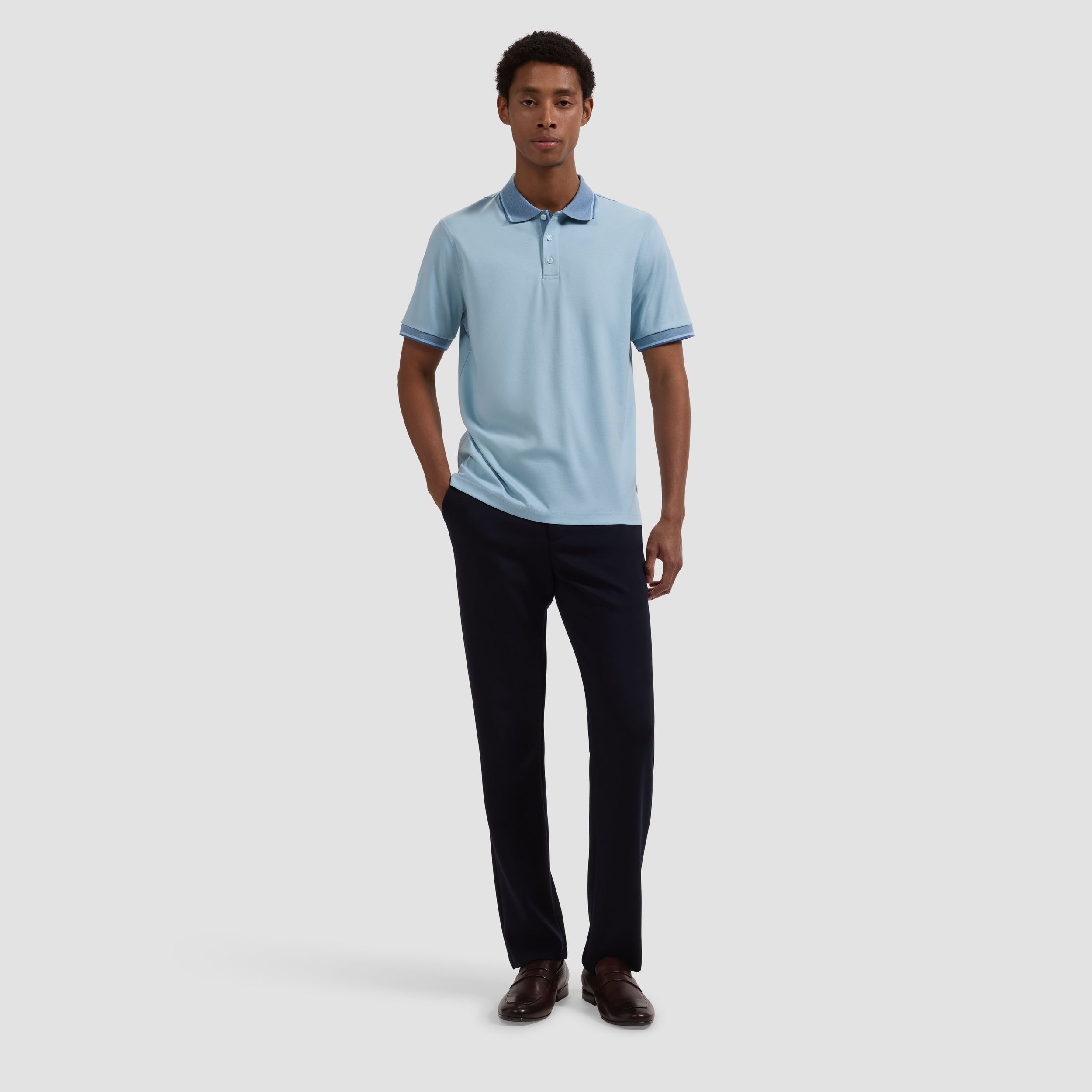 A refined essential crafted from 100% Pima cotton, this three-button polo is designed with a bird's eye rib collar, bottom placket and cuffs accented by subtle contrast tipping. Finished with genuine mother-of-pearl buttons and side vents for ease of movement, it blends timeless sophistication with everyday comfort — ideal for polished casual occasions, resort settings, and the golf course.