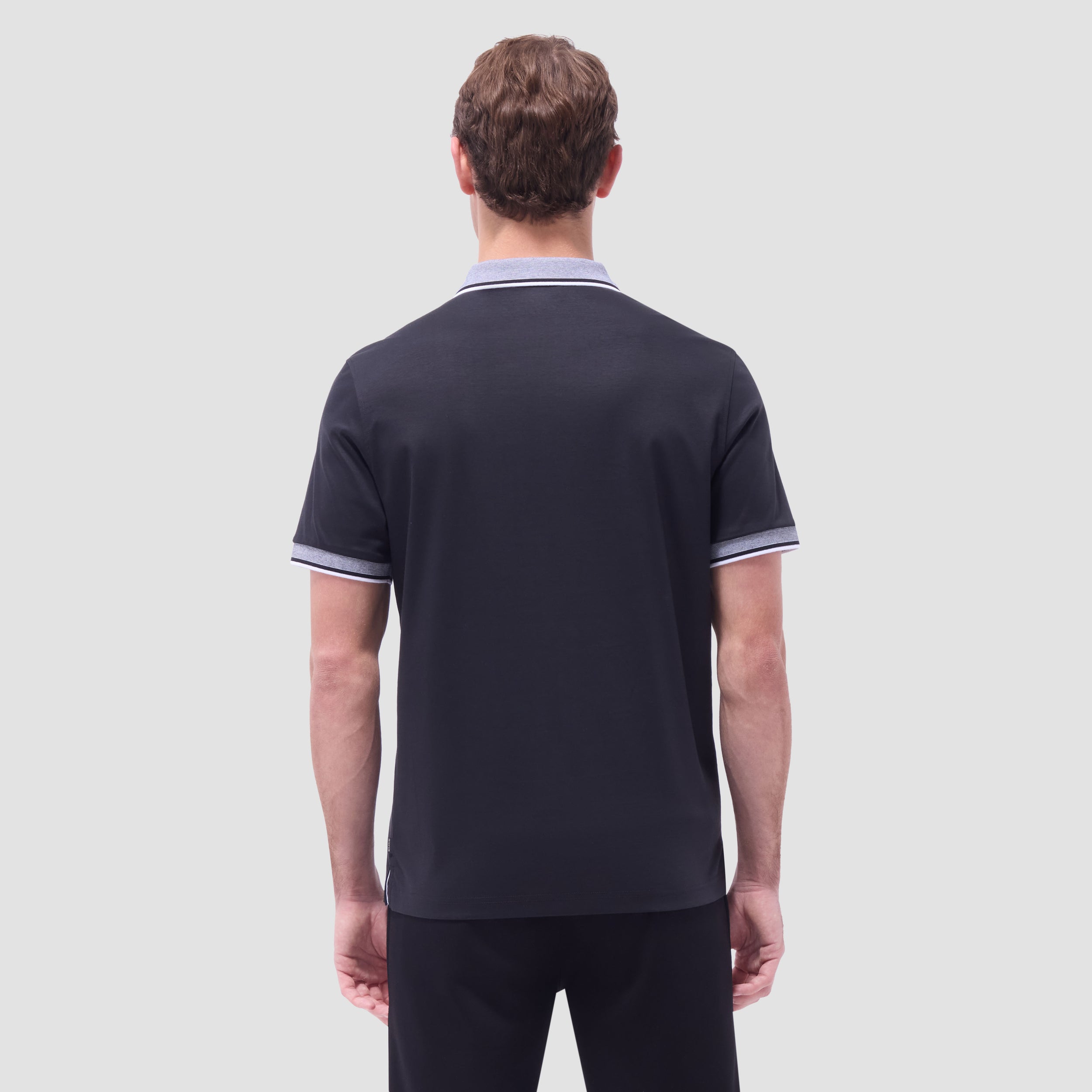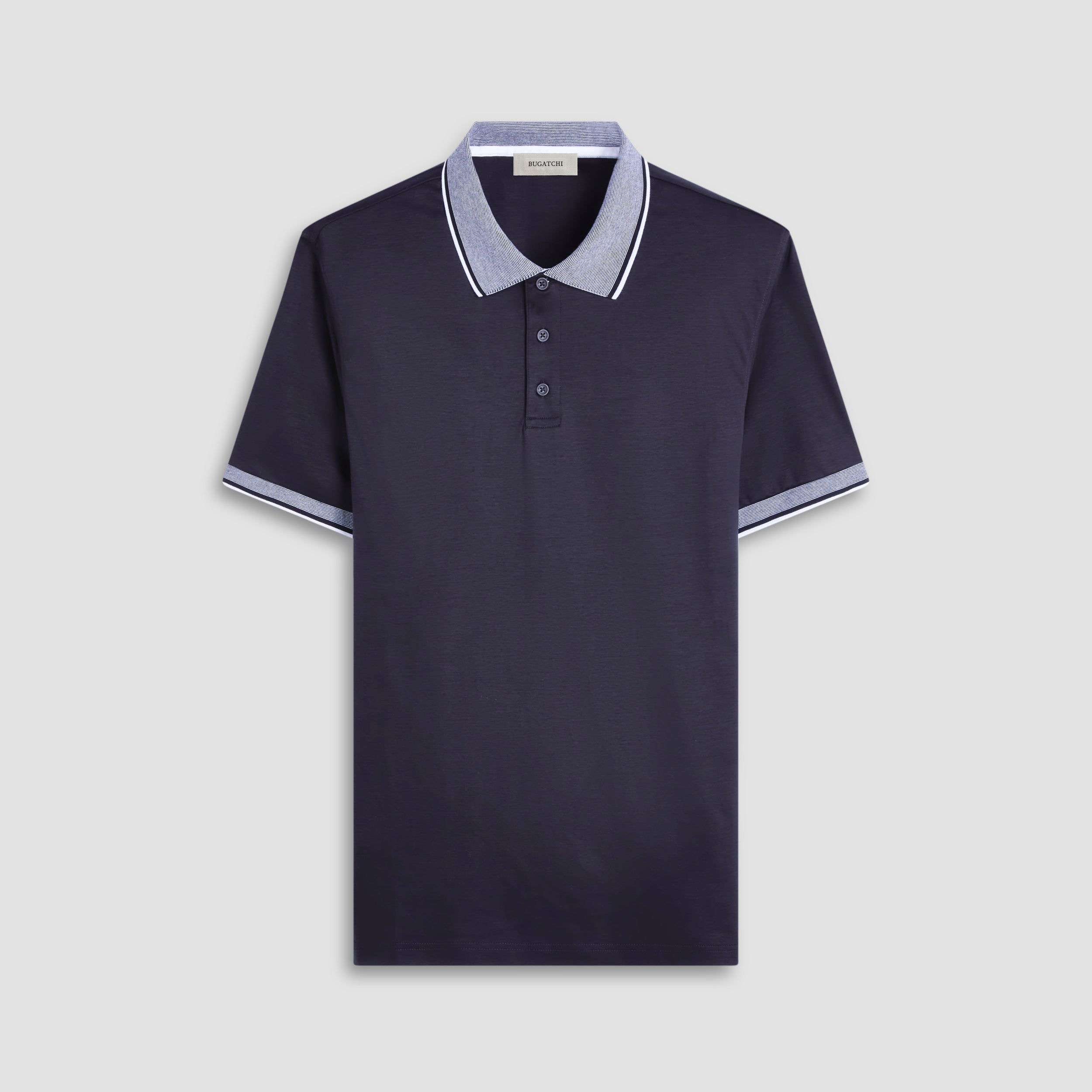 This solid short-sleeve polo shirt, made from 100% Pima cotton, offers an ultra soft, breathable feel. It features a three-button placket, bird's eye rib collar and cuffs with double stripe detail, and mother of pearl buttons. With side vents for comfort and mobility, it is perfect for casual wear or the golf course, combining style and function in a versatile design.