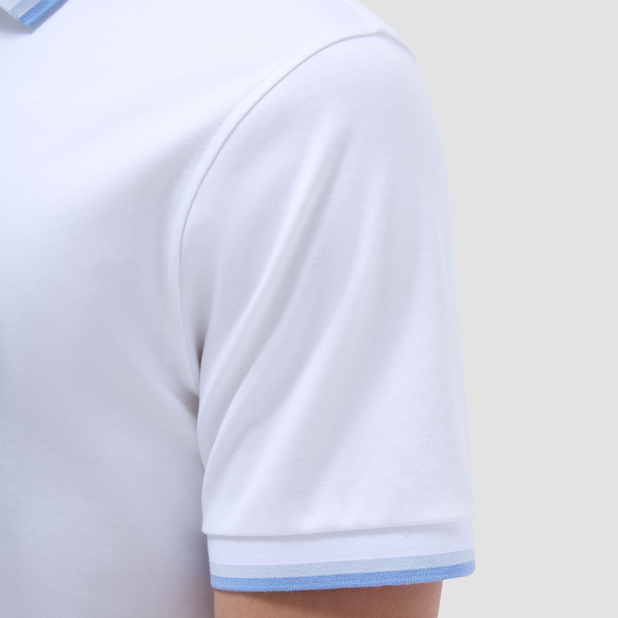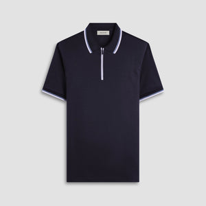 This solid short-sleeve polo shirt, made from 100% Pima cotton, offers an ultra soft, breathable feel. It features a sleek quarter-zip closure, and solid rib collar and cuffs with double stripe detail. With side vents for comfort and mobility, this polo ensures a relaxed fit whether you are at the golf club or enjoying a casual day out. Its elegant design combines style and functionality, making it a versatile addition to your wardrobe for any occasion.
