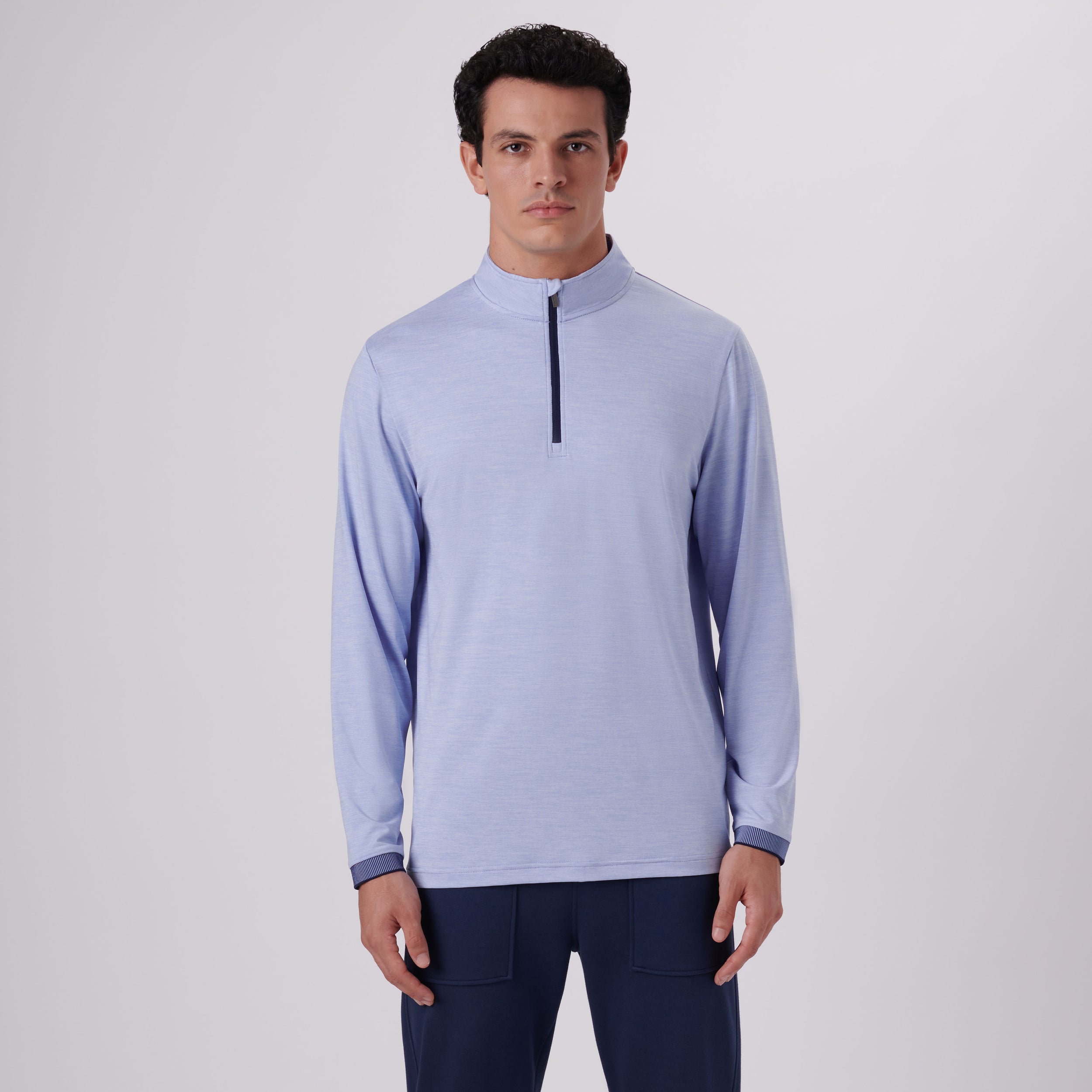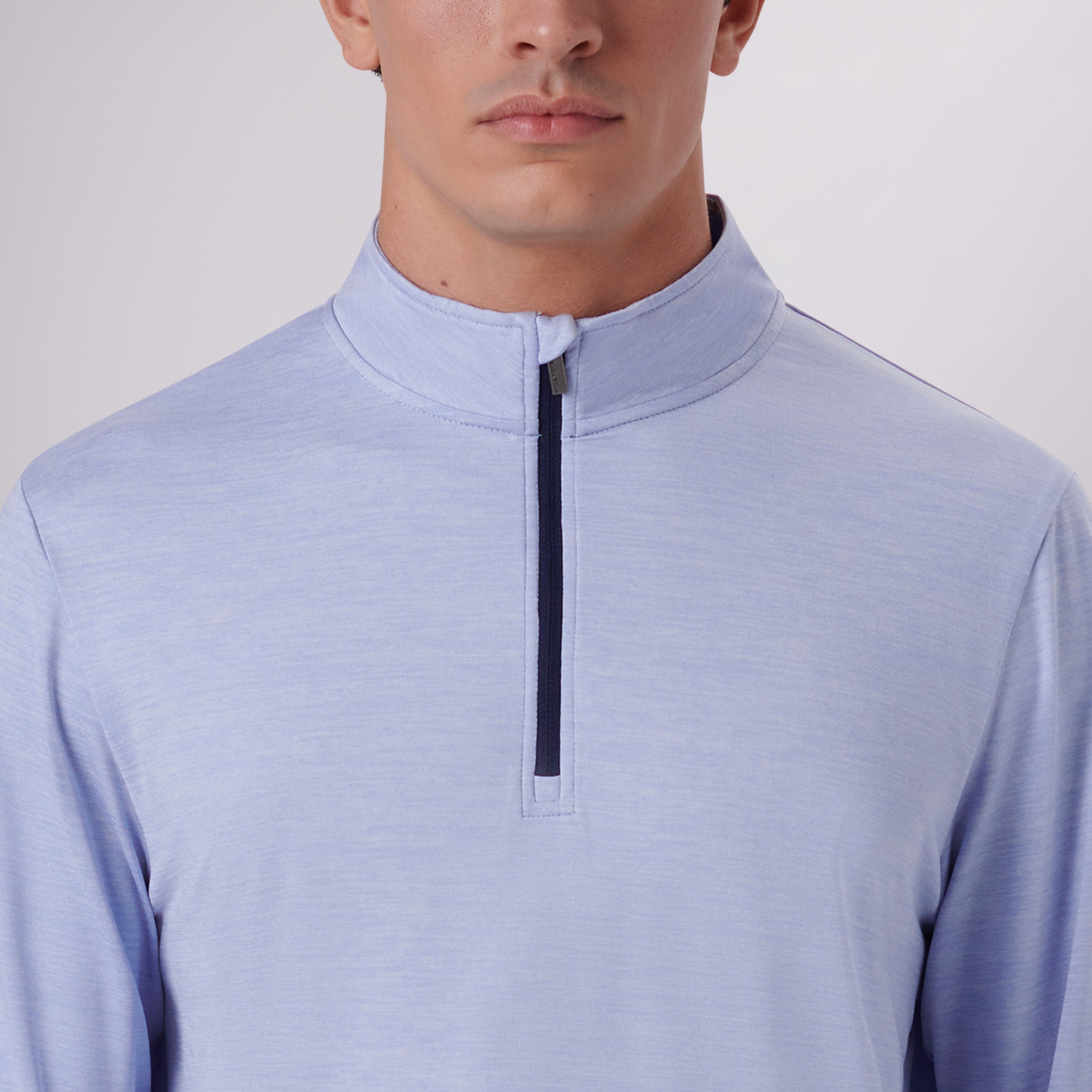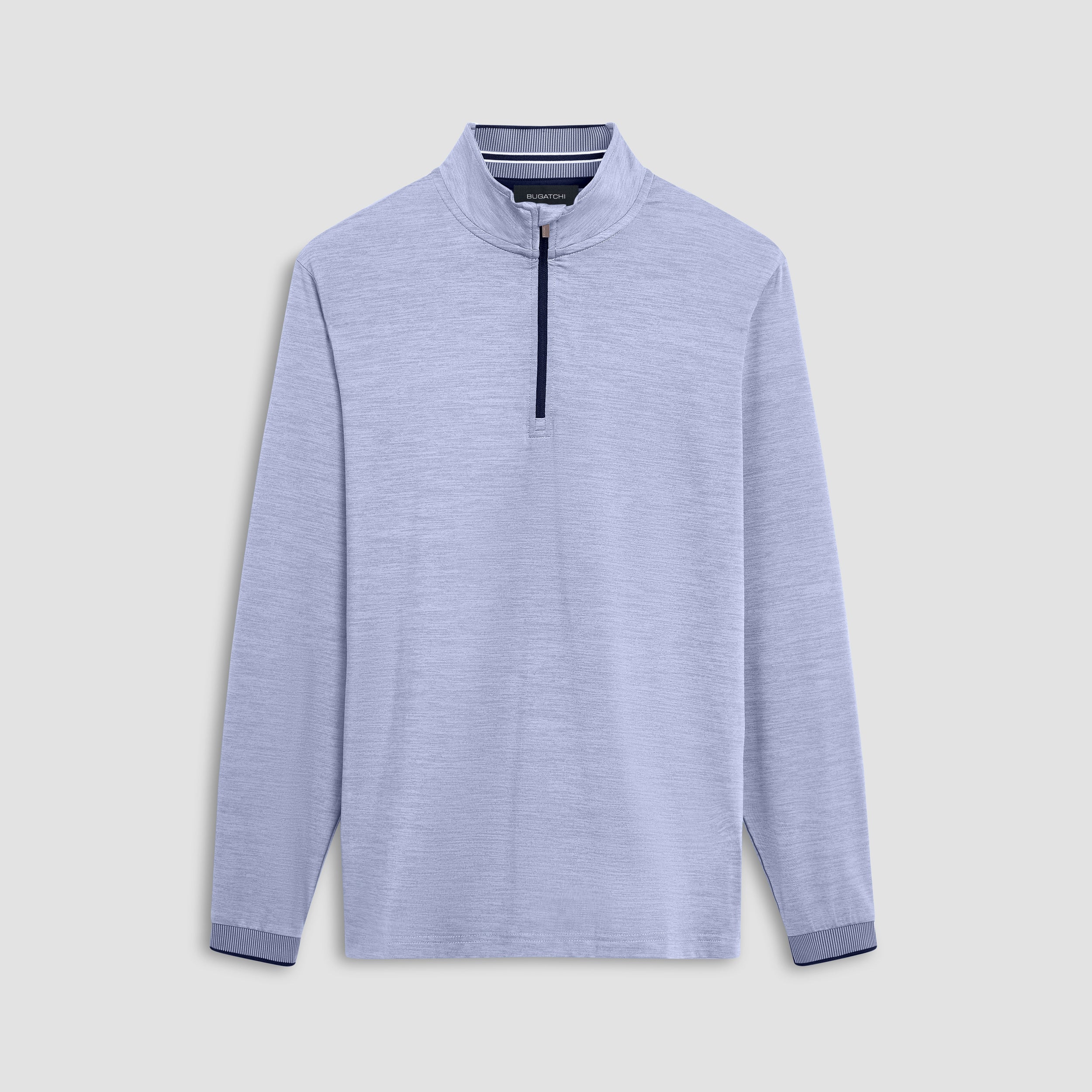 This long-sleeved pullover is crafted from high-performance fabric, offering comfort and style. It features a mock neck, quarter-zip closure, and eye-catching contrast trim detail. A versatile addition to your wardrobe.