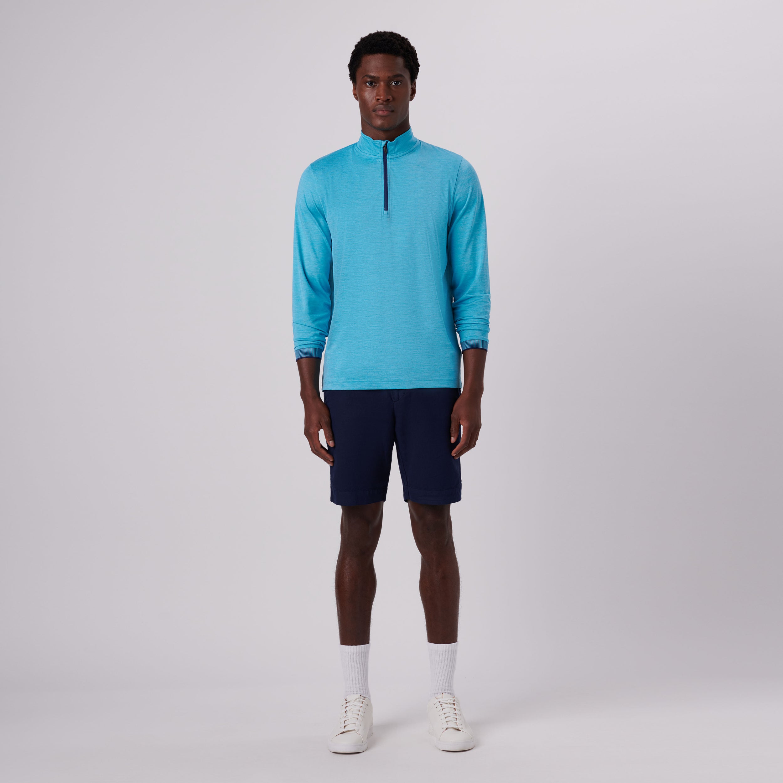 This long-sleeved pullover is crafted from high-performance fabric, offering comfort and style. It features a mock neck, quarter-zip closure, and eye-catching contrast trim detail. A versatile addition to your wardrobe.