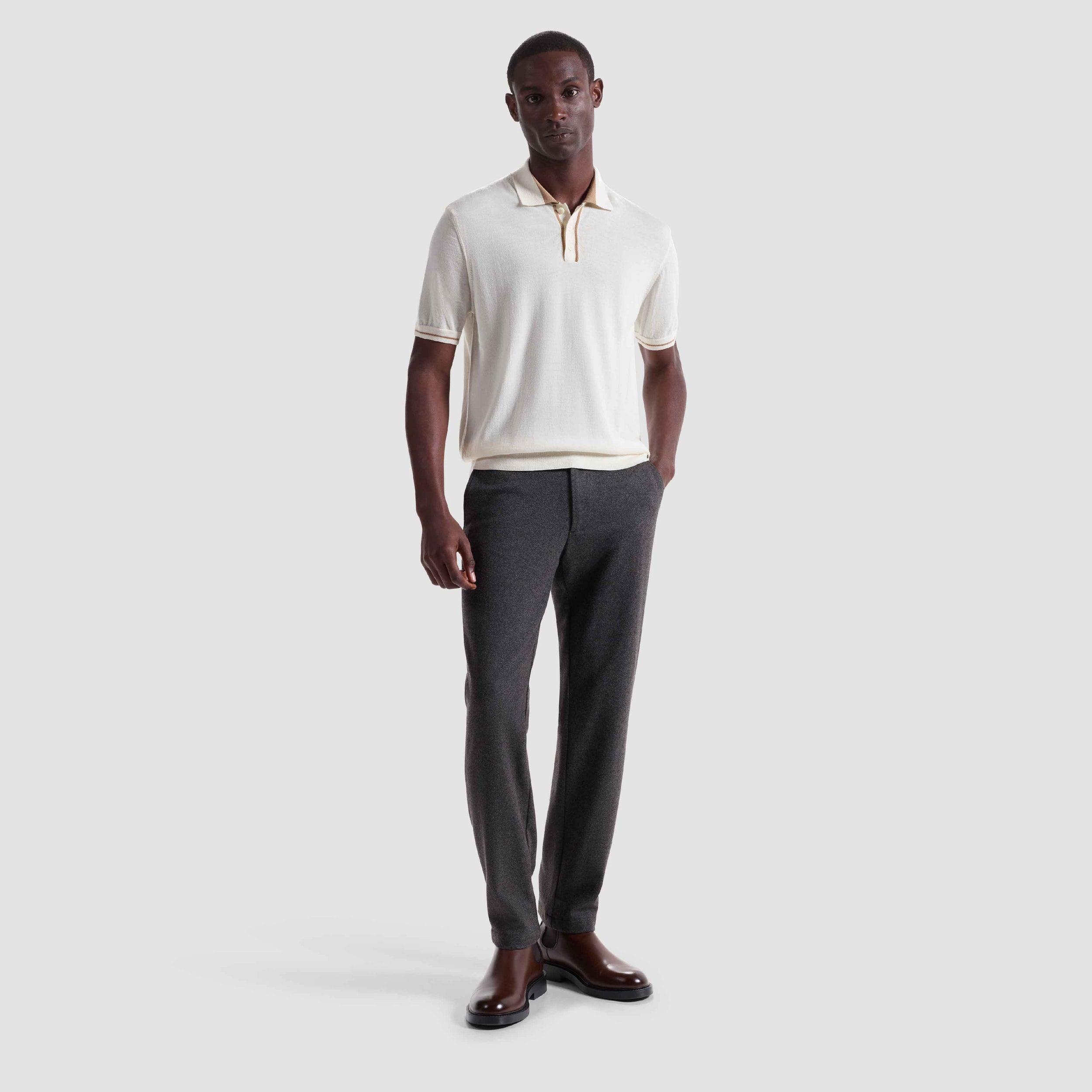 Crafted in Italy from a luxurious blend of extrafine merino wool and silk, this short-sleeve polo features contrast tipping on the placket and cuffs, a contrast interior collar band, and a ribbed hem. Finished with a refined three-button closure and mother-of-pearl buttons, it blends effortless elegance with thoughtful detail.