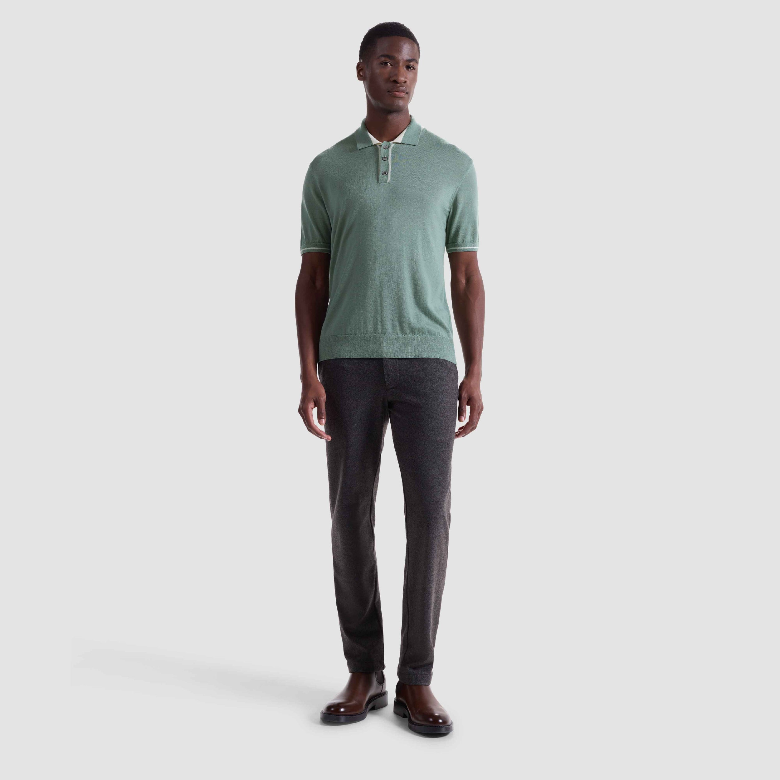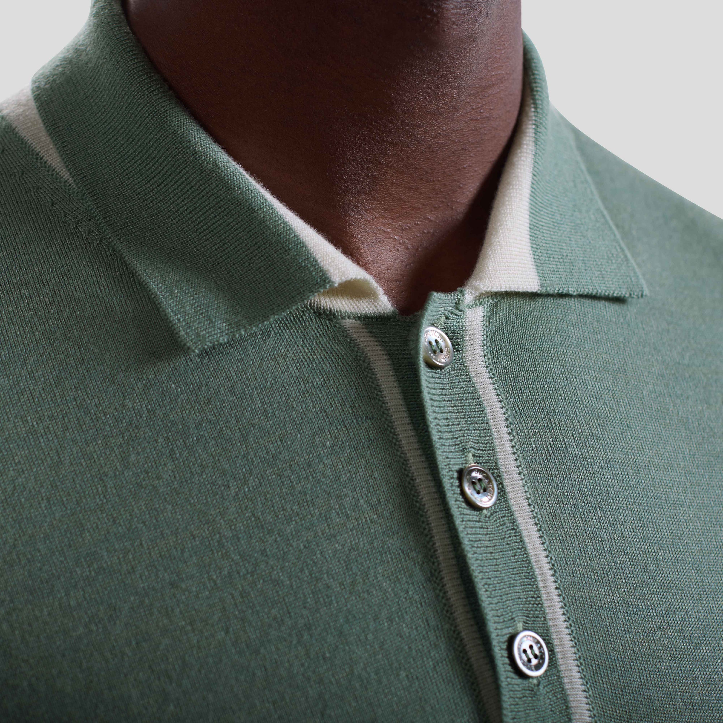 Crafted in Italy from a luxurious blend of extrafine merino wool and silk, this short-sleeve polo features contrast tipping on the placket and cuffs, a contrast interior collar band, and a ribbed hem. Finished with a refined three-button closure and mother-of-pearl buttons, it blends effortless elegance with thoughtful detail.