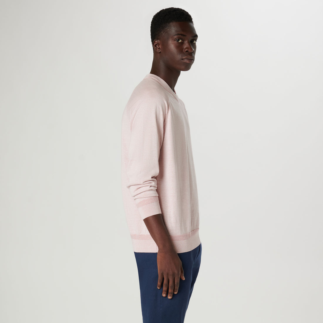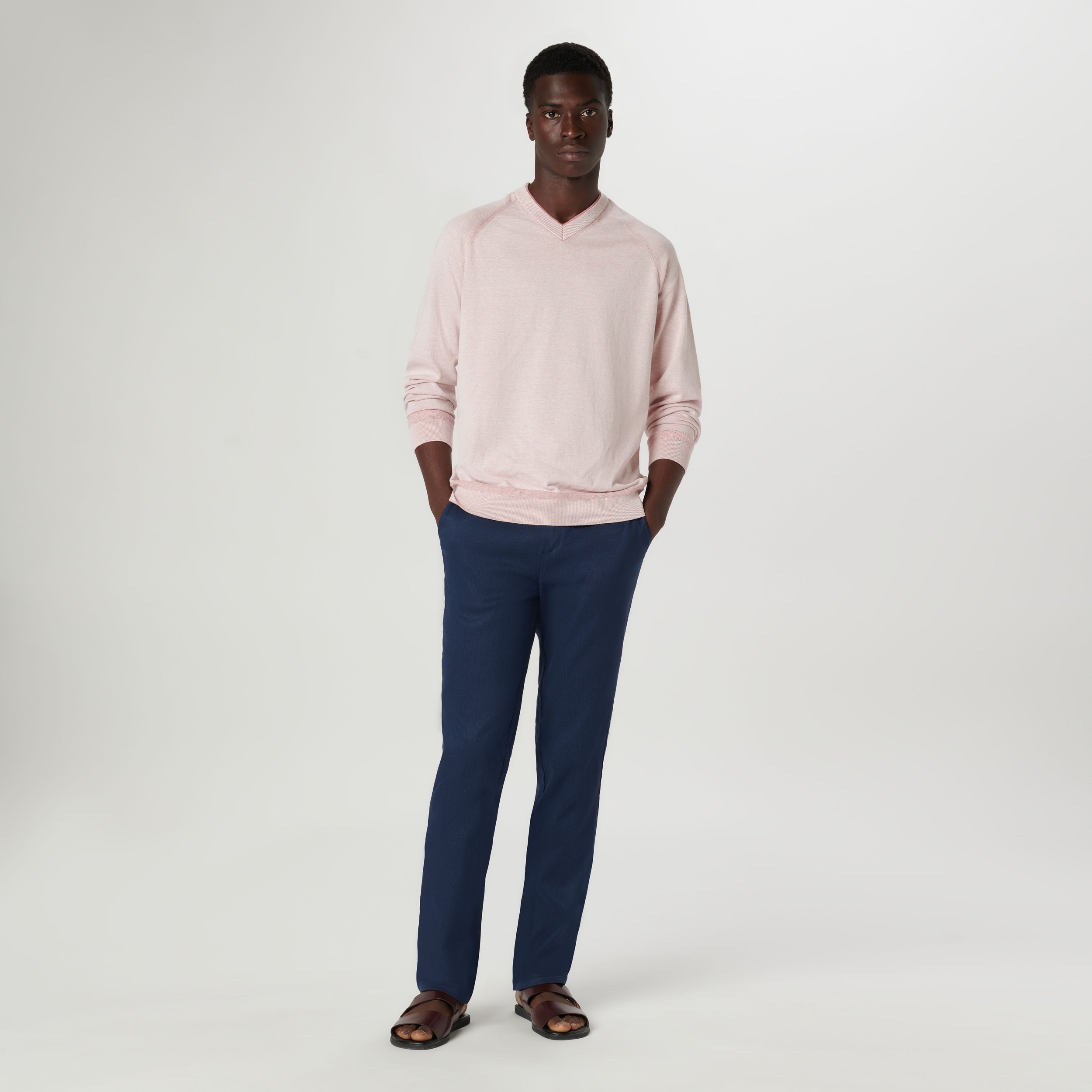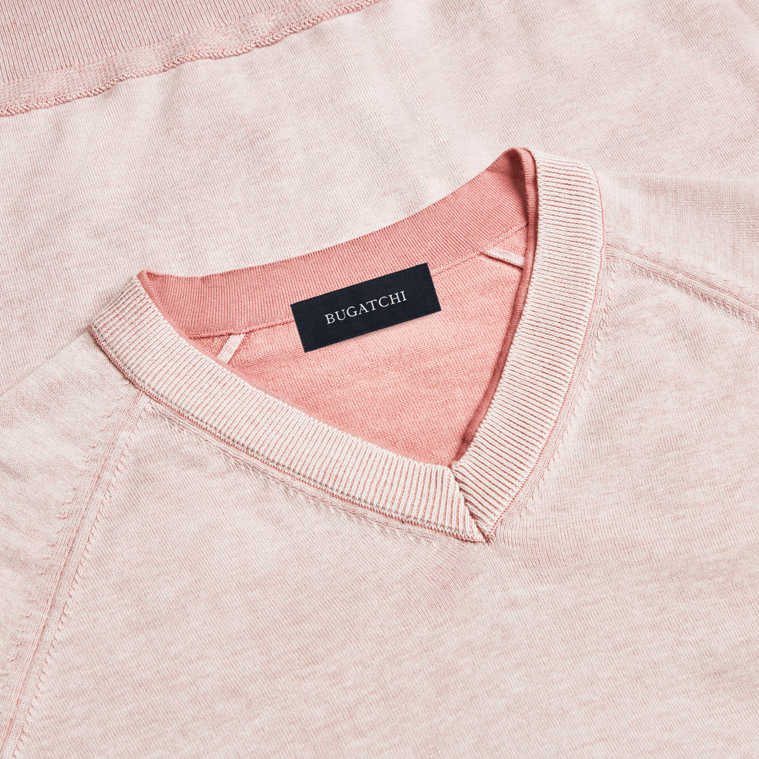 Crafted from a blend of cotton and silk yarns, this solid sweater features a rib V-neck, cuffs, and waistband. Lightweight, soft, and luxurious, this sweater is machine washable, low-pilling, and promises to retain its pristine appearance and refined quality over time.