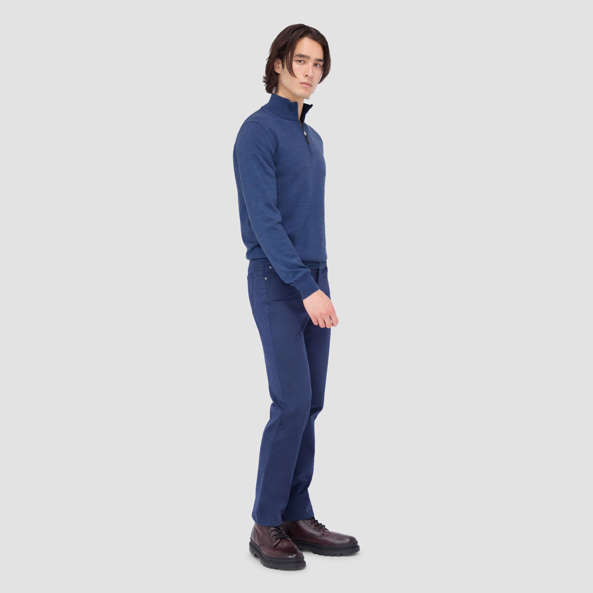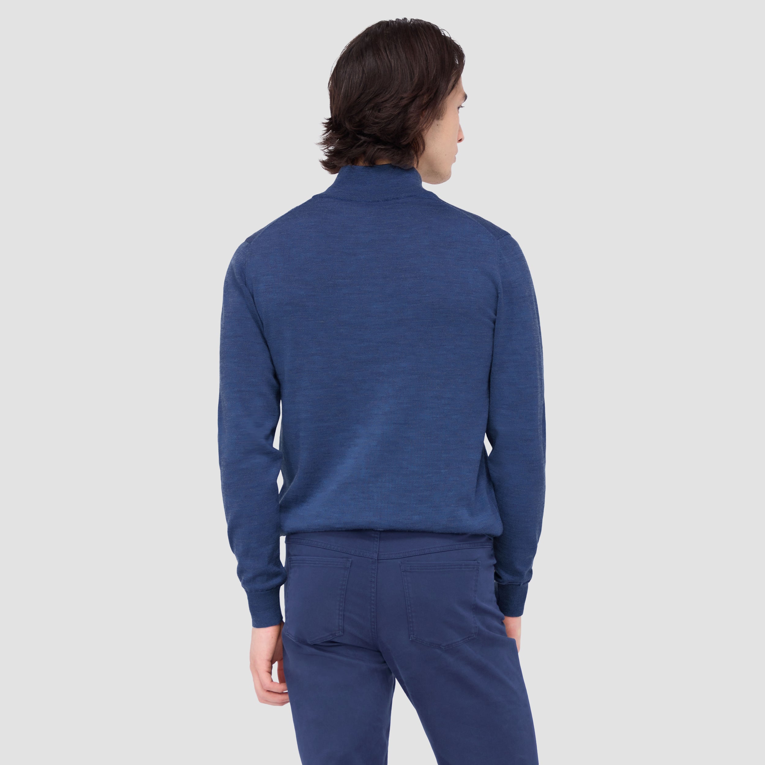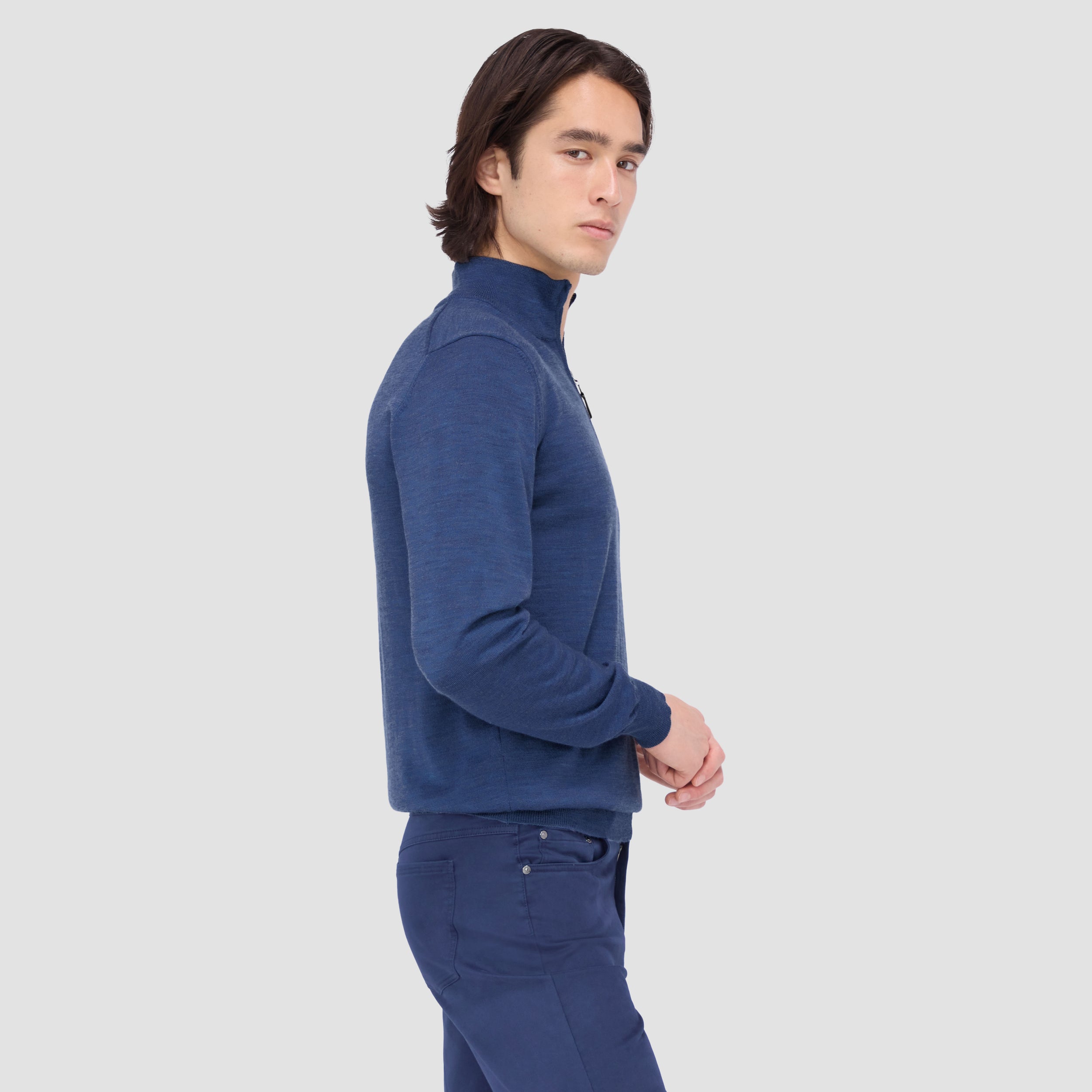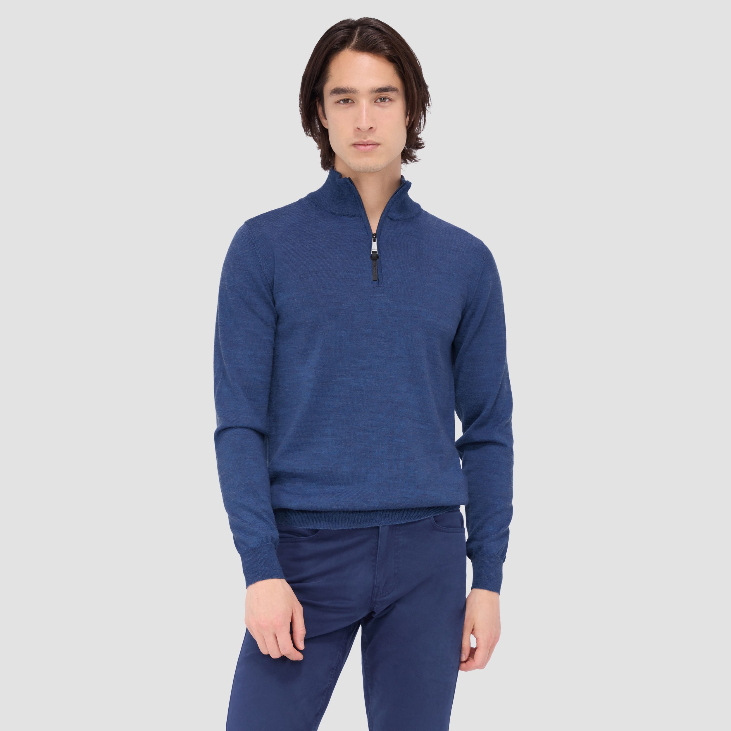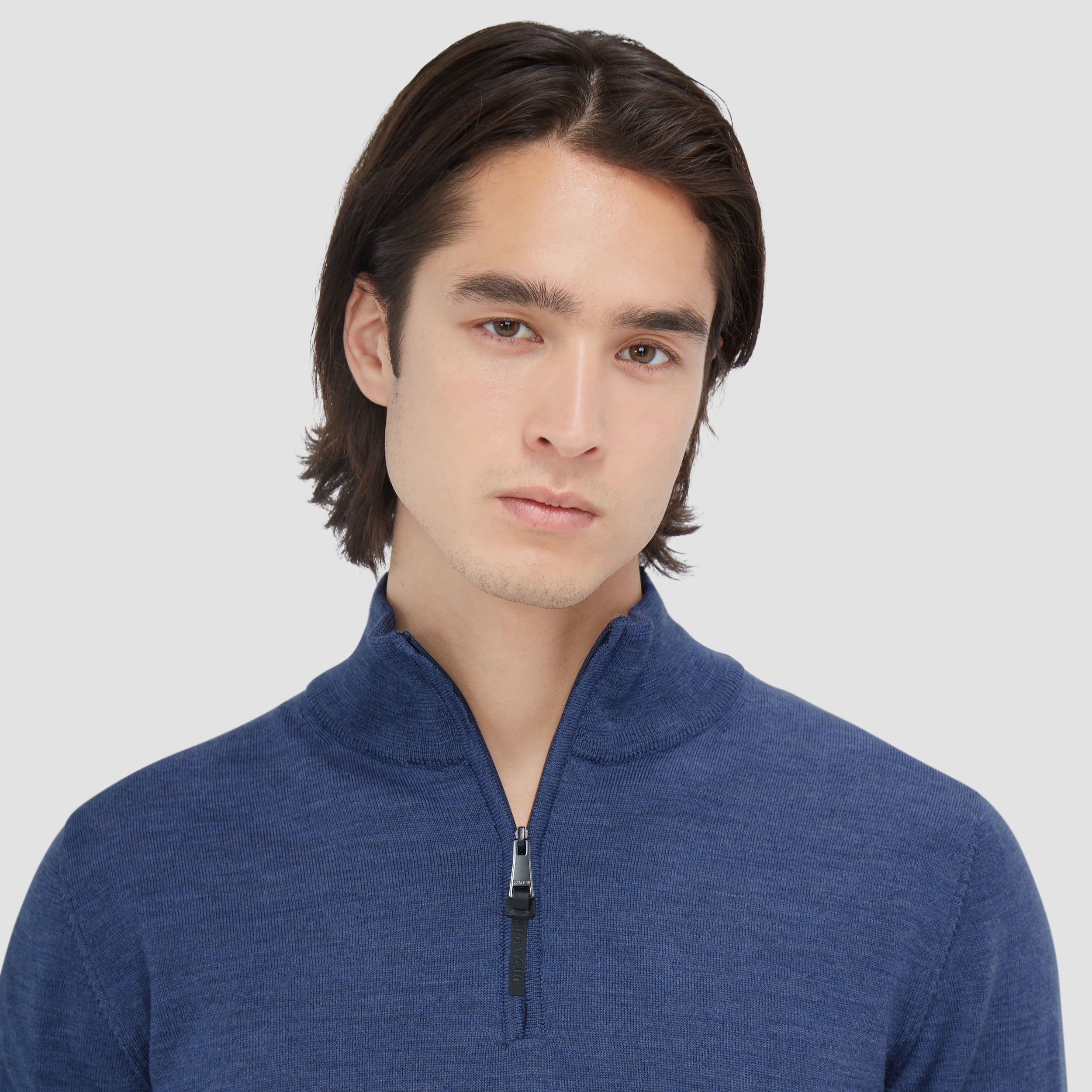This quarter-zip sweater in 100% Super Merino wool with Harmony 4.0 special finishing is made in Italy and features a ribbed mock neck collar, sleeve cuffs and waistband. Super Merino wool is a high grade, extra fine, exceptionally soft wool that is breathable, moisture-wicking, water repellent, machine-washable, and crease-proof for long lasting performance wash after wash.