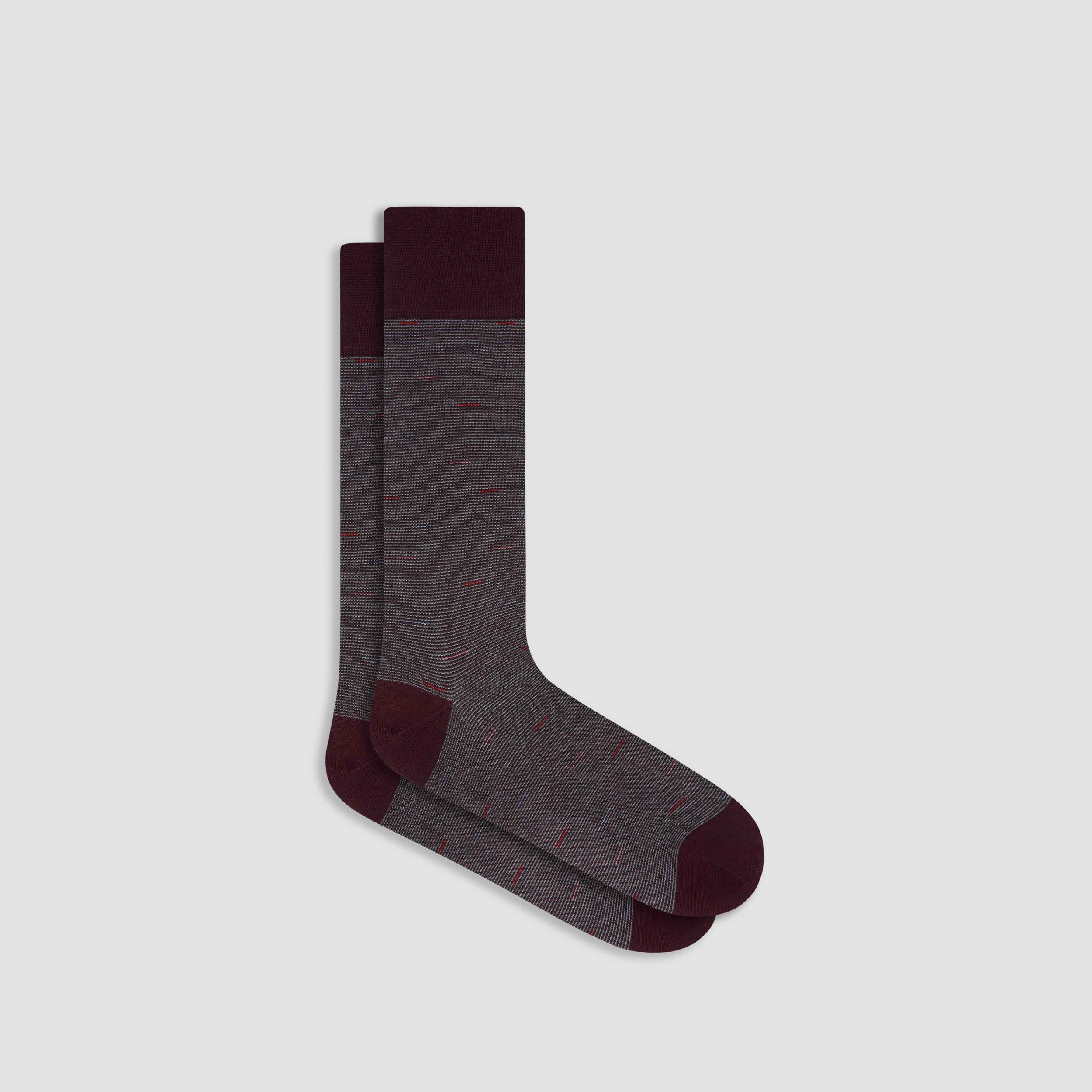Discover premium comfort with these striped melange mid-calf socks, made in Italy from luxurious mercerized cotton with a ribbed cuff for a snug fit, a hand-linked toe for smoothness, and reinforced heel seams for added durability. Soft, breathable, and designed with care, they bring a touch of Italian flair to casual and formal wear.