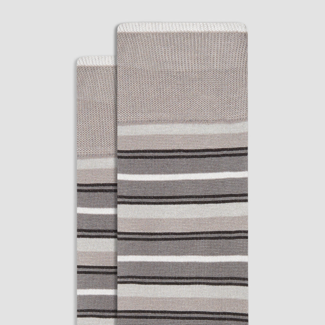 Striped mid-calf socks in fine gauge mercerized cotton blend with rib knit cuff band, hand linked toe and reinforced heel seams. Made in Italy.
