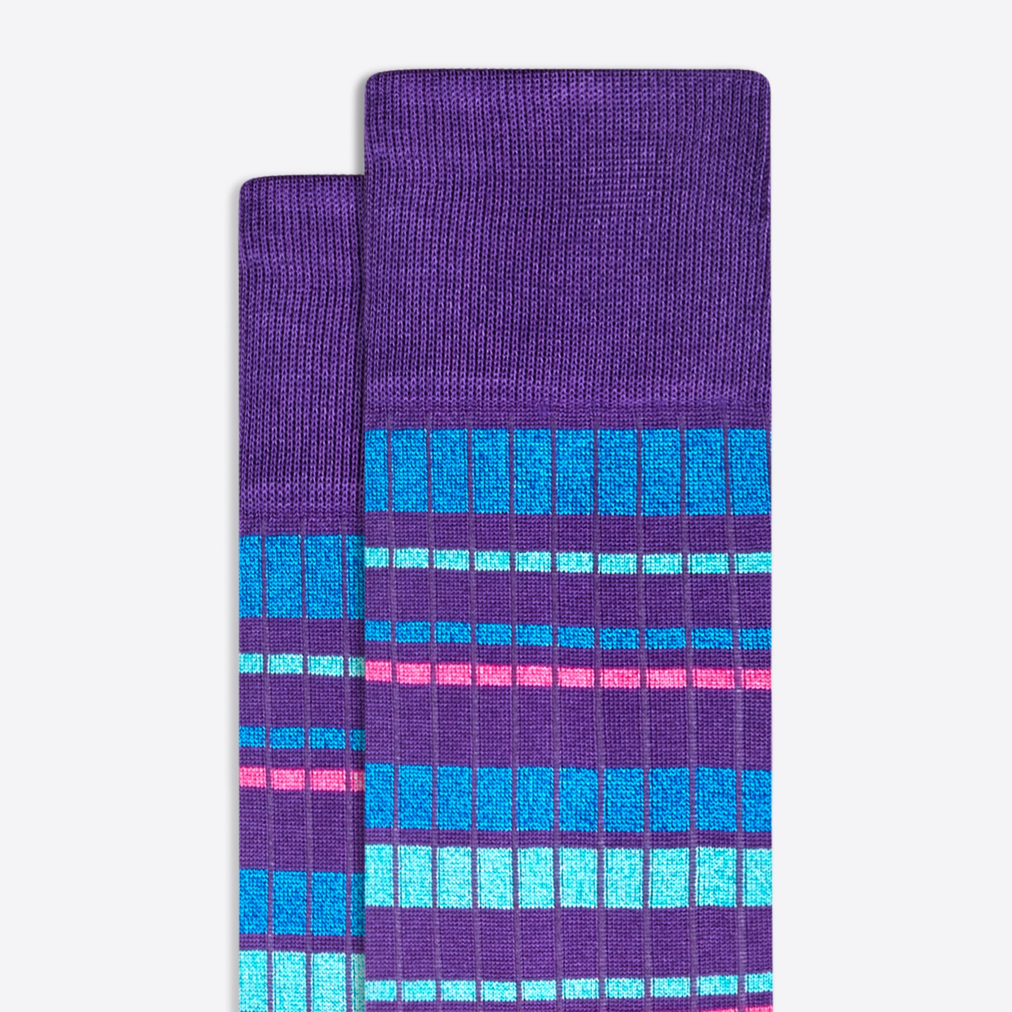 Striped mid-calf socks in fine gauge mercerized cotton blend with rib knit cuff band, hand linked toe and reinforced heel seams. Made in Italy.