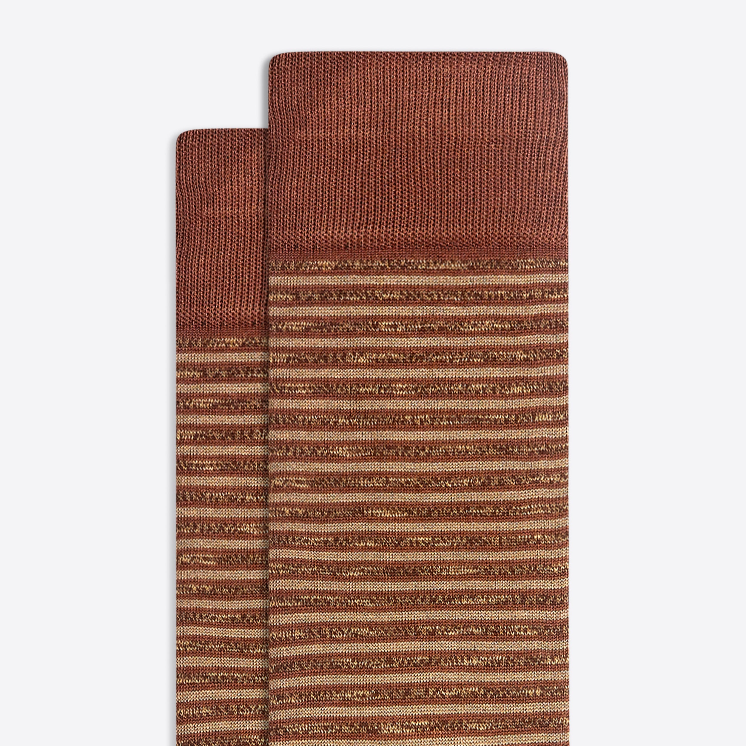 Striped mid-calf socks in fine gauge mercerized cotton blend with rib knit cuff band, hand linked toe and reinforced heel seams. Made in Italy.