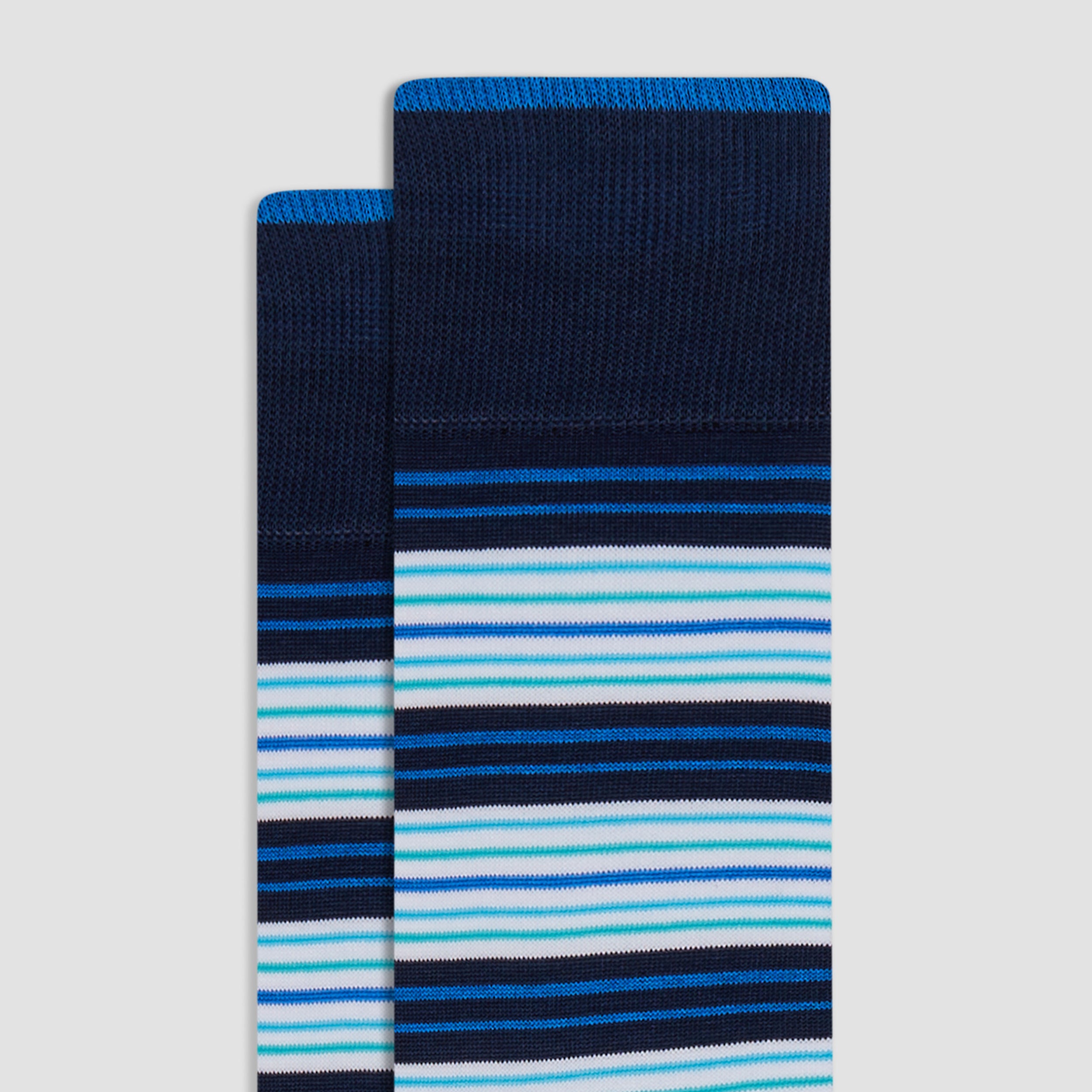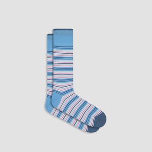 Striped mid-calf socks in fine gauge mercerized cotton blend with rib knit cuff band, hand linked toe and reinforced heel seams. Made in Italy.