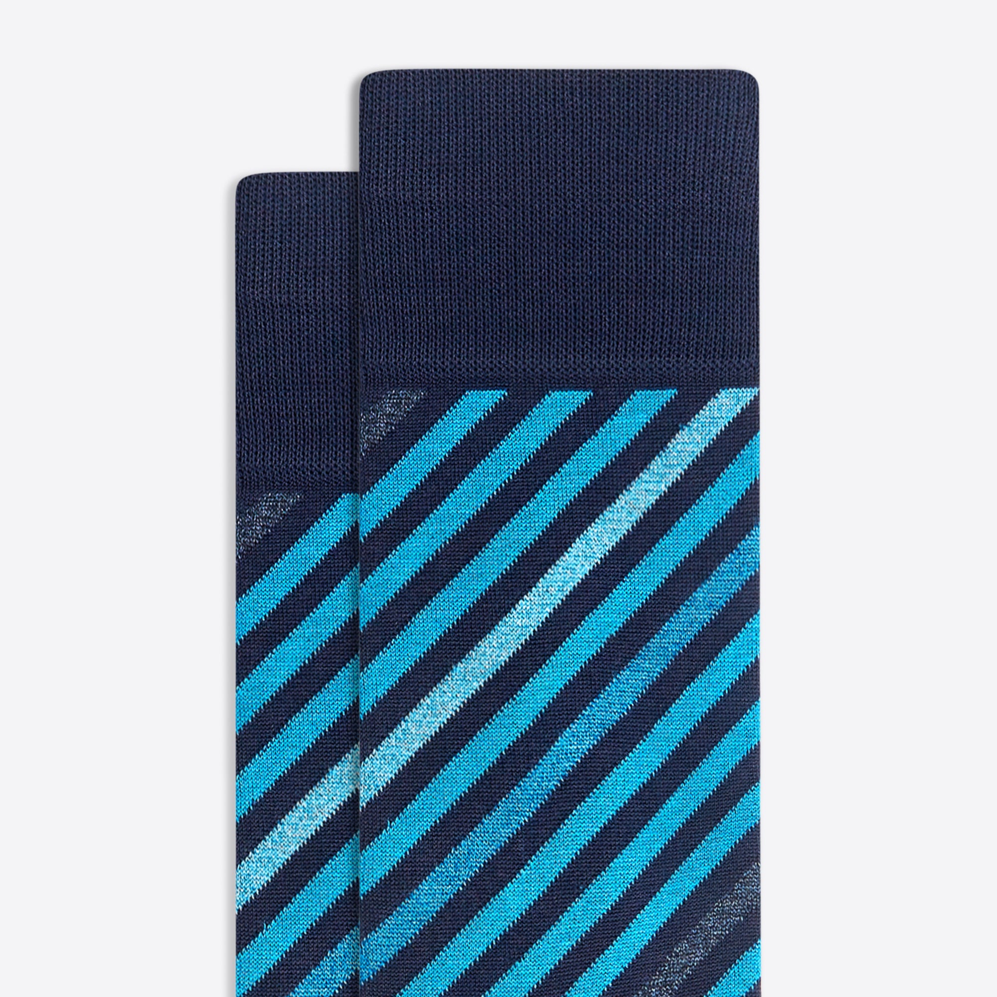 Striped mid-calf socks in fine gauge mercerized cotton blend with rib knit cuff band, hand linked toe and reinforced heel seams. Made in Italy.