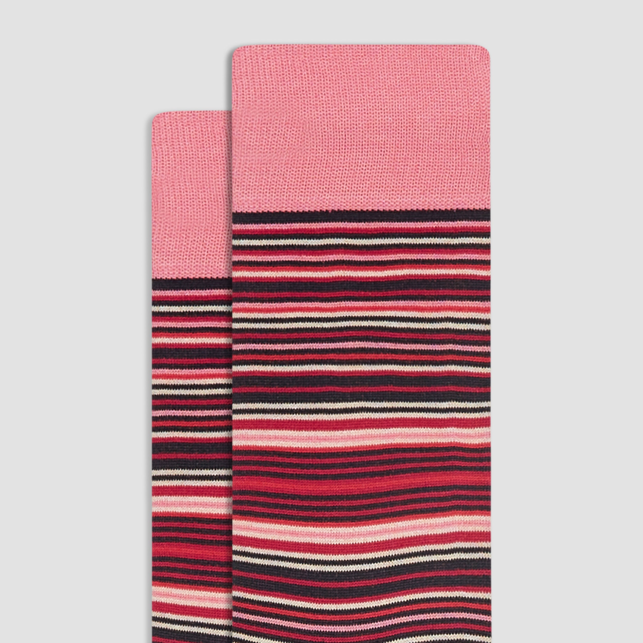Striped mid-calf socks in fine gauge mercerized cotton blend with rib knit cuff band, hand linked toe and reinforced heel seams. Made in Italy.