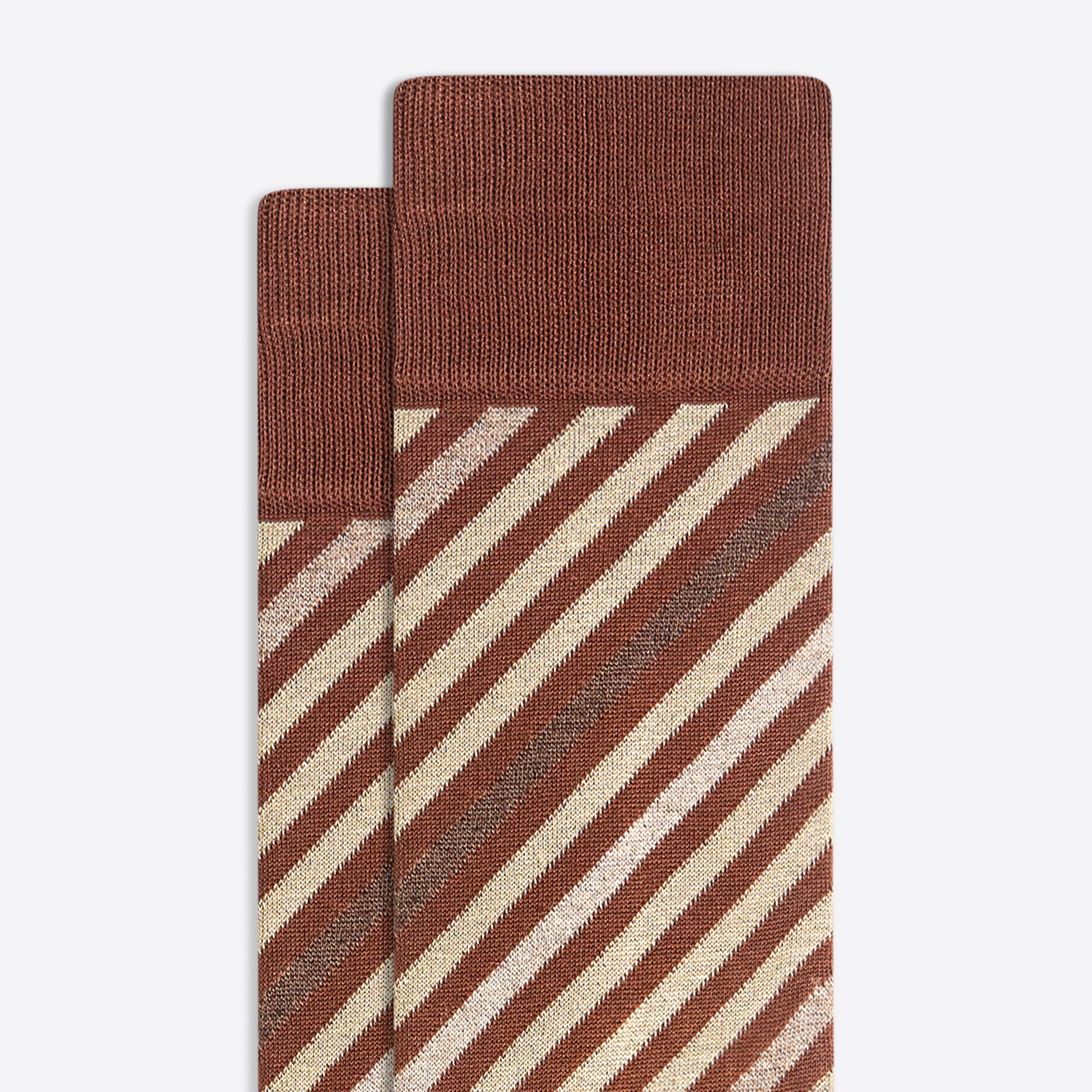 Striped mid-calf socks in fine gauge mercerized cotton blend with rib knit cuff band, hand linked toe and reinforced heel seams. Made in Italy.