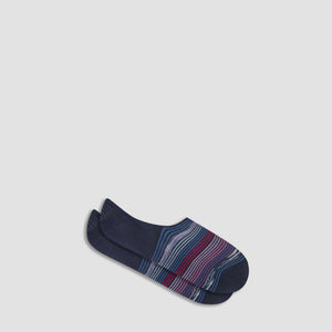 Step up your comfort with these striped no-show socks, made in Italy from luxurious mercerized cotton. Designed for a sleek, invisible fit, they feature a hand-linked toe for a seamless finish, a midfoot ribbed arch band to keep the sock in place, and reinforced heel seams for durability. Perfect for keeping your feet cool and comfortable while staying discreet inside your shoes.