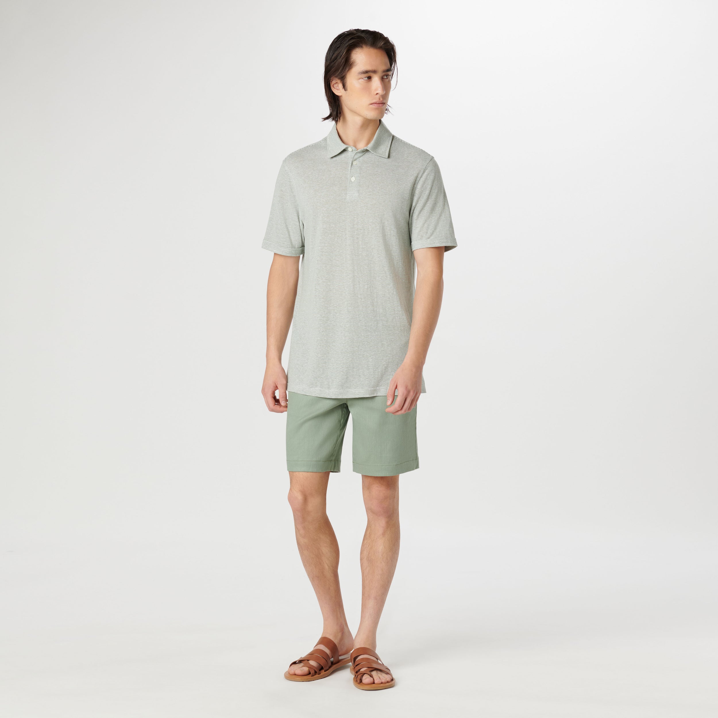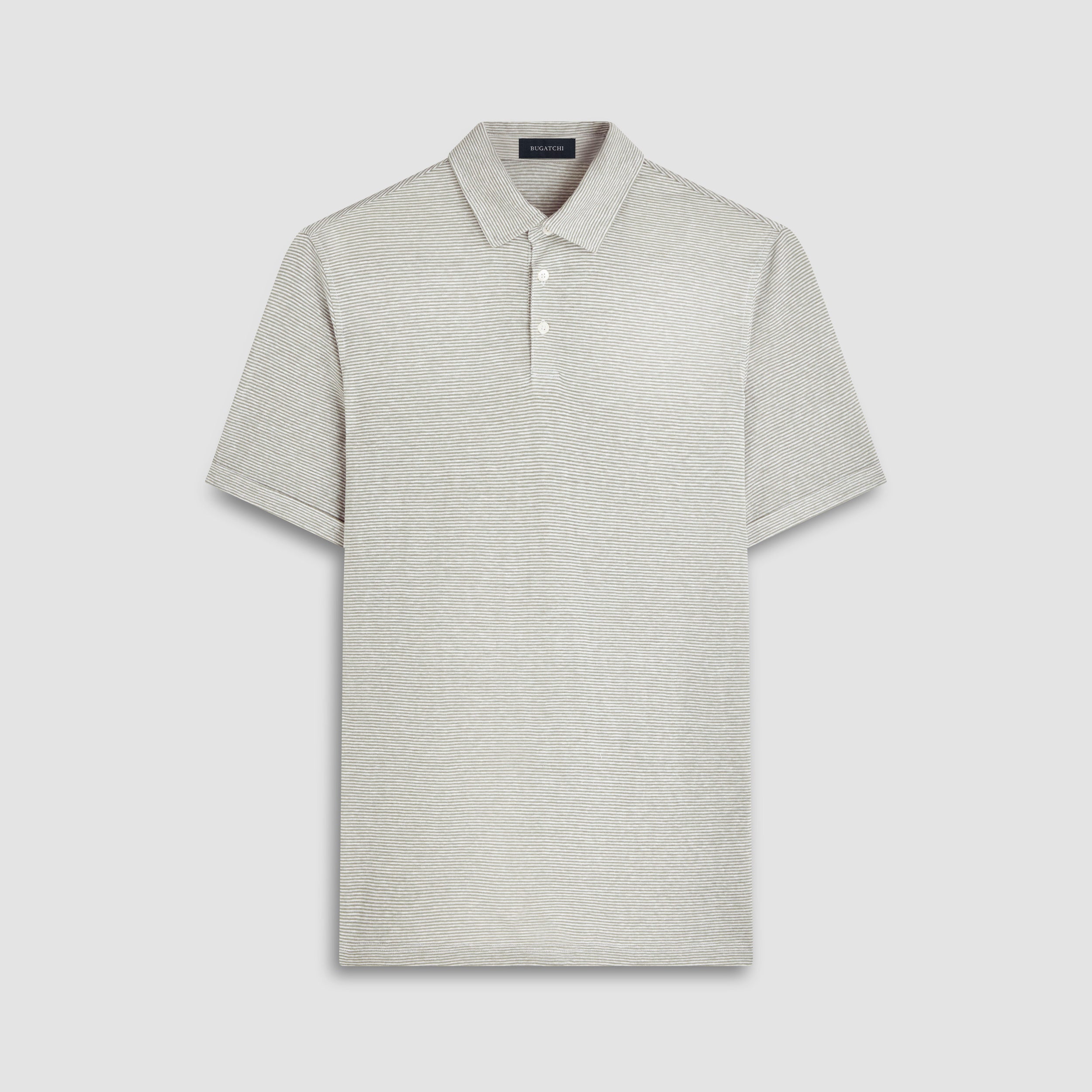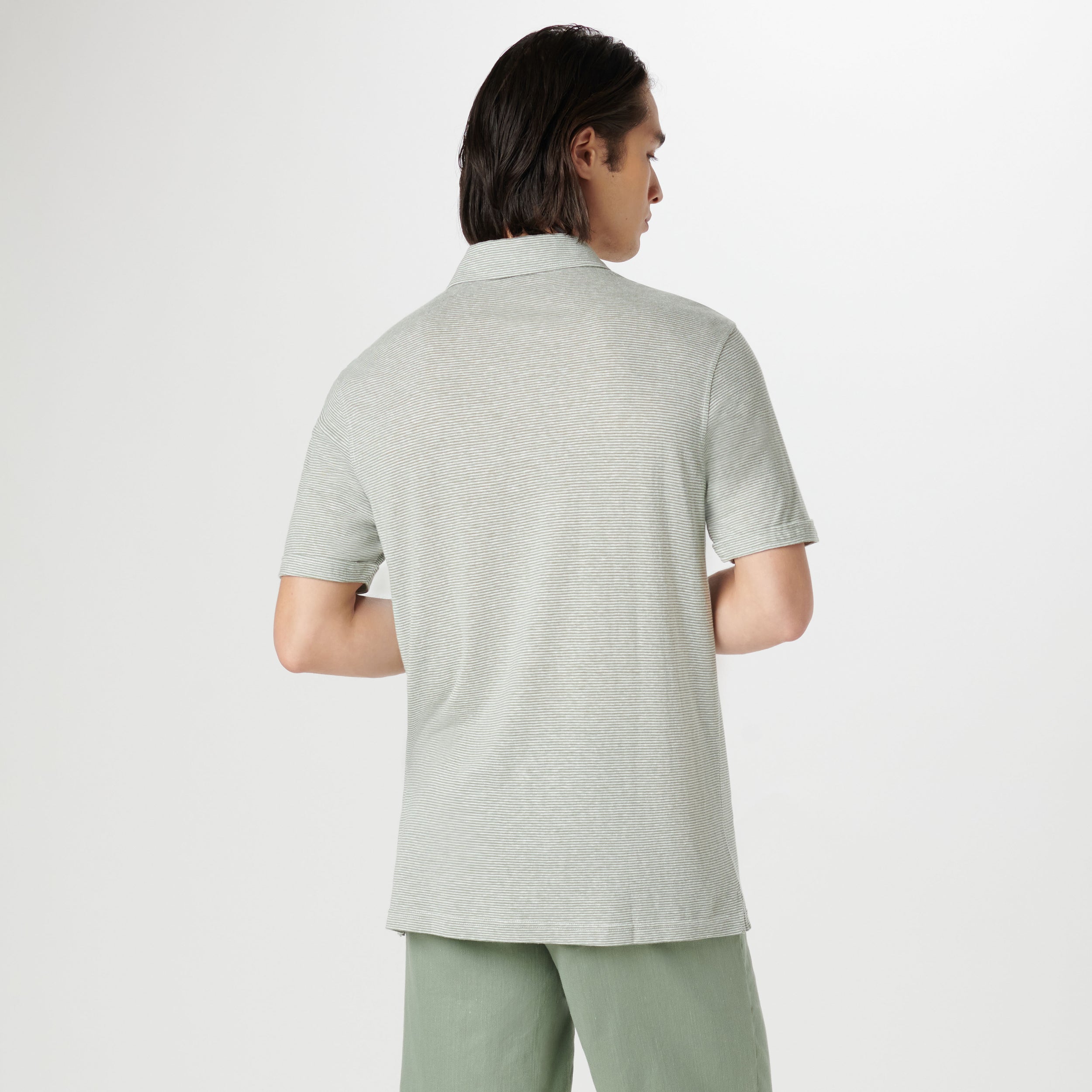 This short-sleeved striped polo shirt crafted from a blend of hemp and Tencel, features a three button placket, a self fabric collar, and has moisture-wicking, breathability, and easy care properties. Hemp and Tencel are plant-based fabrics renowned for their sustainability and comfort.