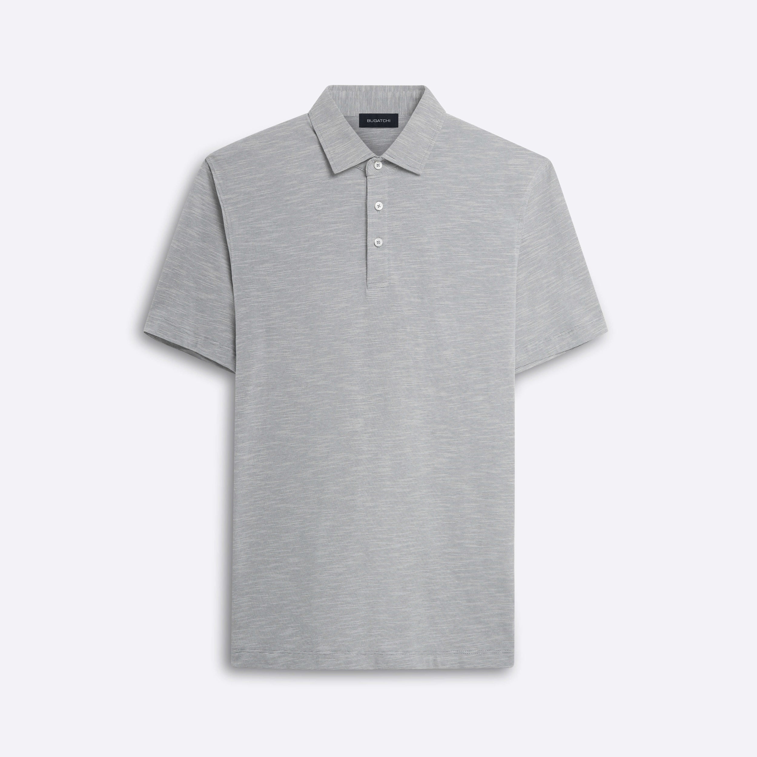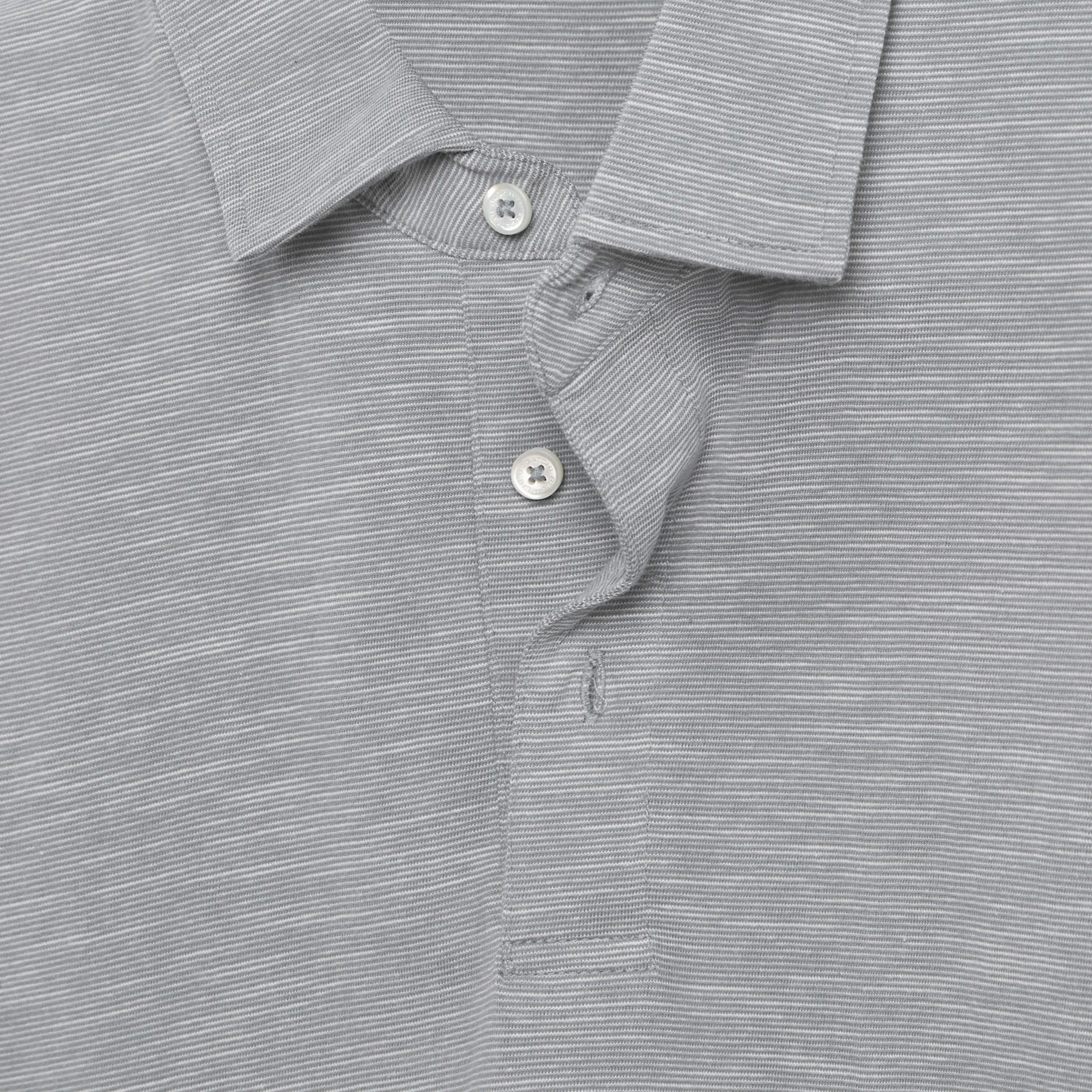 Short-sleeved polo in thin stripe COMFORT 100% cotton features three button placket and self collar.