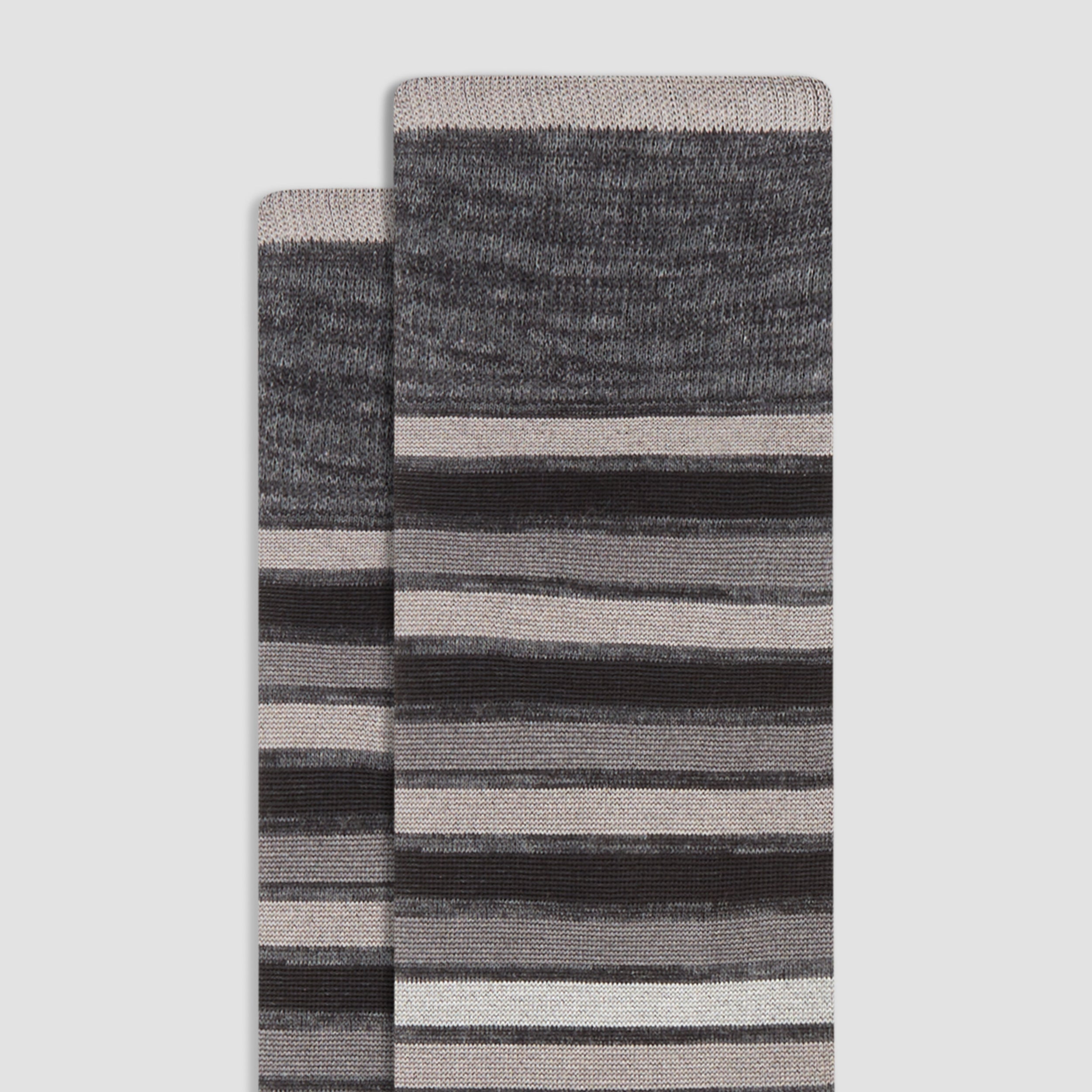Stripes and dots mid-calf socks in fine gauge mercerized cotton blend with rib knit cuff band, hand linked toe and reinforced heel seams. Made in Italy.